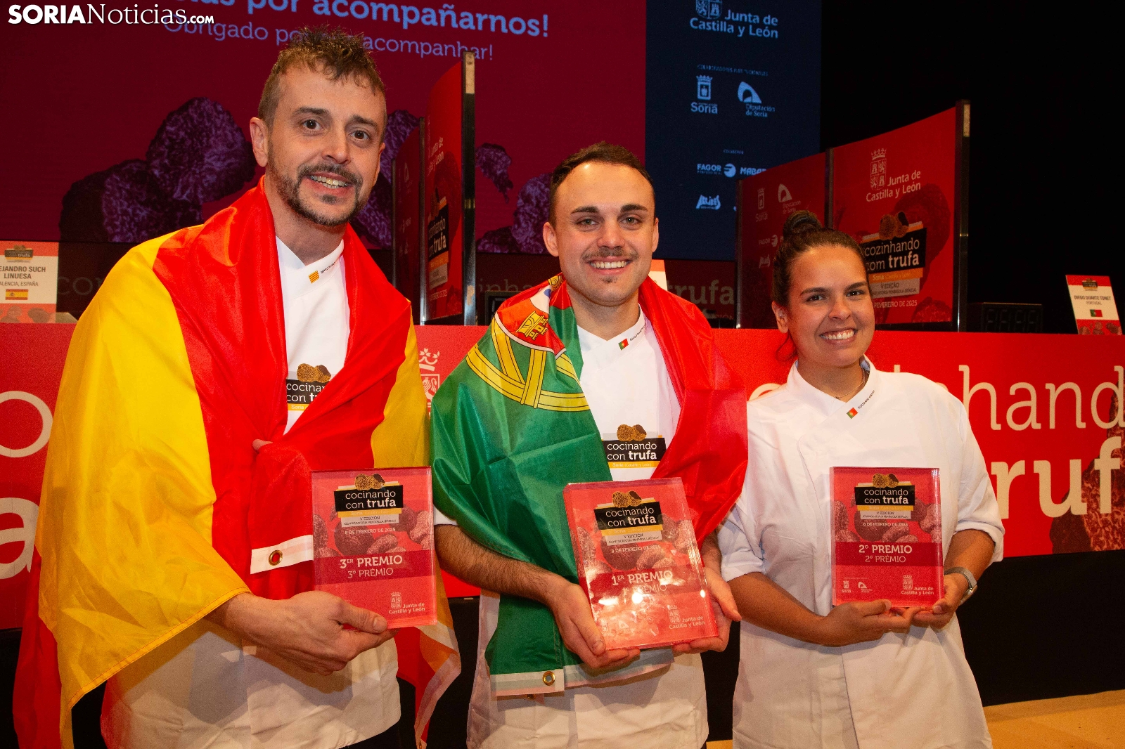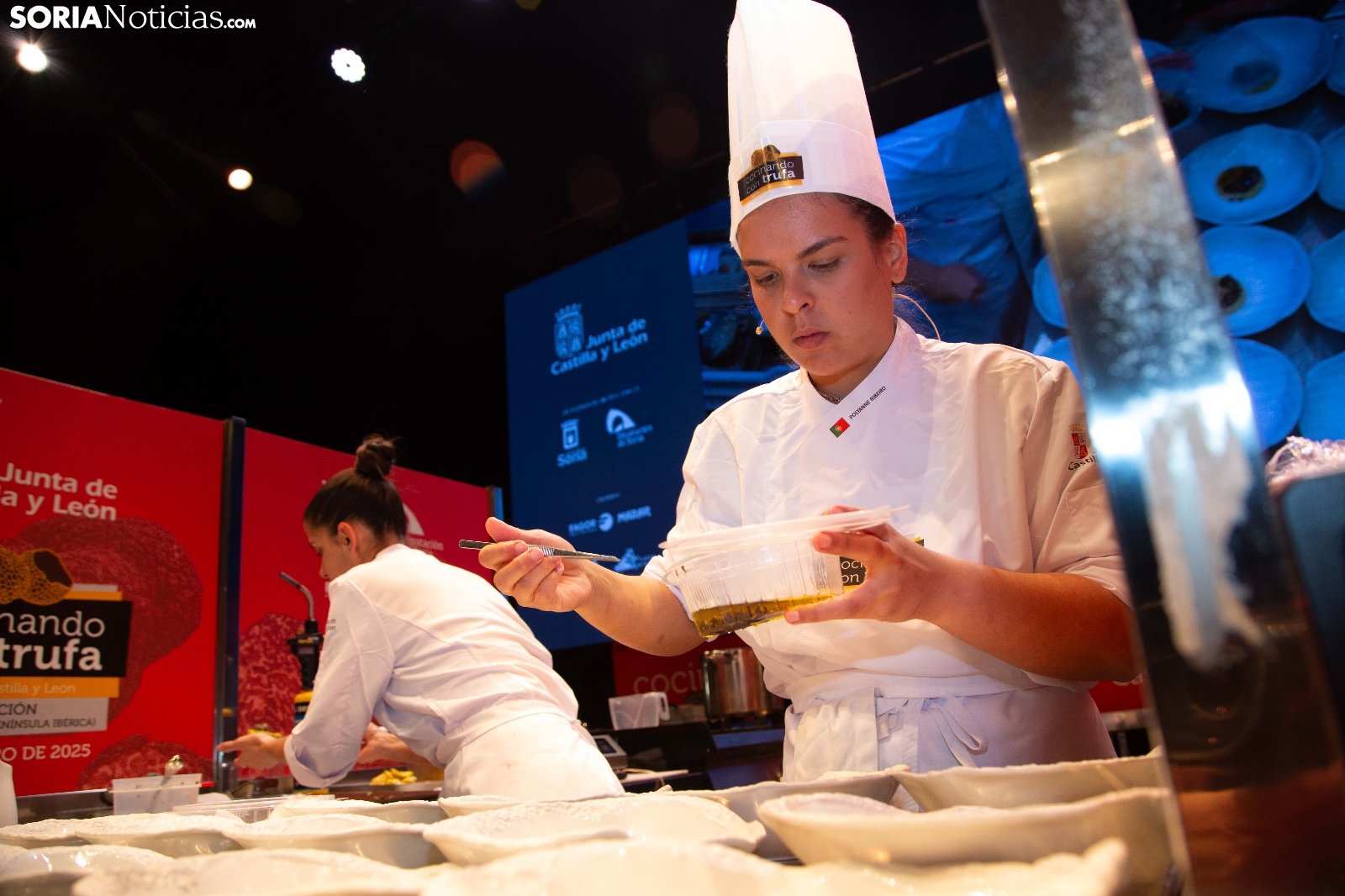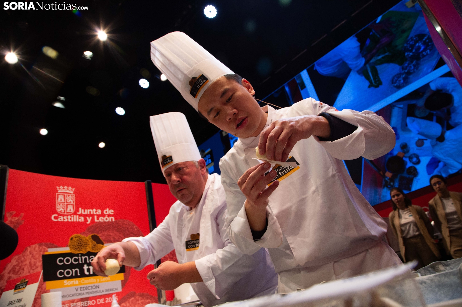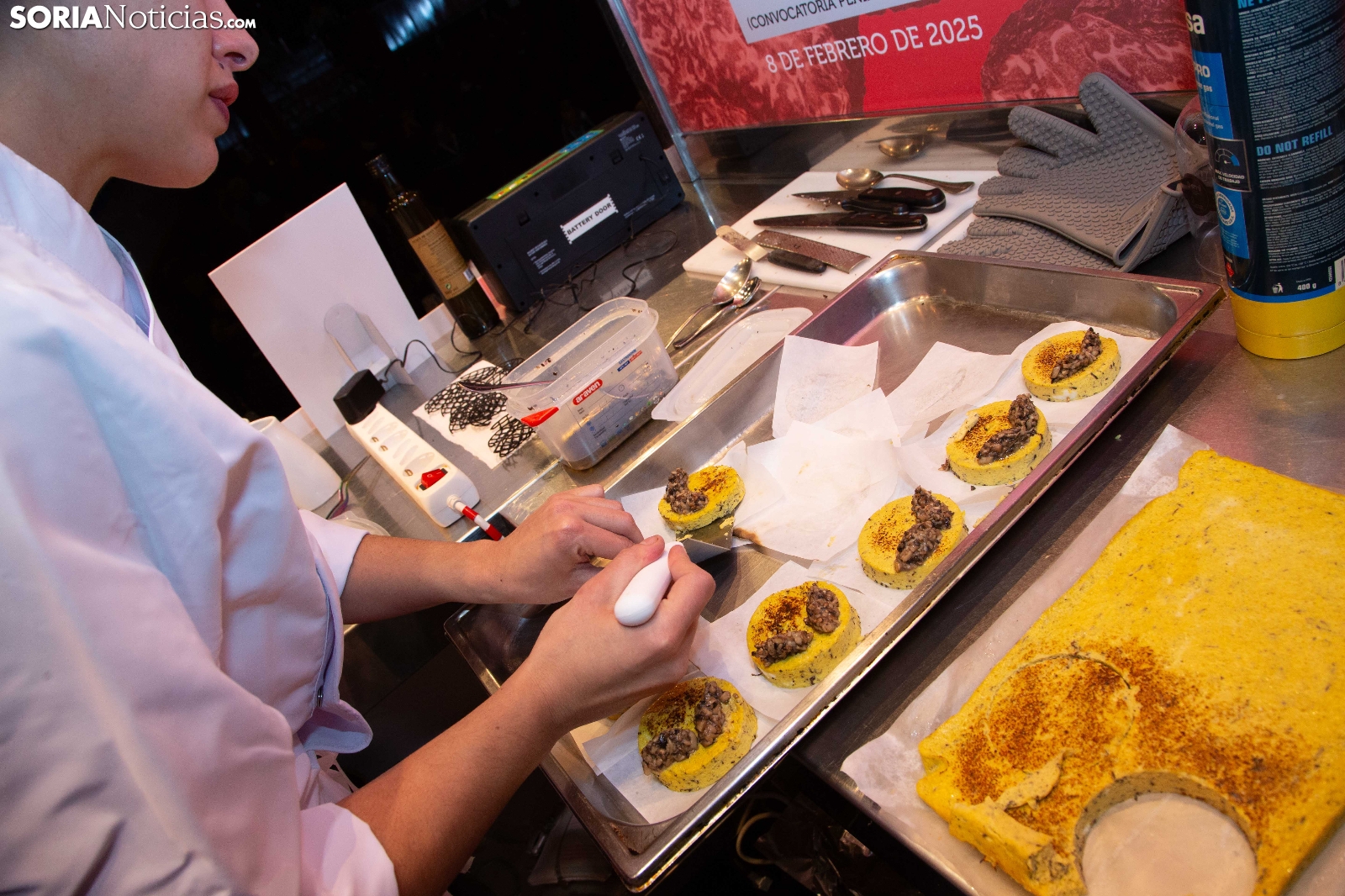 El Palacio de la Audiencia ha acogido durante la mañana y entrado el mediodía de este sábado la quinta edición del certamen culinario Cocinando con Trufa. Una cita que ha acogido a los mejores chefs que, apadrinados por ocho establecimientos del sector de la restauración en la provincia, han mostrado su habilidad en los fogones para cocinar la exquisitez que ofrece este hongo que crece en los montes sorianos. Diego Duarte, apadrinado por el restaurante Baluarte, de la capital soriana, ha sido el triunfador de esta cita, tras el veredicto del jurado. Reconocimientos también para Orianne Ribeiro (2º) y para Marcos Montabut (3º). La crónica, aquí.