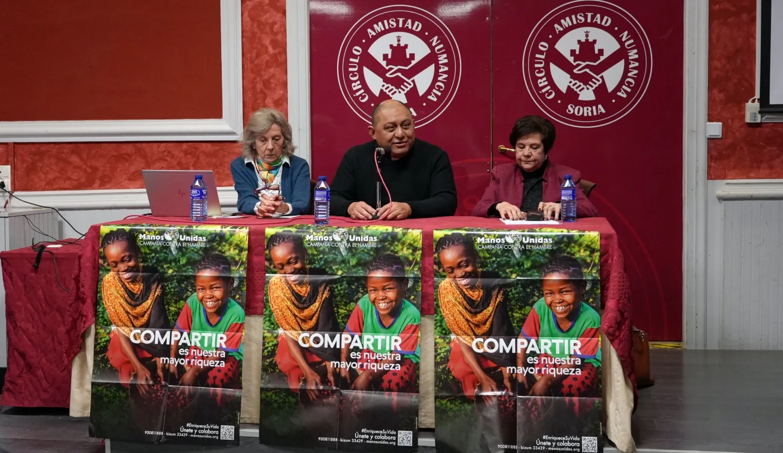 Este sábado, en el salón Gaya Nuño del Círculo Amistad Numancia, se presentaba la campaña de este año. Intervino el párroco de Almazán, Álvaro Chávez, que pudo compartir con los asistentes su experiencia misionera en Japón, Estados Unidos y Uganda. También tomó la palabra la delegada de Manos Unidas en Soria, Pilar Calonge, que habló sobre su viaje de formación a Bolivia. Como cuenta la delegada, al viajar a las tierras de misión es donde verdaderamente se comprueba que el dinero de aquí, allí se multiplica para hacer el bien.