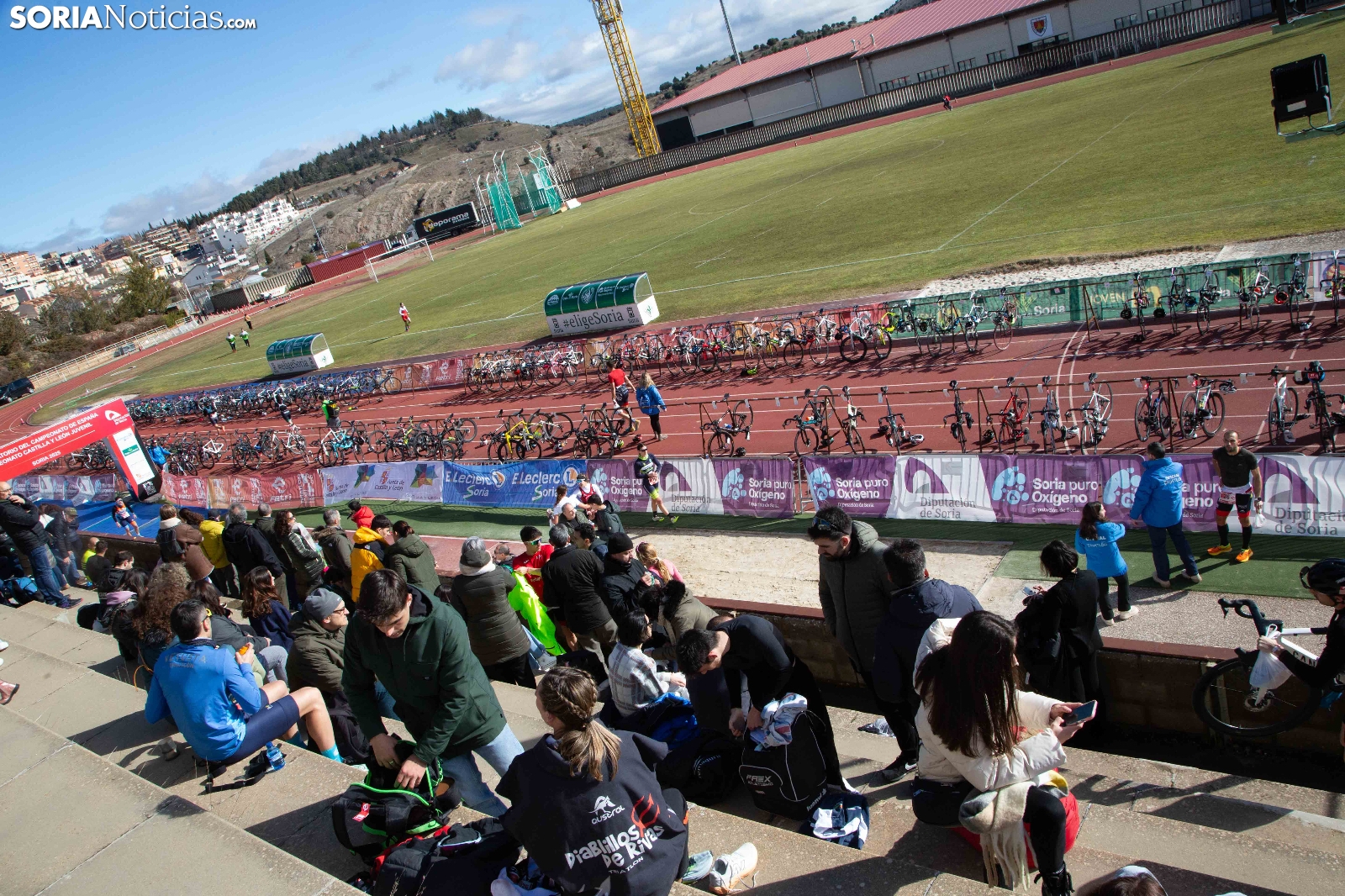 La capital acogía este domingo la XXII edición del Duatlón de Soria, con una prueba nacional para Campeonato de España. Los deportistas del apartado popular han tenido también la ocasión de probar en esta modalidad con la categoría de promoción. Junto a ello, la competición también albergaba el Regional de duatlón juvenil. La jornada, primera de ámbito nacional este año en Castilla y León, se ha desarrollado sin mayores incidencias tanto en el circuito a pie como en carretera en bicicleta. La crónica, en este enlace.