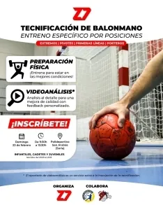 El próximo domingo 23 de febrero, de 9:30 a 13:30 horas, el Polideportivo San Andrés de Soria será el escenario de la primera edición de las Tecnificaciones Zona7, una jornada de entrenamiento especializada en la mejora individual de jugadores de balonmano.