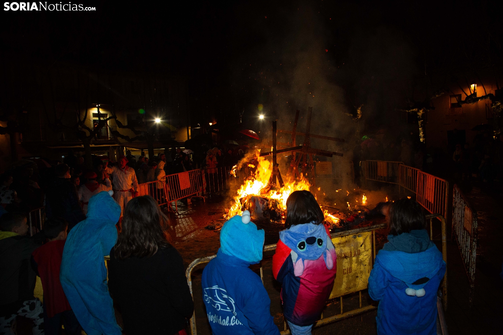 La Placituela de San Esteban de Gormaz ha sido un hervidero de gente este martes, último día de carnaval, que ha congregado al vecindario para el oficio de la 'Quema de la Sardina'. En realidad han sido dos los muñecos que han sido pasto de las llamas, la Sardina Peñista y la Pequesardina, confeccionadas por las peñas y por los escolares más jóvenes de la localidad. La Alameda y San Miguel han sido las agrupaciones encargadas de la elaboración de una chocolatada para los asistentes que han degustado de buen grado esta vianda caliente. Aunque la despedida ha sido oficiada hoy, el día 9 también será carnavalero en la población ribereña: el Domingo de Piñata acogerá un baile, a partir de las siete de la tarde, organizado por la asociación de pensionistas San Miguel en su sede, con la música de Salmonete Band y donde será descubierto el nombre del 'Personaje X'