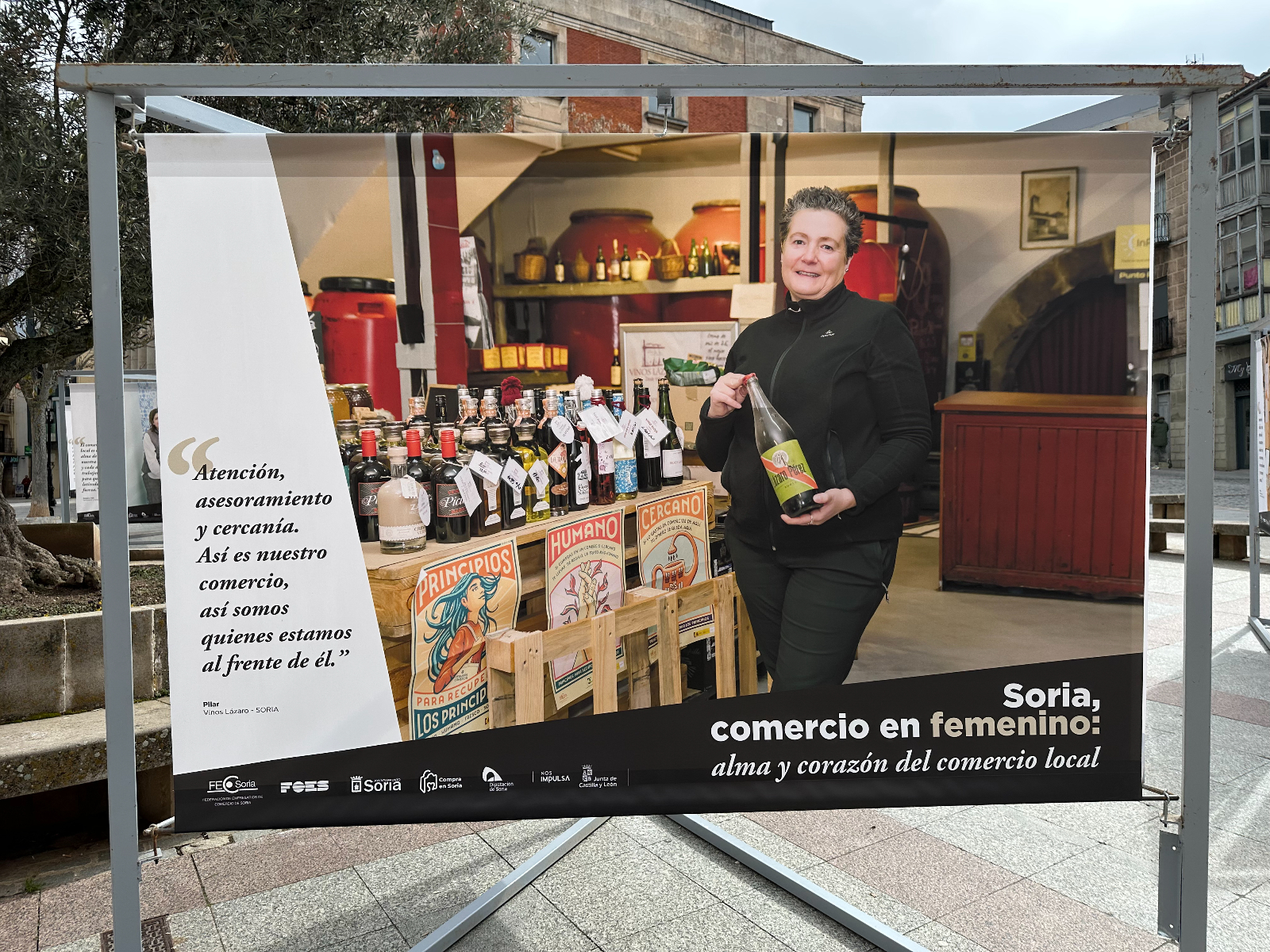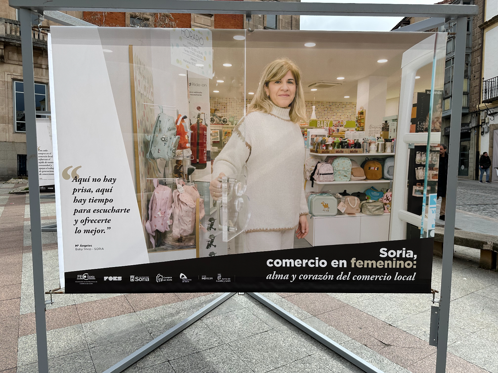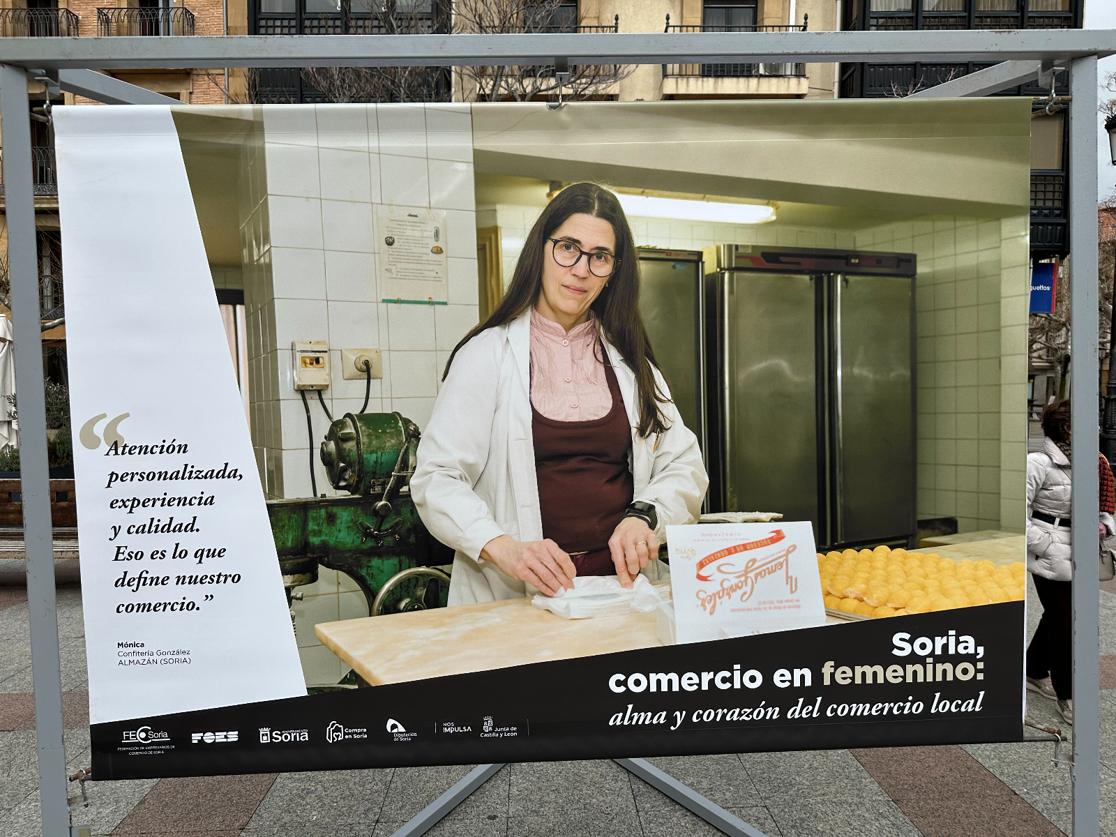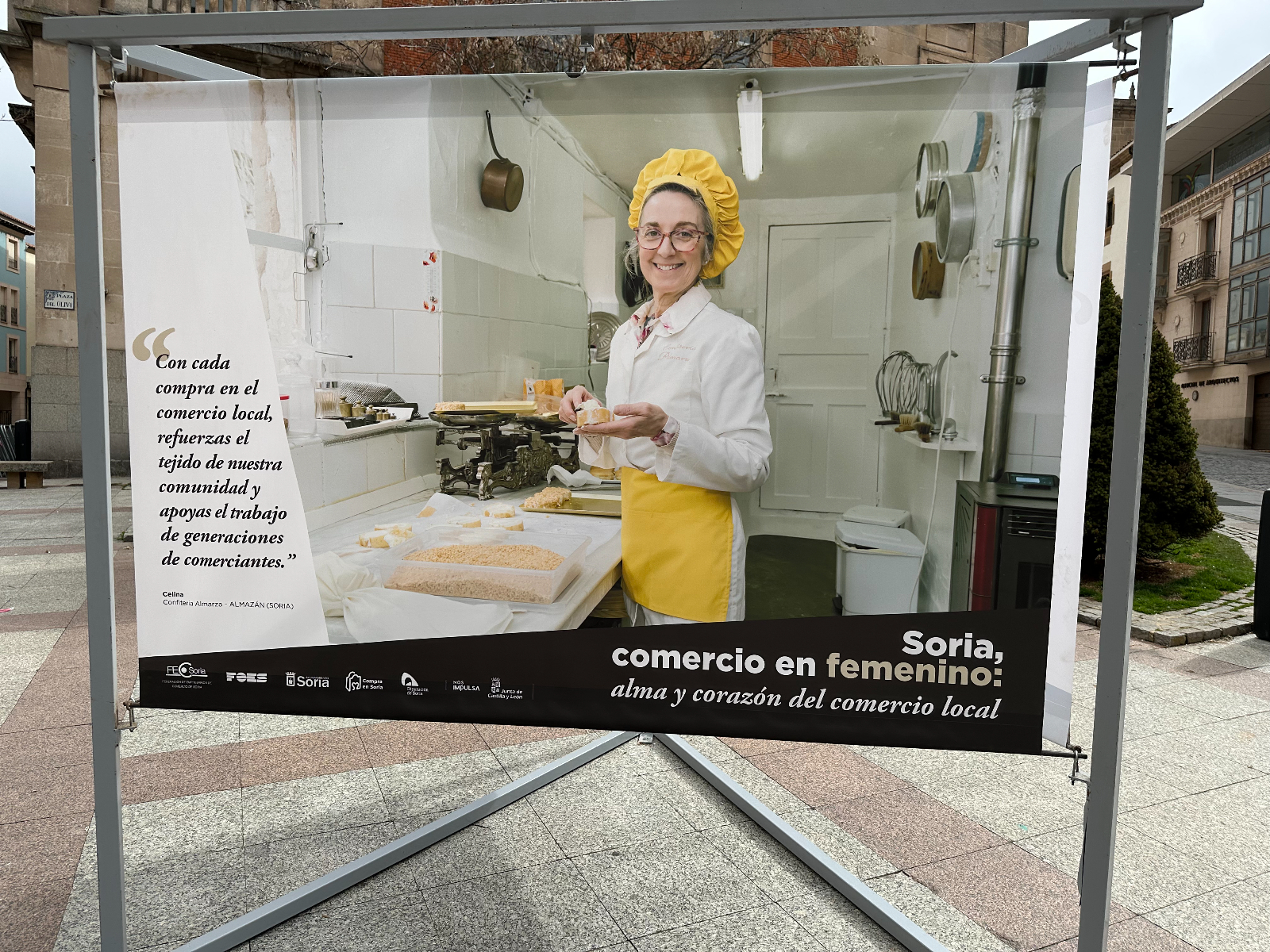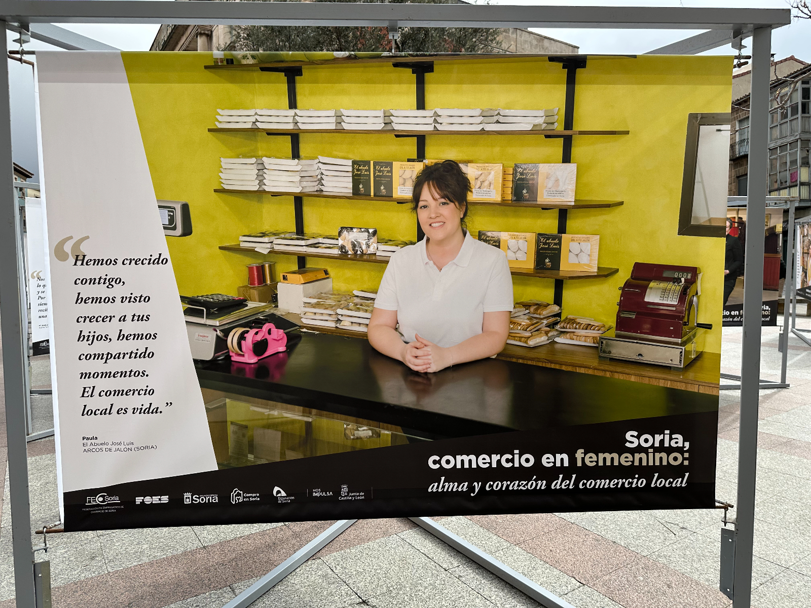 Si pasas por la plaza del Olivo te habrás encontrado unas lonas con imágenes de comerciantes sorianas. Se trata de la exposición 'Soria, comercio en femenino: alma y corazón del comercio local'. Tiene como objetivo poner en valor y dar visibilidad al papel que tienen ellas en este sector de la economía de nuestra provincia.