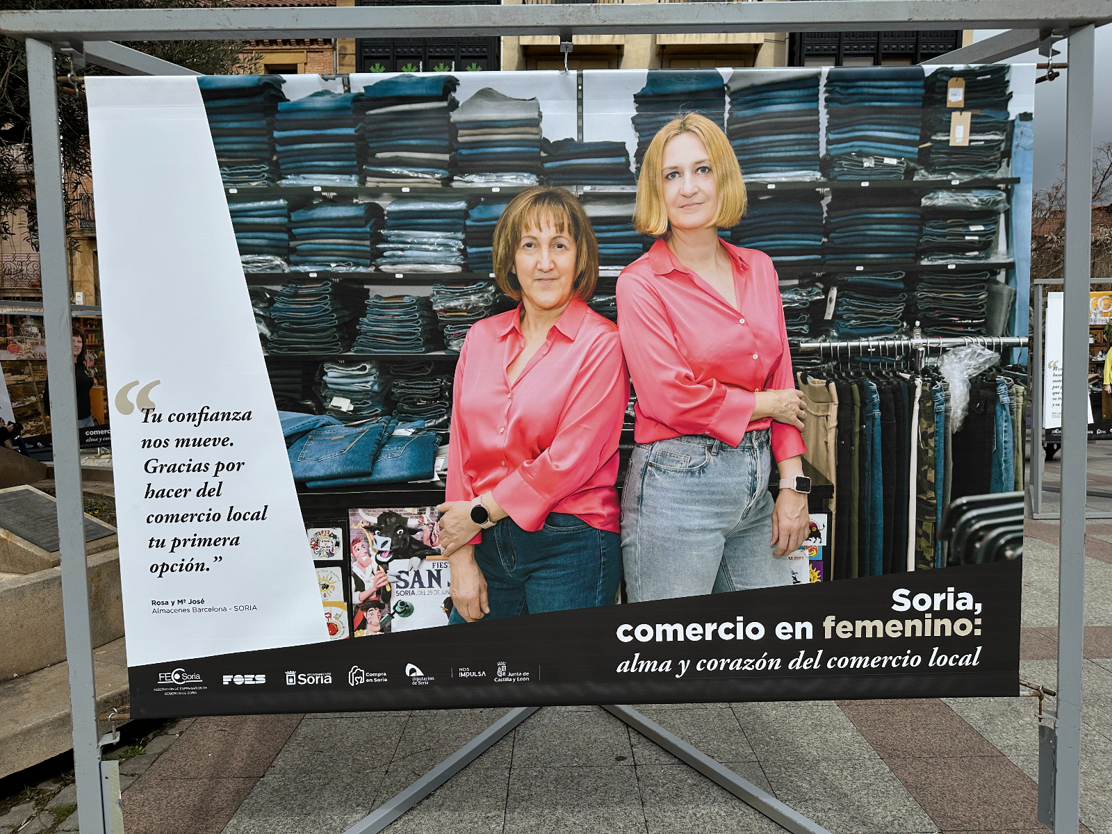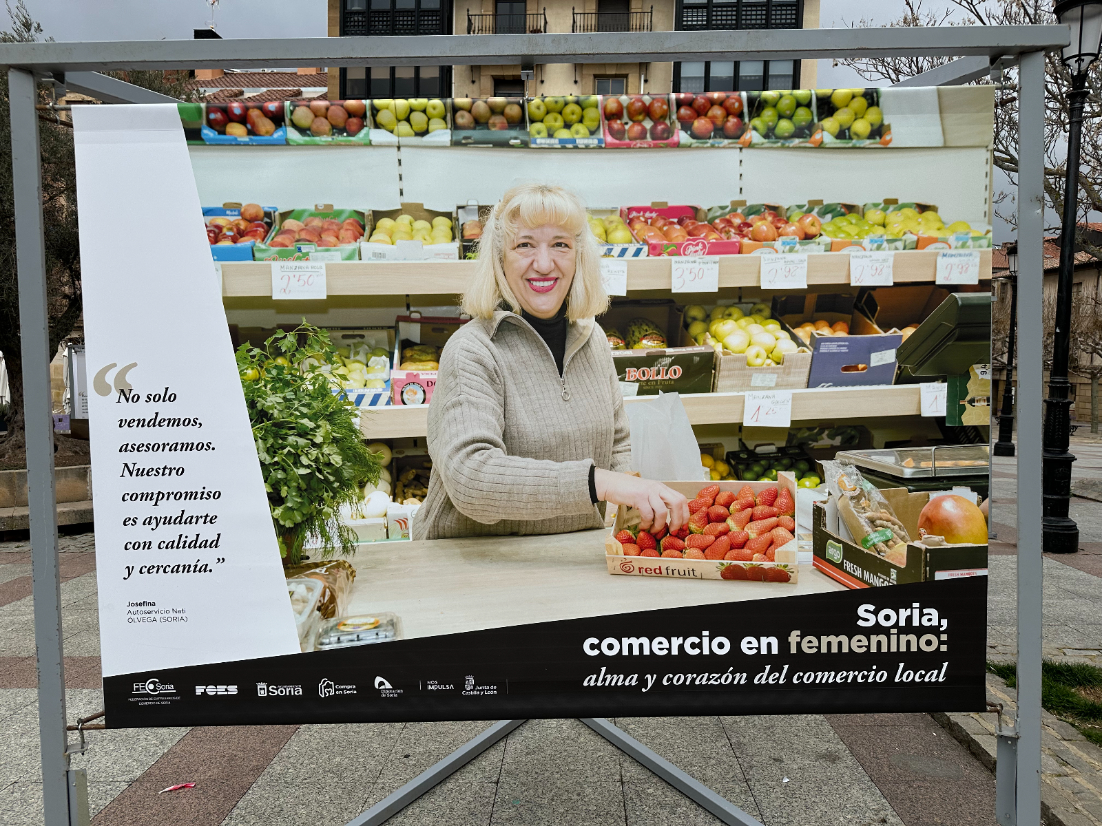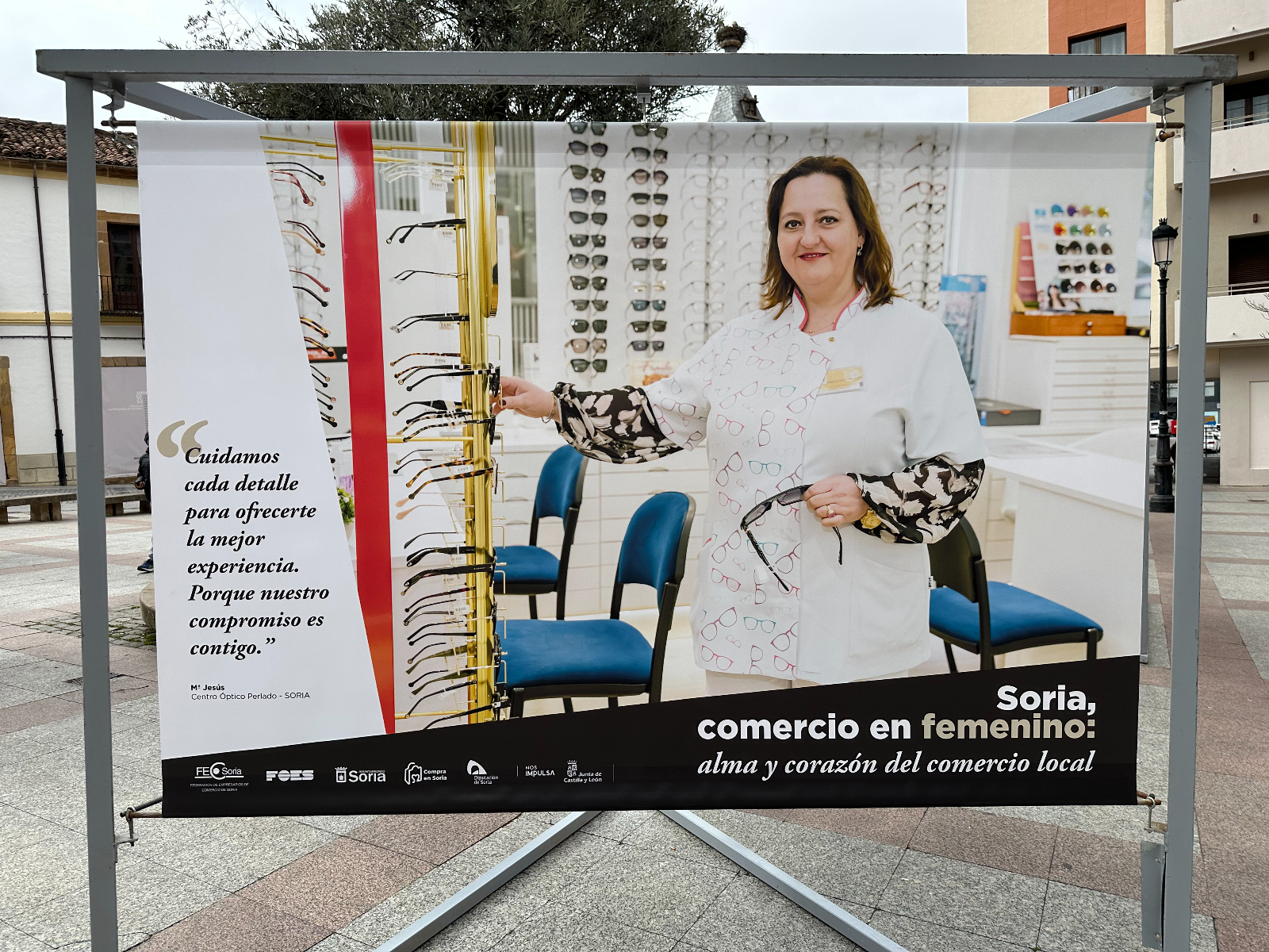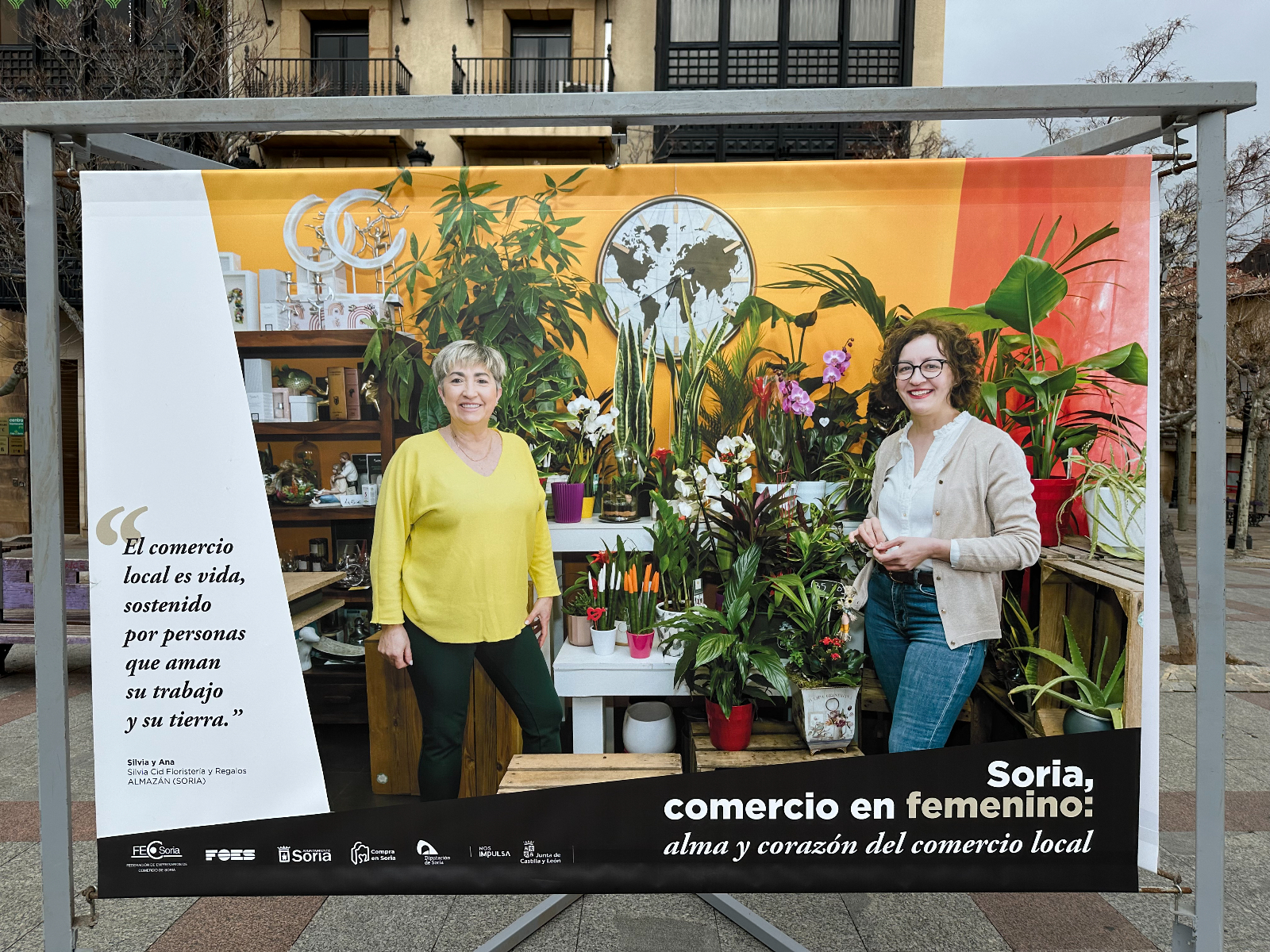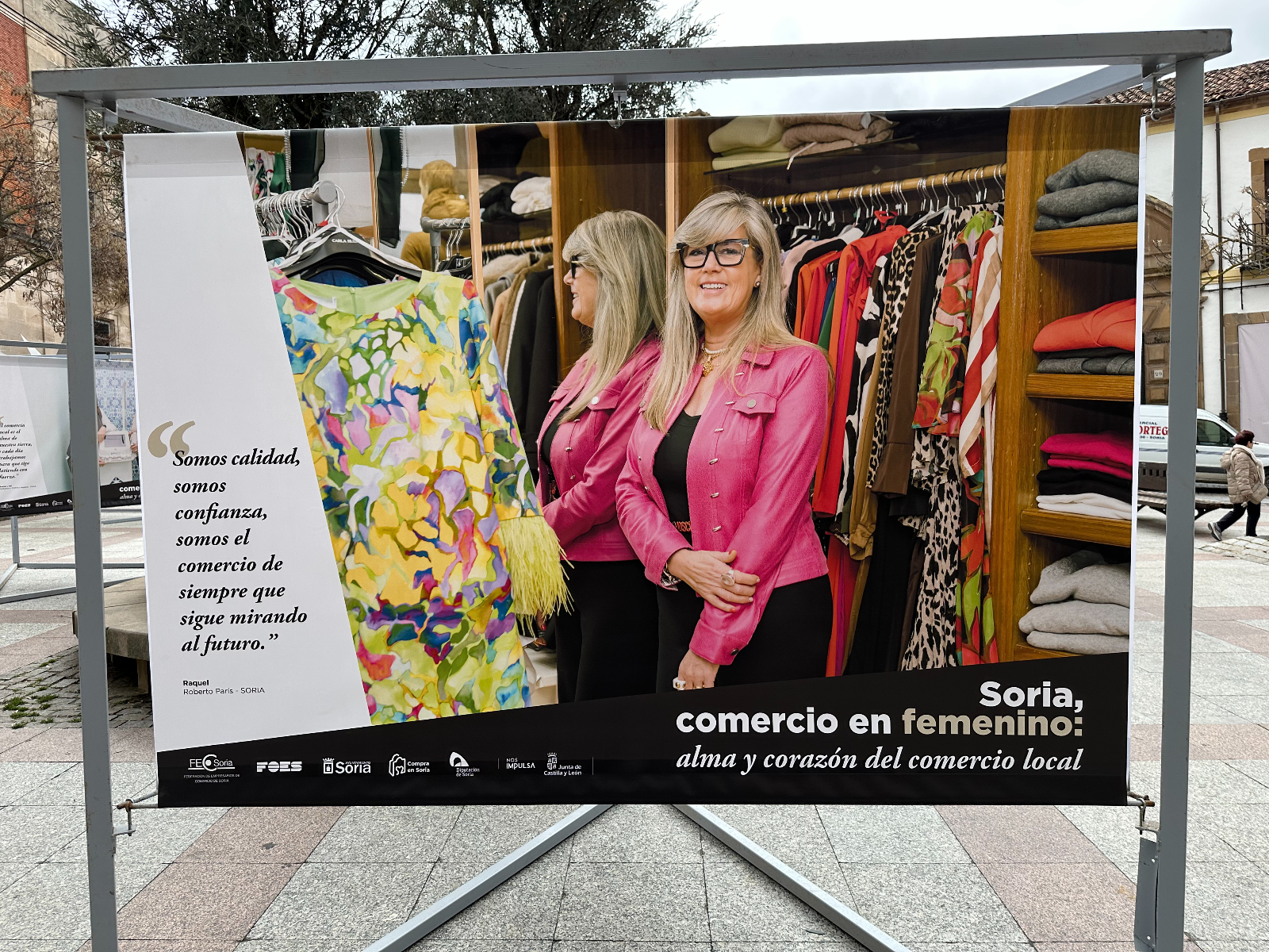 Si pasas por la plaza del Olivo te habrás encontrado unas lonas con imágenes de comerciantes sorianas. Se trata de la exposición 'Soria, comercio en femenino: alma y corazón del comercio local'. Tiene como objetivo poner en valor y dar visibilidad al papel que tienen ellas en este sector de la economía de nuestra provincia.