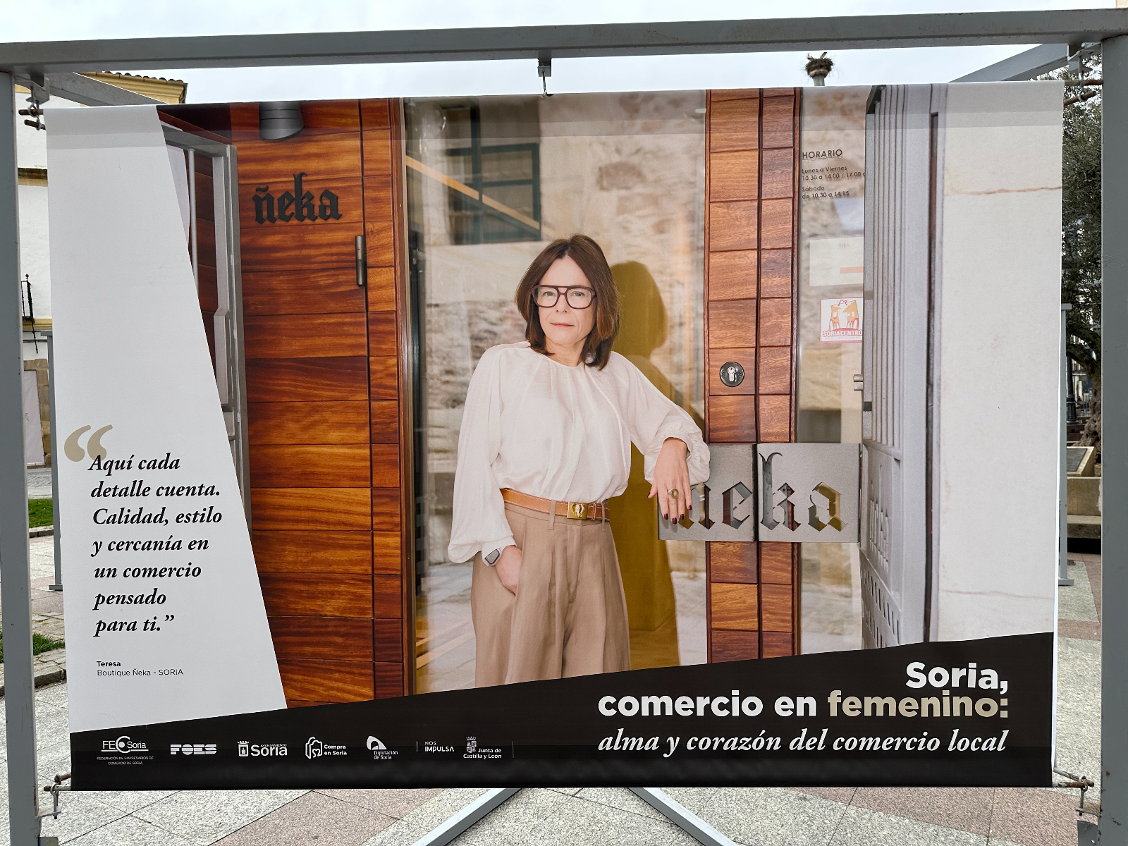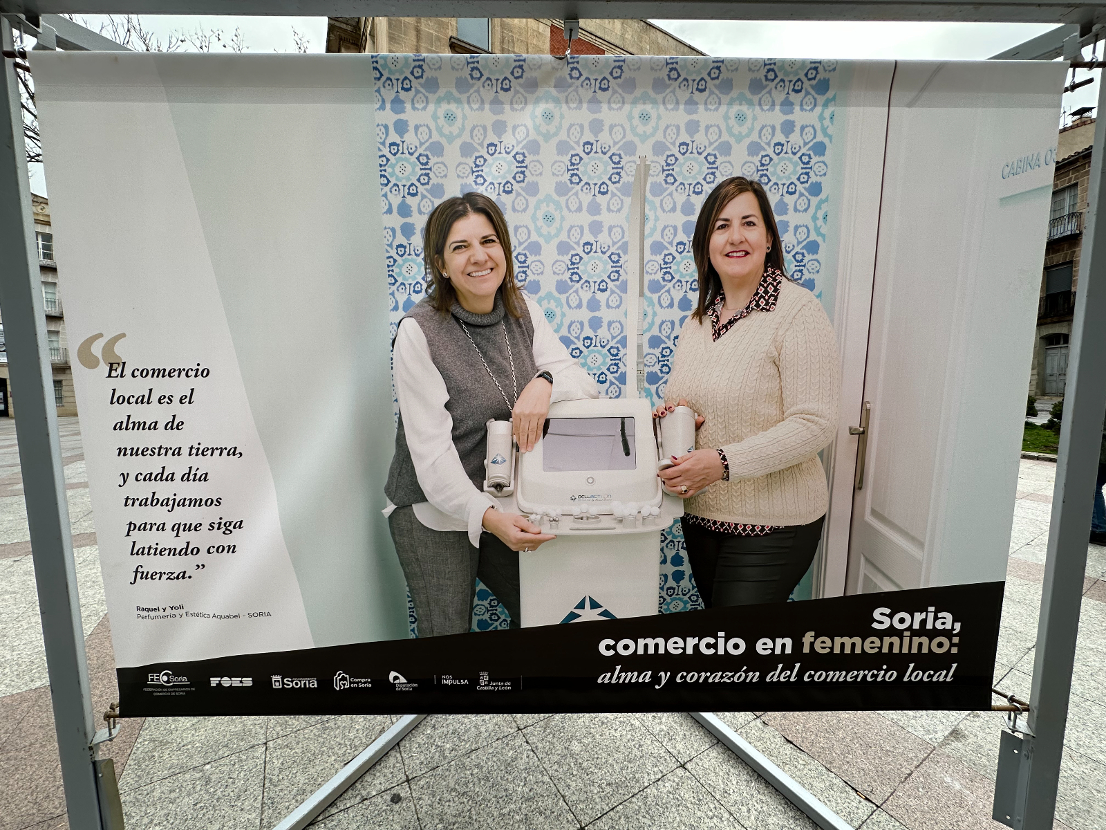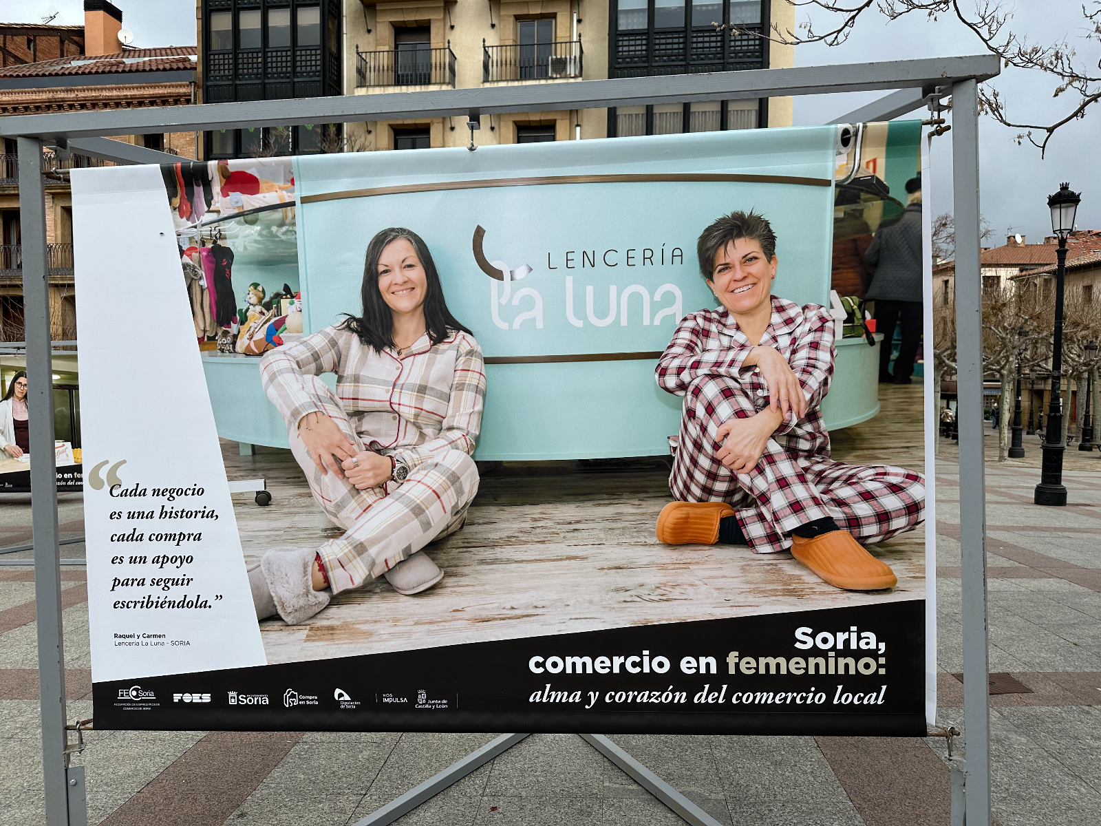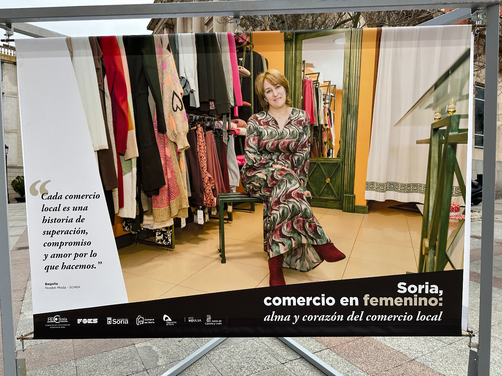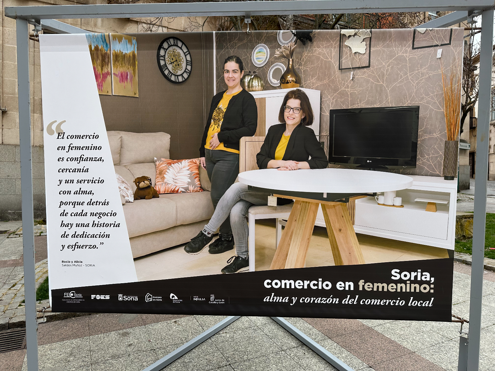 Si pasas por la plaza del Olivo te habrás encontrado unas lonas con imágenes de comerciantes sorianas. Se trata de la exposición 'Soria, comercio en femenino: alma y corazón del comercio local'. Tiene como objetivo poner en valor y dar visibilidad al papel que tienen ellas en este sector de la economía de nuestra provincia.
