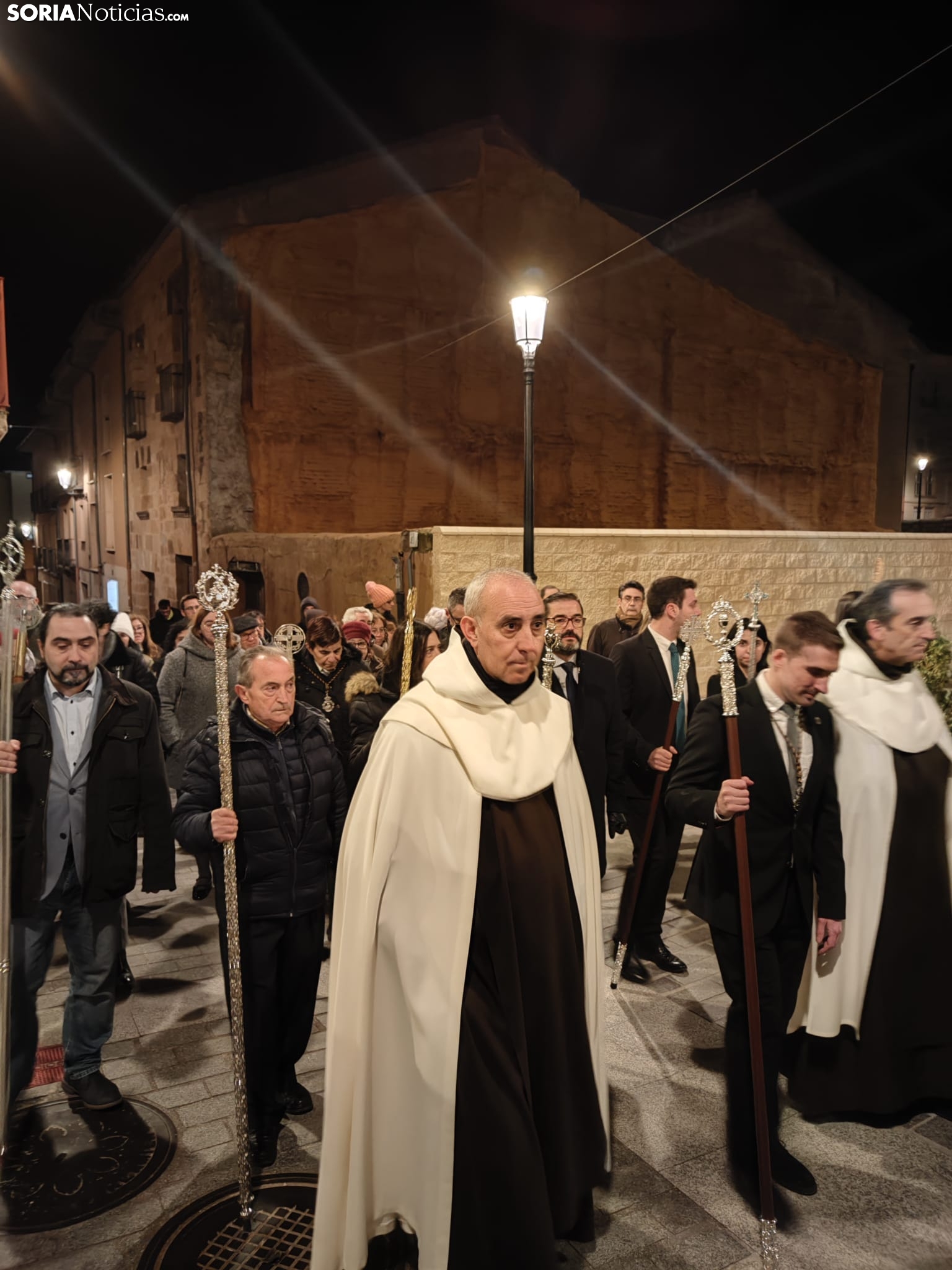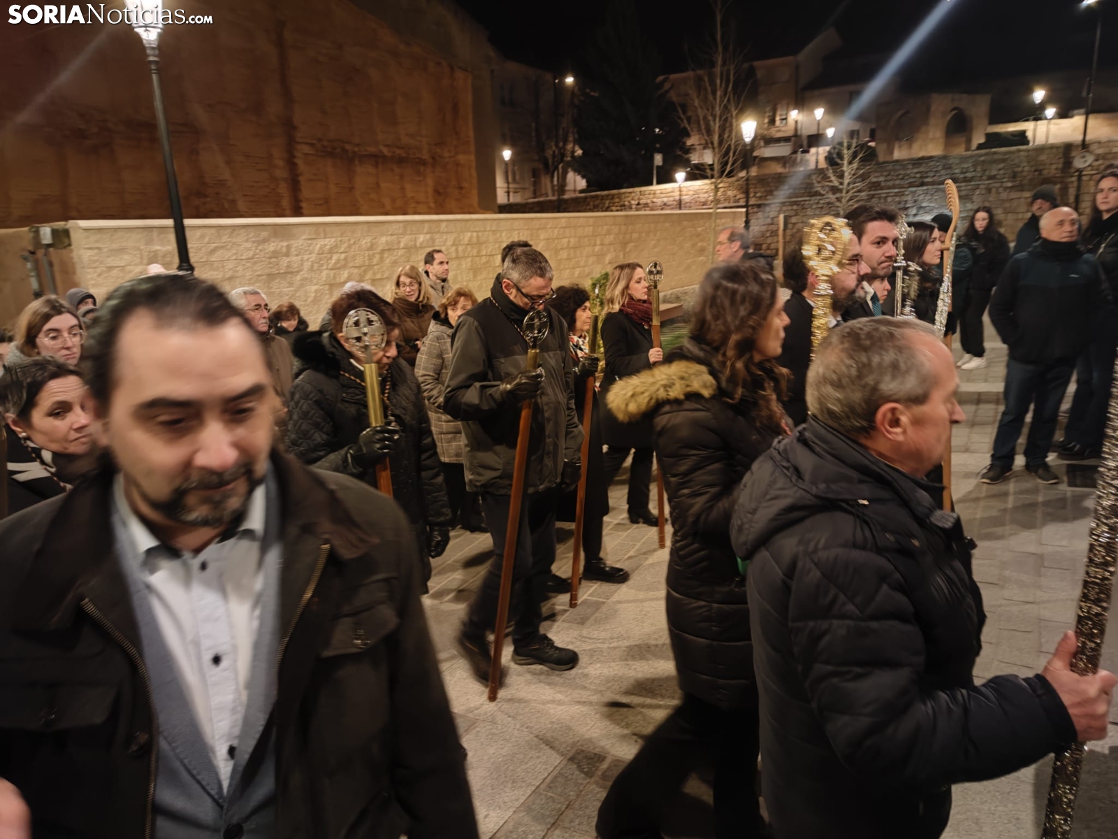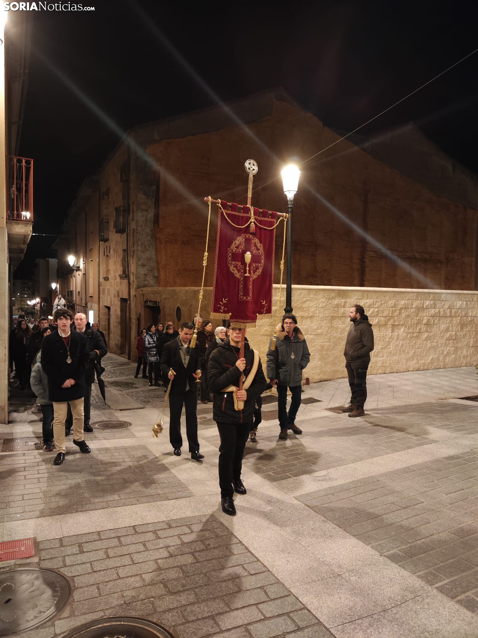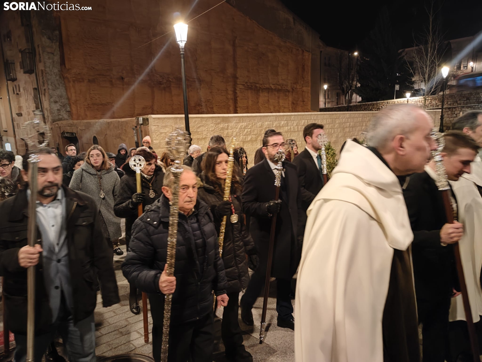 Con solemnidad y por primera vez, el Miércoles de Ceniza en la capital soriana tenía, en la noche de este miércoles, carácter procesional. El Cristo de la Oración, perteneciente a la Cofradía de la Oración en el Huerto, era trasladado de la concatedral de San Pedro, sede de la hermandad promotora, hasta el templo de los Hermanos Carmelitas Descalzos.