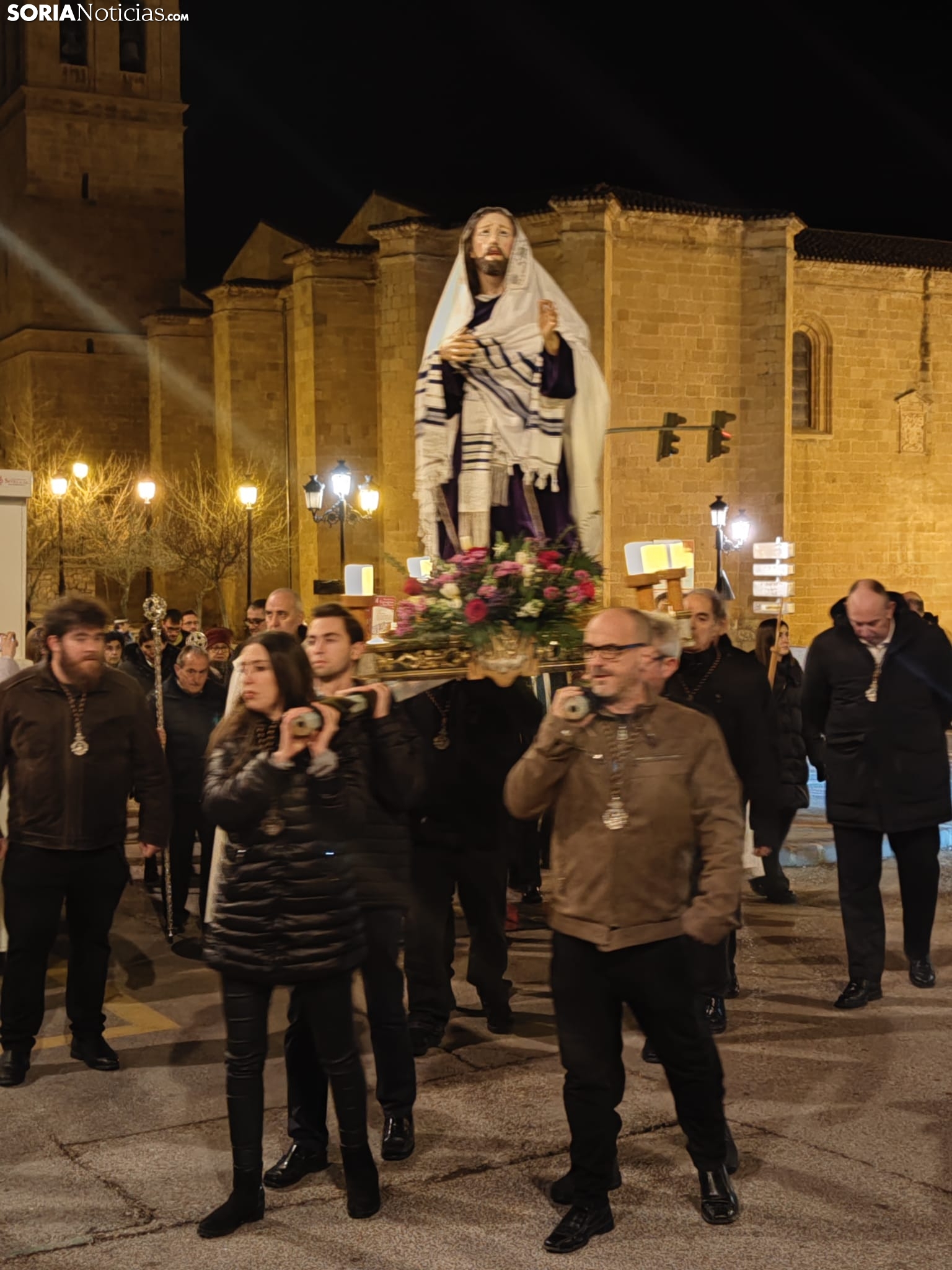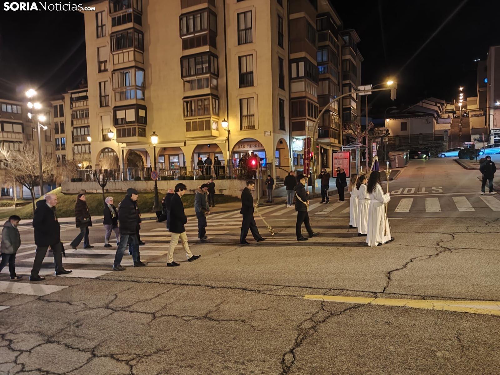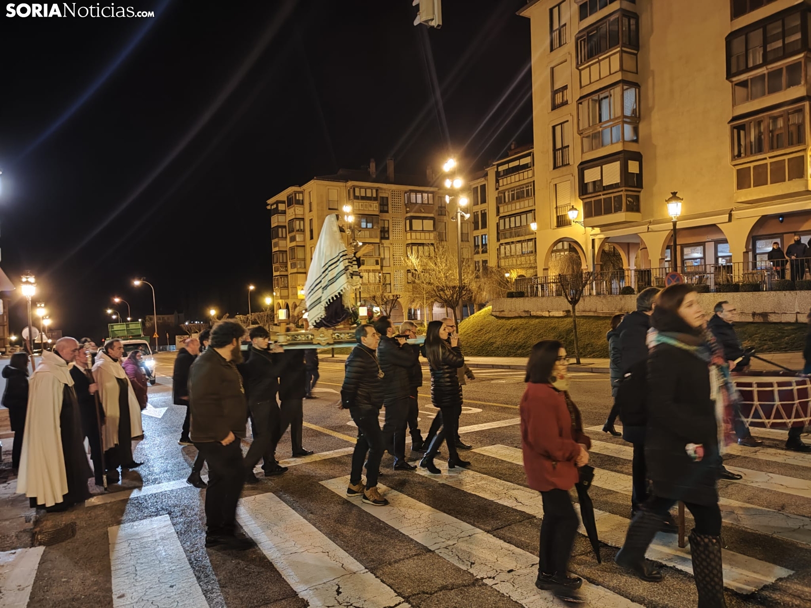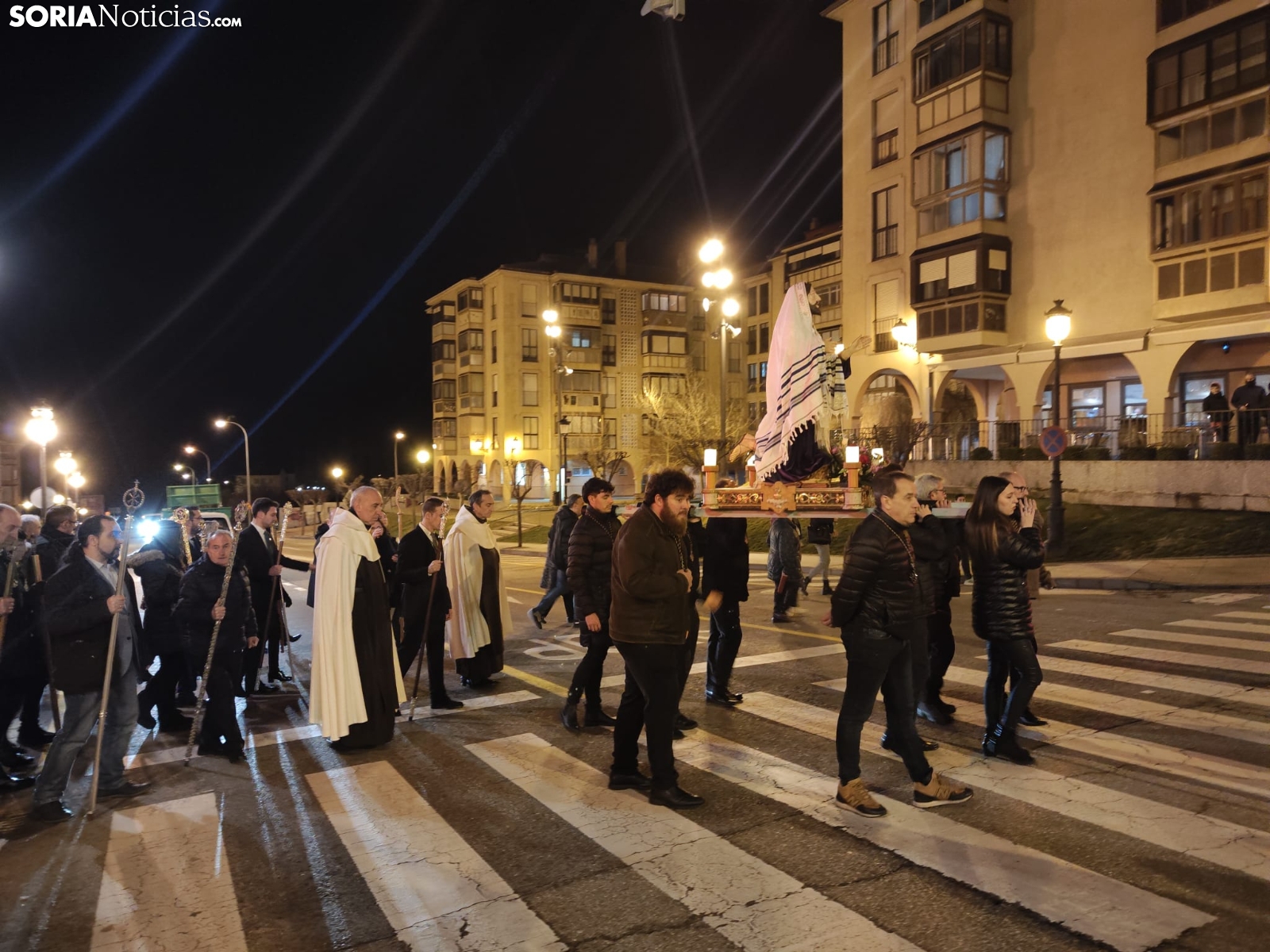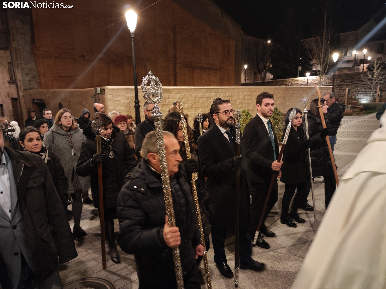 Con solemnidad y por primera vez, el Miércoles de Ceniza en la capital soriana tenía, en la noche de este miércoles, carácter procesional. El Cristo de la Oración, perteneciente a la Cofradía de la Oración en el Huerto, era trasladado de la concatedral de San Pedro, sede de la hermandad promotora, hasta el templo de los Hermanos Carmelitas Descalzos.