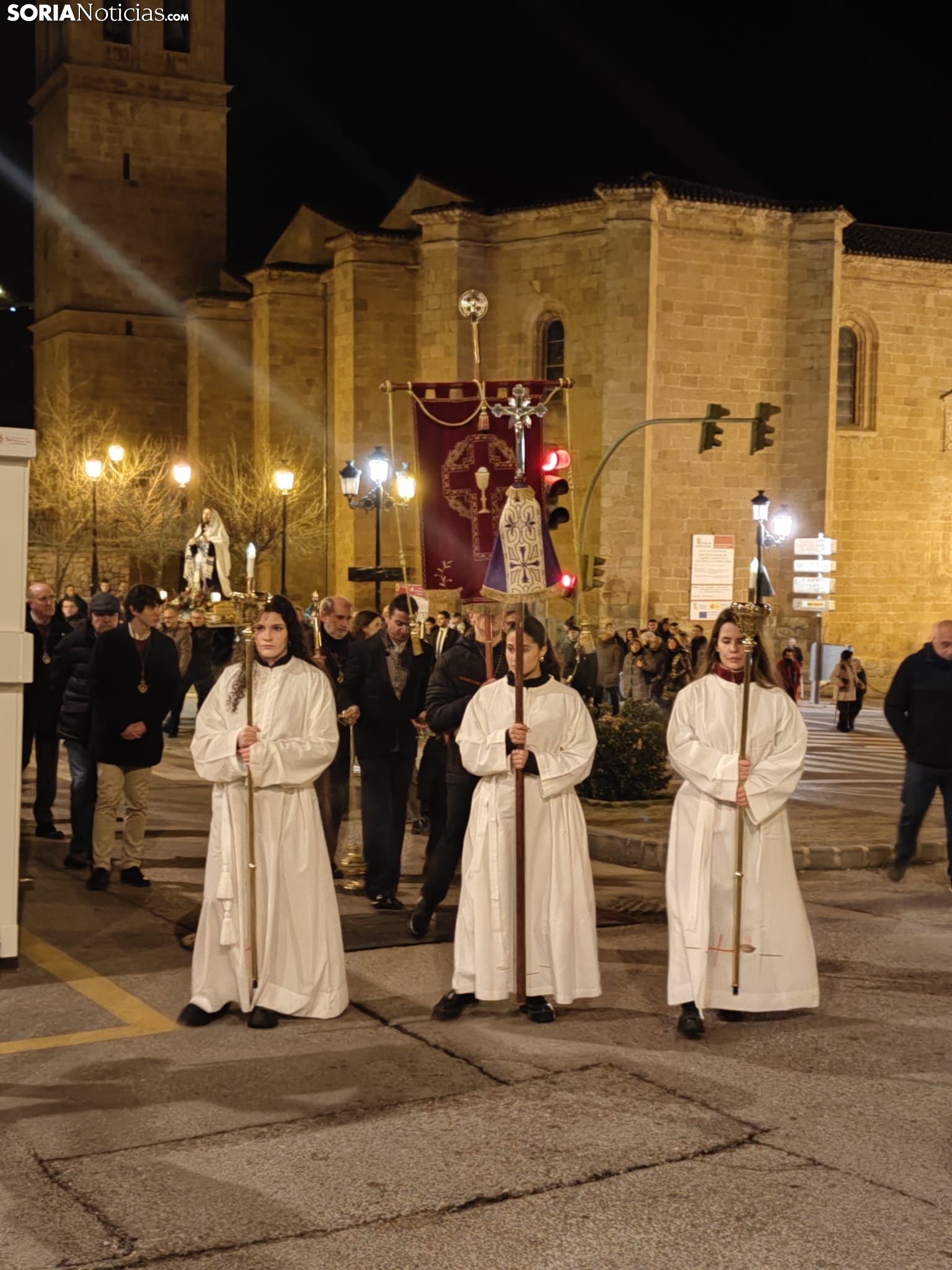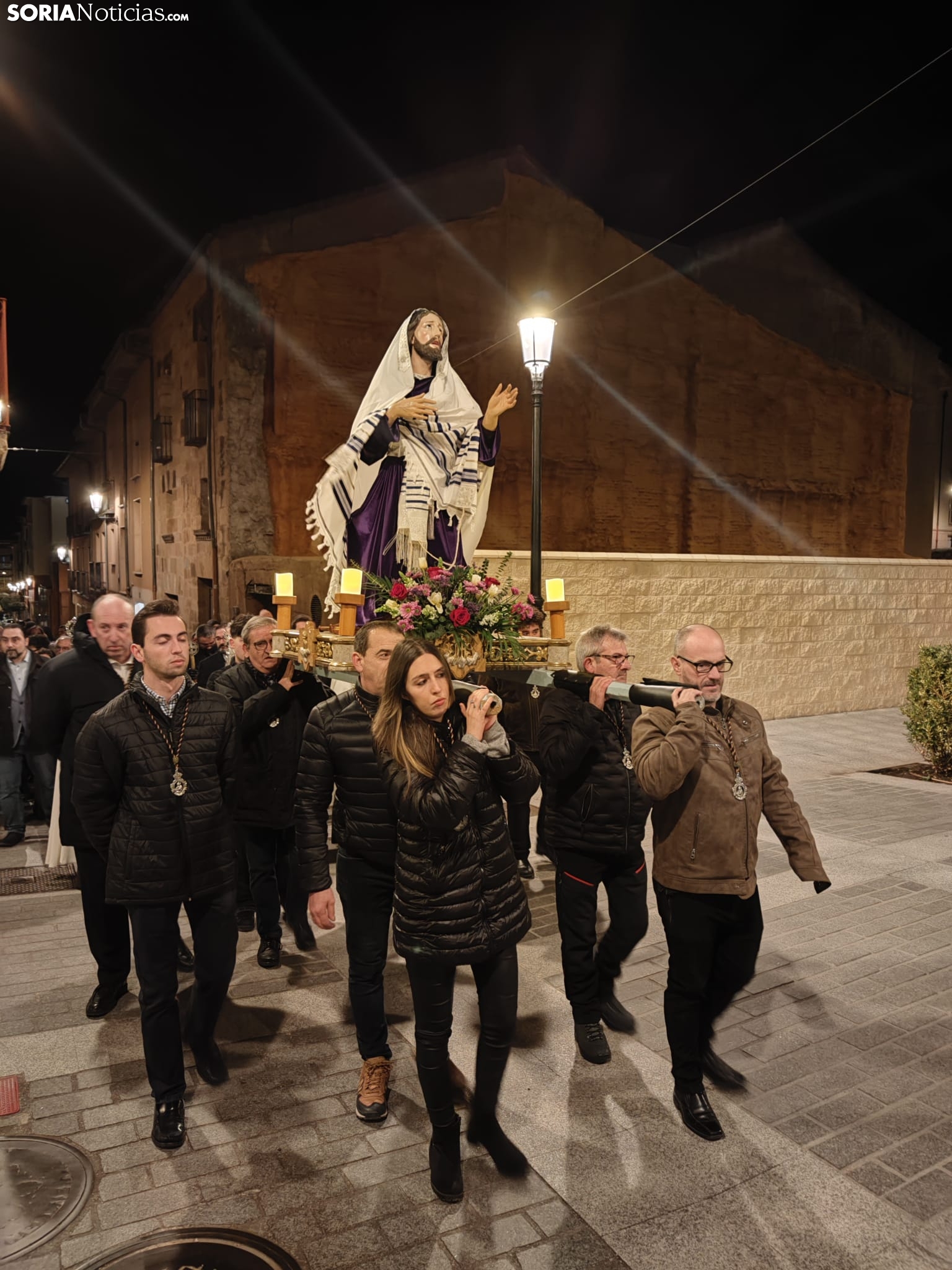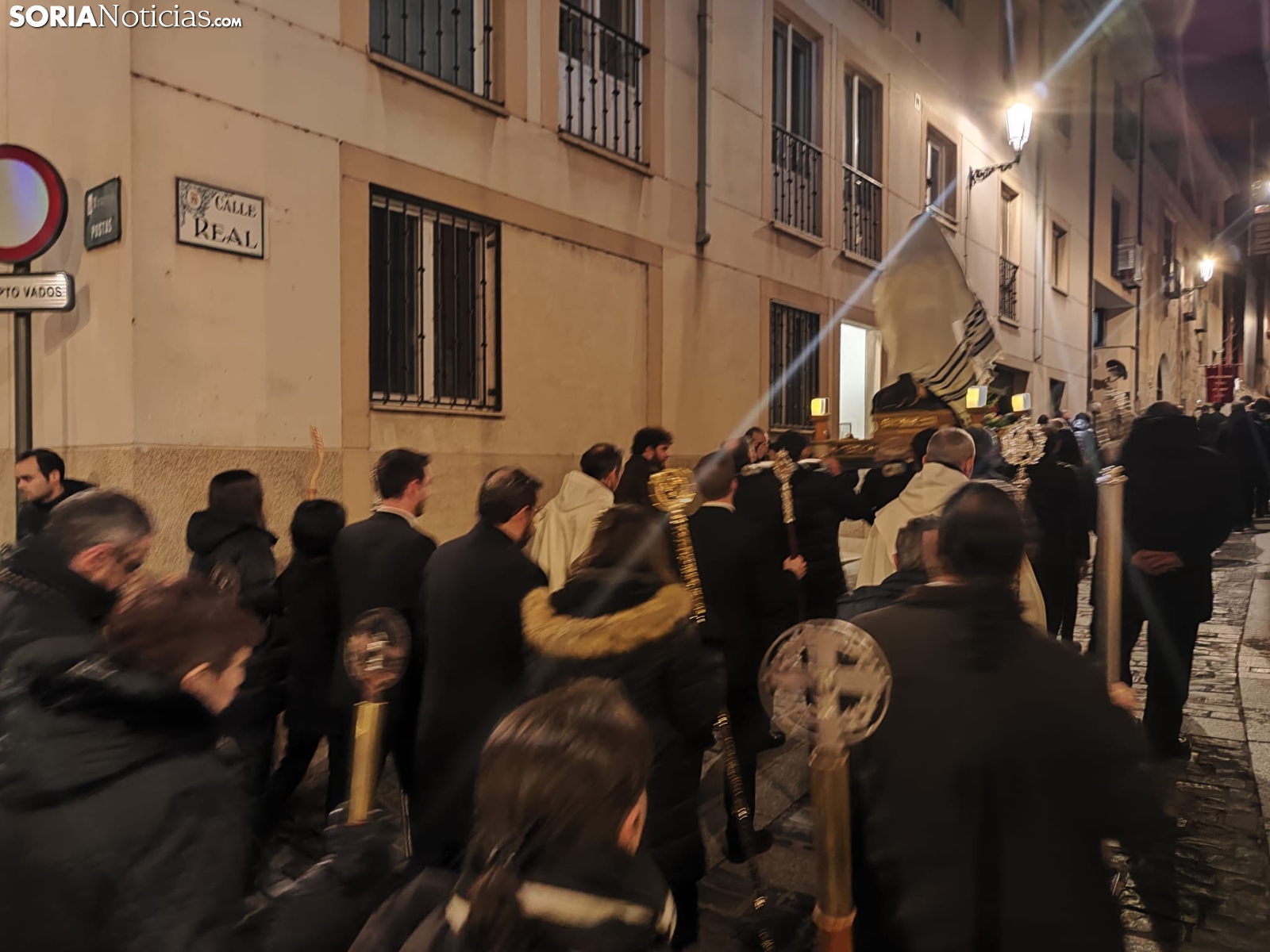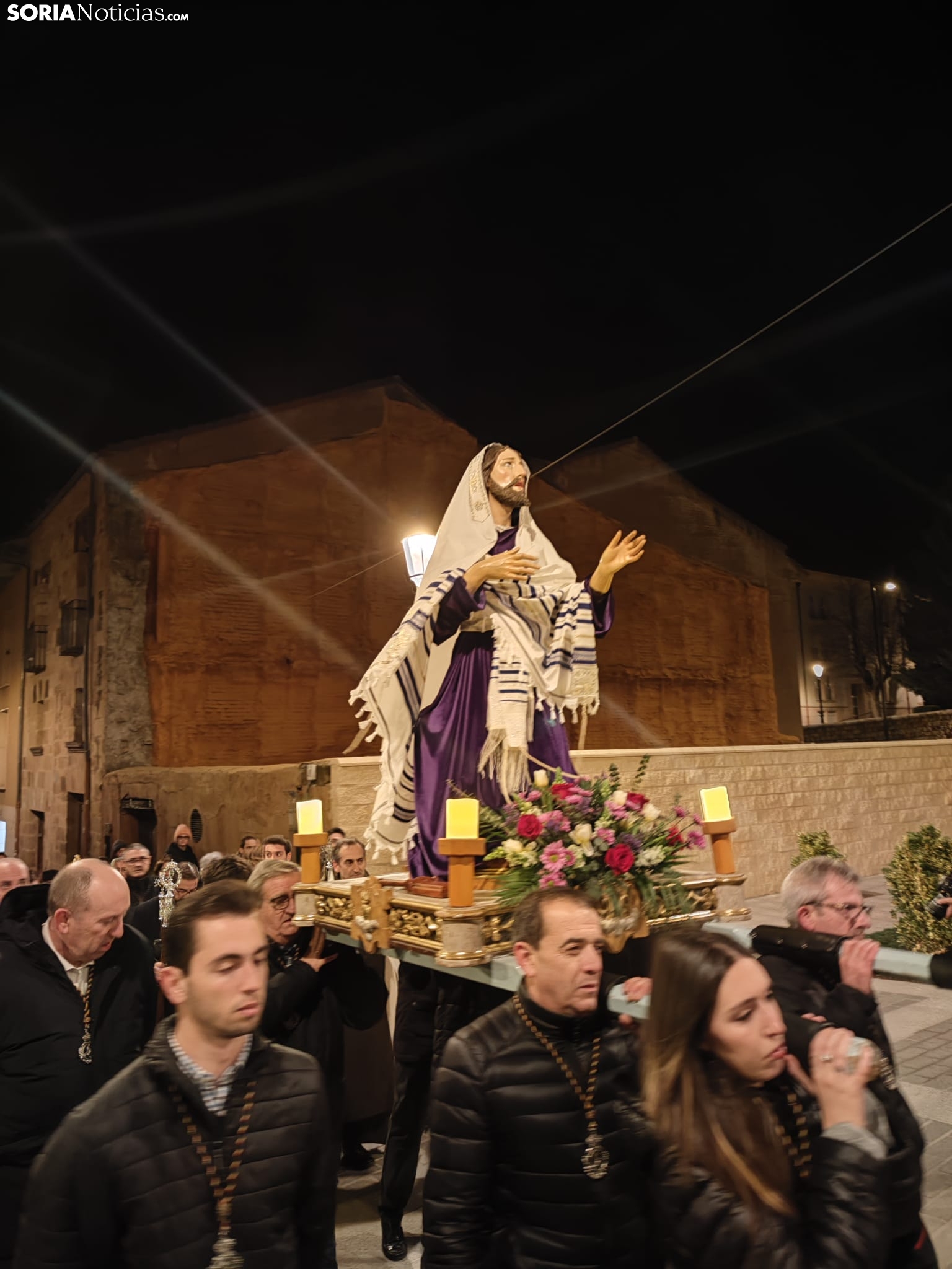 Con solemnidad y por primera vez, el Miércoles de Ceniza en la capital soriana tenía, en la noche de este miércoles, carácter procesional. El Cristo de la Oración, perteneciente a la Cofradía de la Oración en el Huerto, era trasladado de la concatedral de San Pedro, sede de la hermandad promotora, hasta el templo de los Hermanos Carmelitas Descalzos.