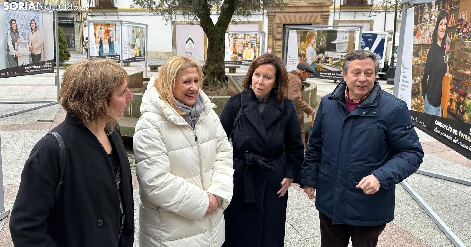 La exposición 'Soria, comercio en femenino: alma y corazón del comercio local' estará hasta finales de marzo en la Plaza del Olivo. Muestra una treintena de comercios sorianos y sus respectivas dependientas.
