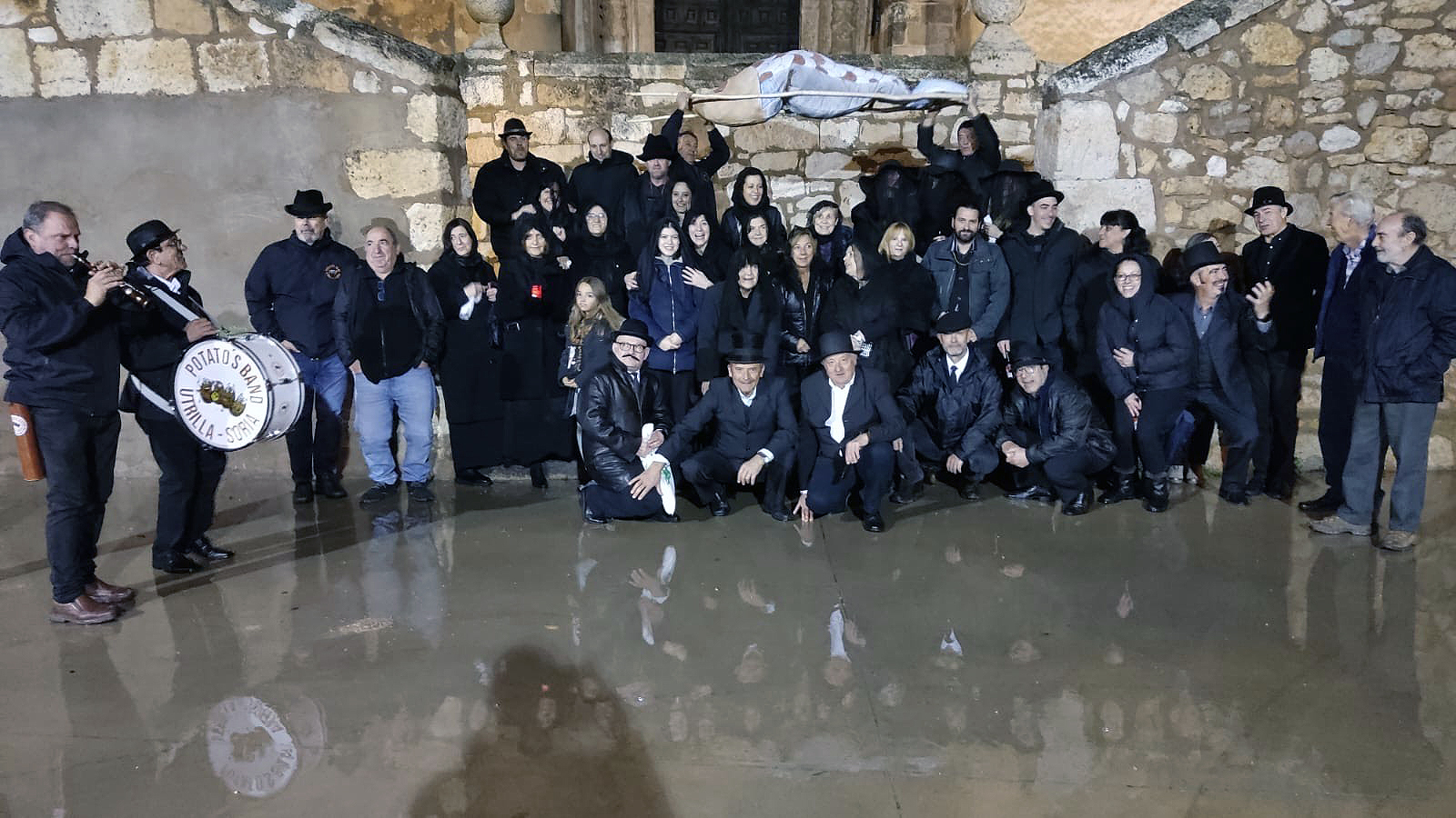 El momento más esperado llegó con la preparación del séquito funerario, aunque una intensa lluvia obligó a improvisar. Los organizadores, lejos de rendirse, trasladaron el habitual pasacalles a la bajera del local del pueblo, donde continuaron con la celebración bajo techo.