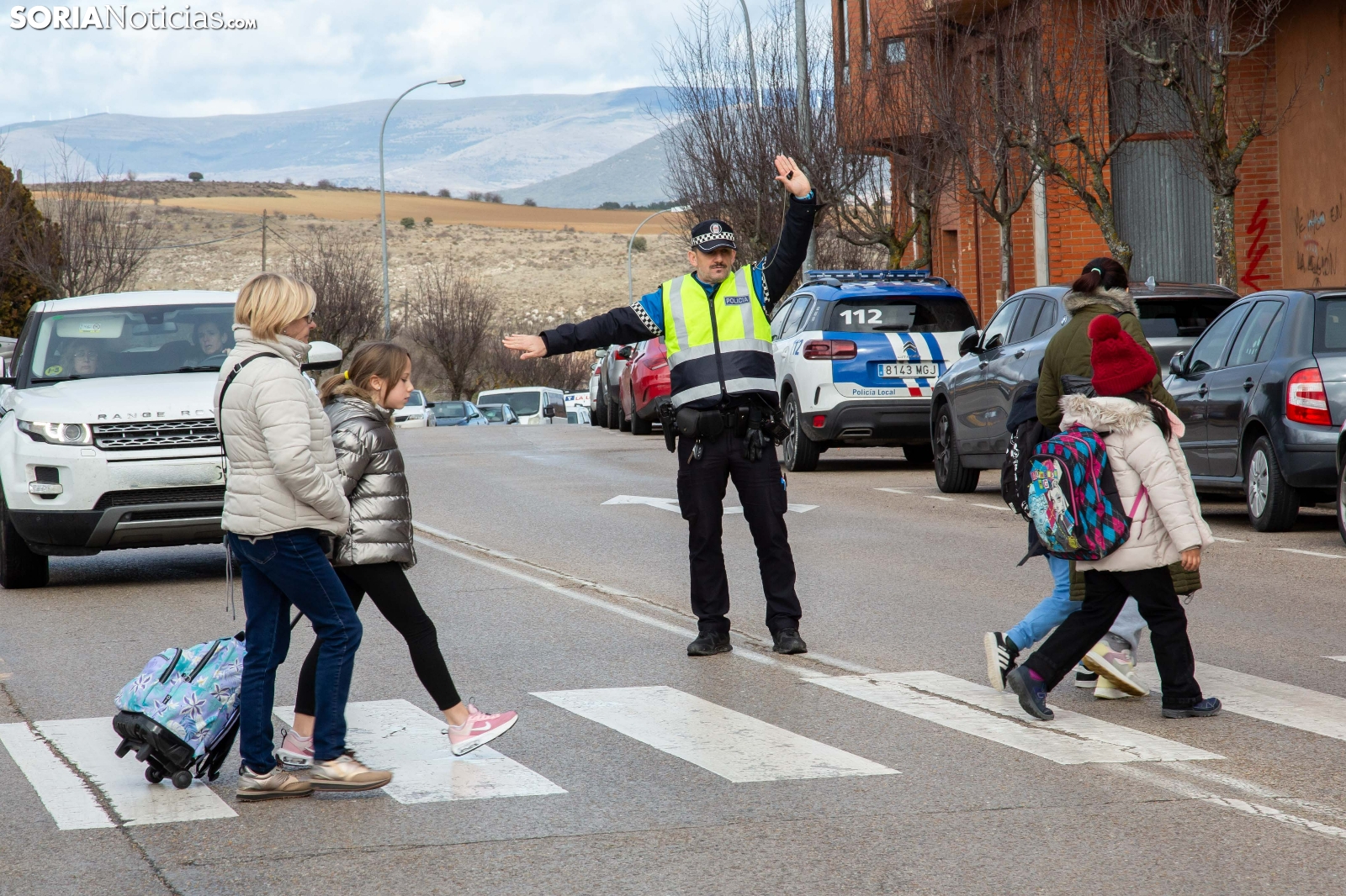 A las 8:45 h, los agentes comienzan su patrullaje en los colegios, donde se encargan de controlar el acceso de los vehículos, asegurándose de que no haya aglomeraciones ni se entorpezca el tráfico. También supervisan el reparto de cromos y entradas a eventos como circos o espectáculos en los centros. A lo largo de la mañana, los agentes, igualmente, están durante los recreos de los institutos, garantizando la seguridad y el orden. Además, se encargan de las salidas de los centros educativos para que todo transcurra sin incidentes.