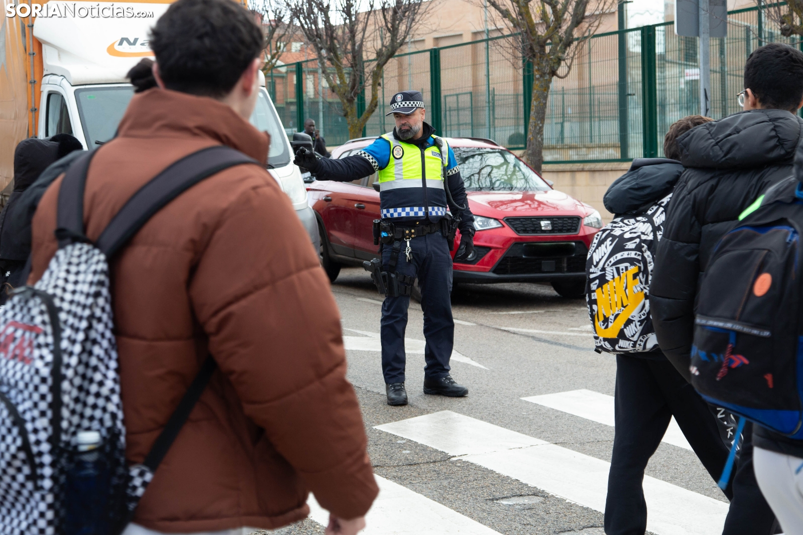 La Policía Local de Soria trabaja las 24 horas del día, pero el primer turno comienza a las 6:45 h con una reunión entre el oficial y el jefe para distribuir las patrullas y asignar las zonas a patrullar. En ese momento, se confirma que cada equipo tiene su perímetro bien determinado y que no haya eventos especiales que alteren el horario. A las 7:30 h, las patrullas salen a recorrer las calles, cubriendo áreas como El Collado, la Dehesa y el río. Los fines de semana se refuerzan zonas como Santa Clara, más concurridas durante las horas nocturnas, para garantizar la seguridad. Uno de los momentos más importantes de la jornada es el control del tráfico entre las 8:00 h y las 9:00 h, cuando los padres llevan a sus hijos a los colegios, asegurándose de que no haya aglomeraciones ni obstrucciones. A pesar de la carga de trabajo, Javier Molina comenta entre risas que muchos vecinos o turistas se acercan a pedir recomendaciones o direcciones.