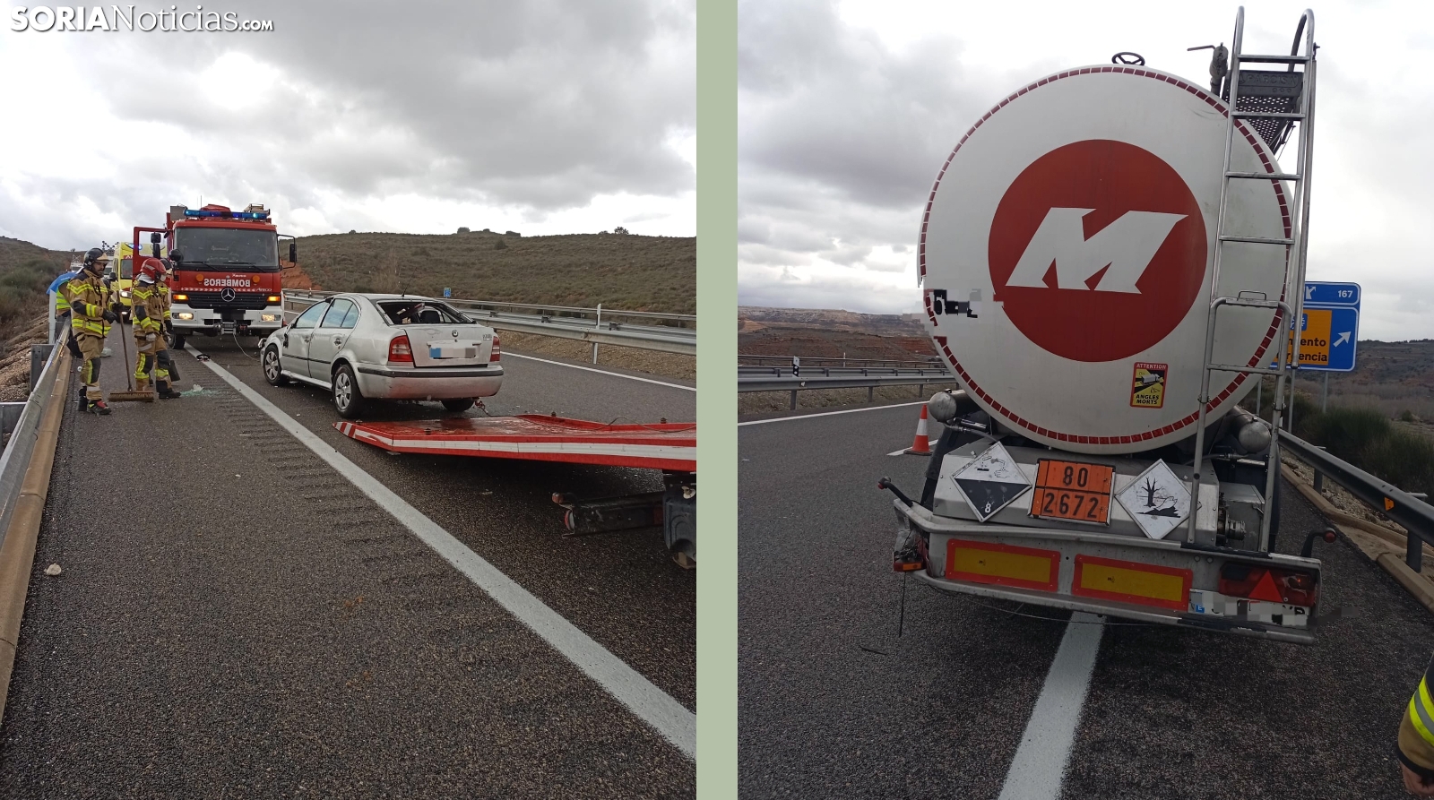 A las 11:25 horas de este jueves era recibida una llamada, en la sala de Emergencias 1-1-2 de Castilla y León, en la que se ponía en conocimiento la colisión por alcance entre un turismo y un vehículo articulado que transitaban, sentido Zaragoza, por la A-2 en el punto kilométrico 167.