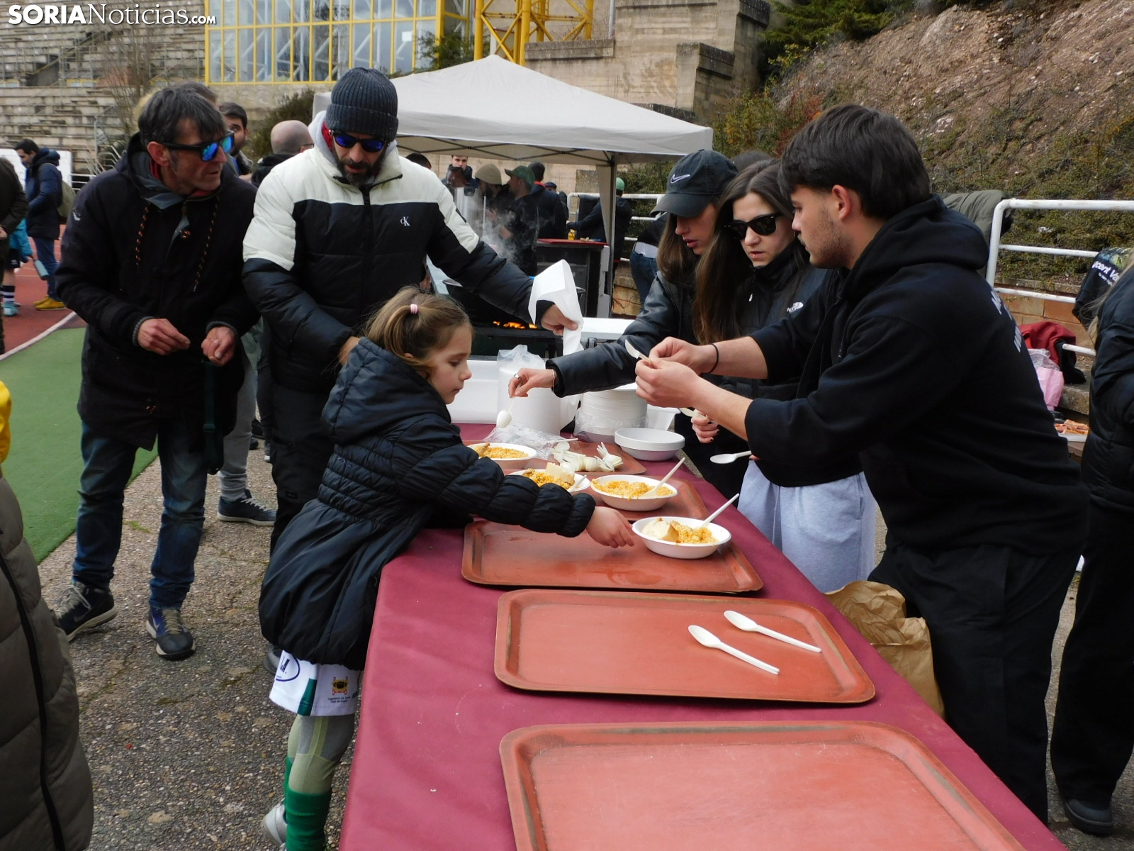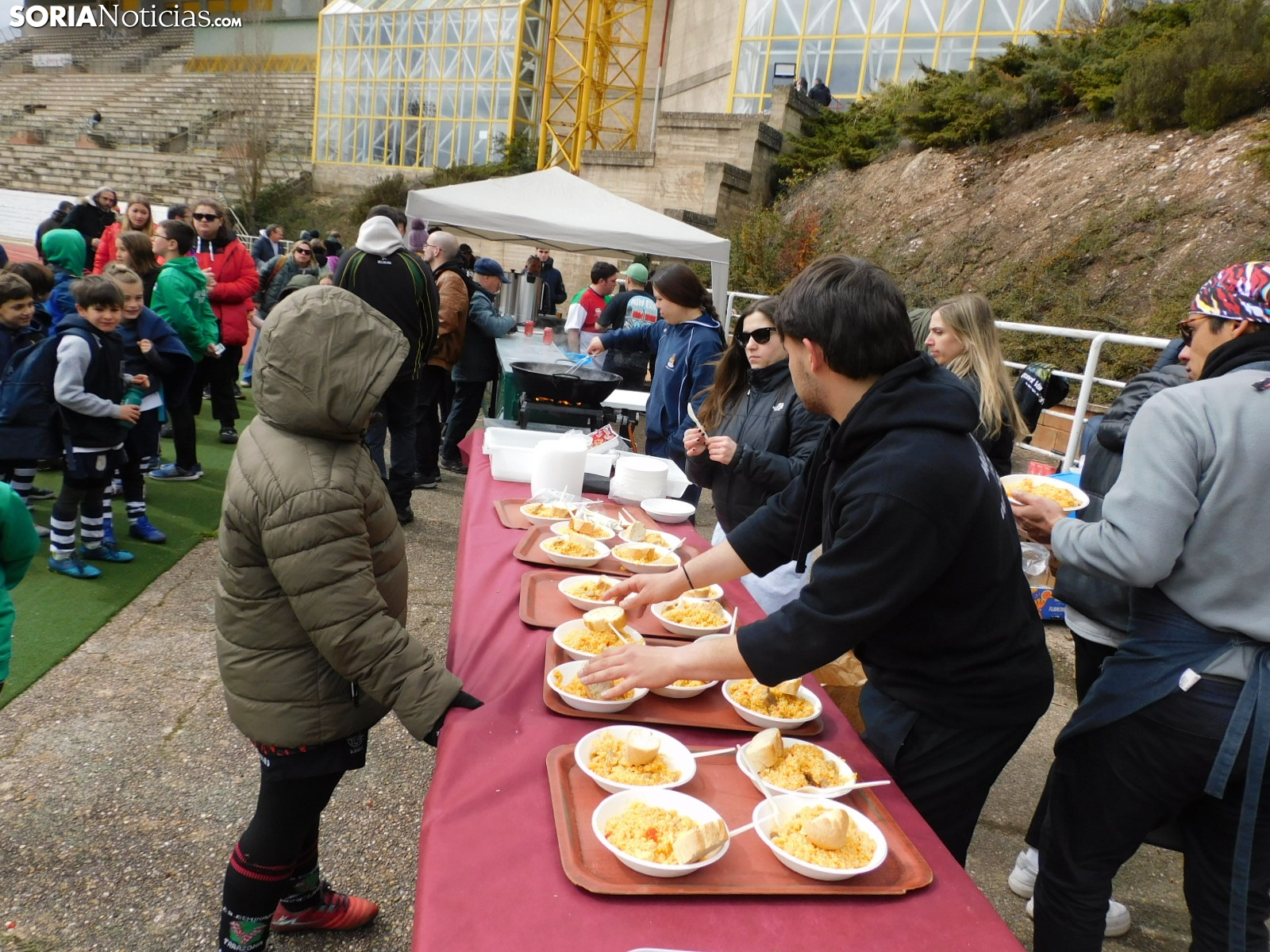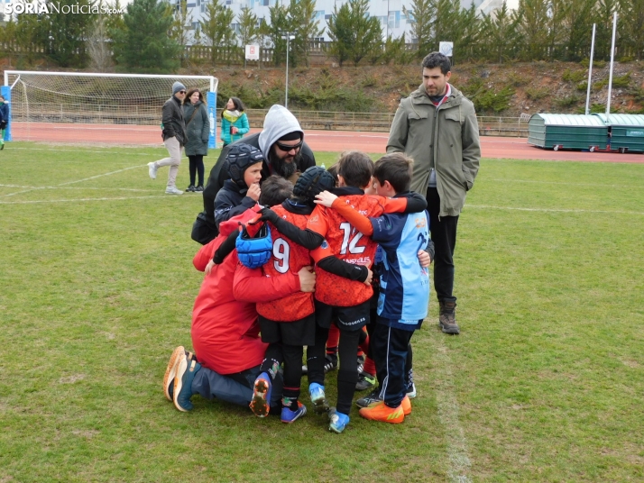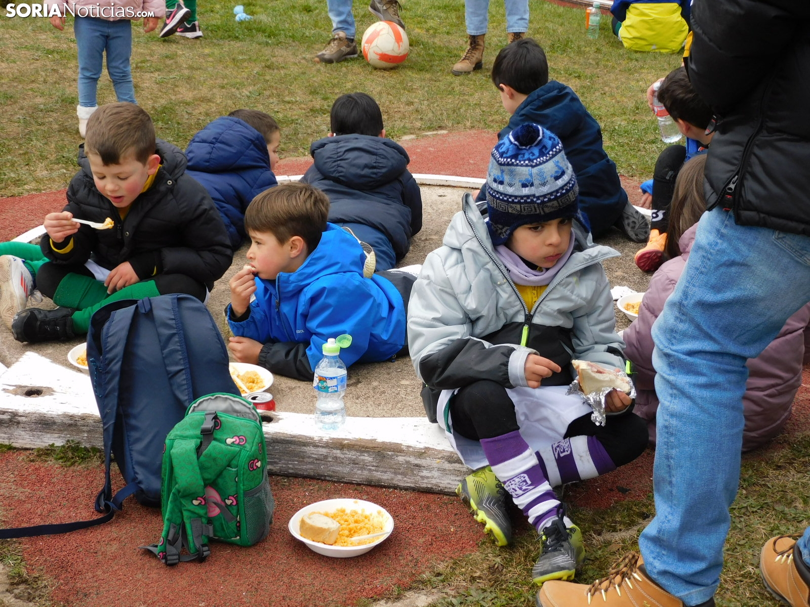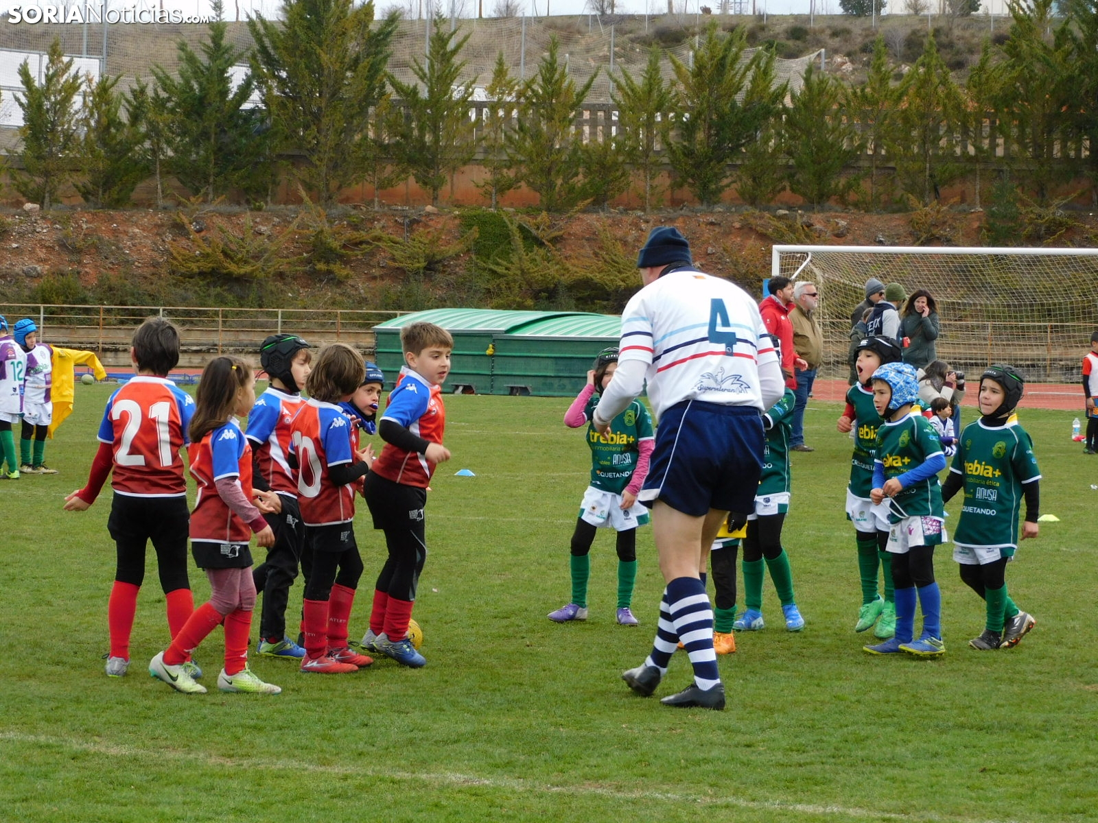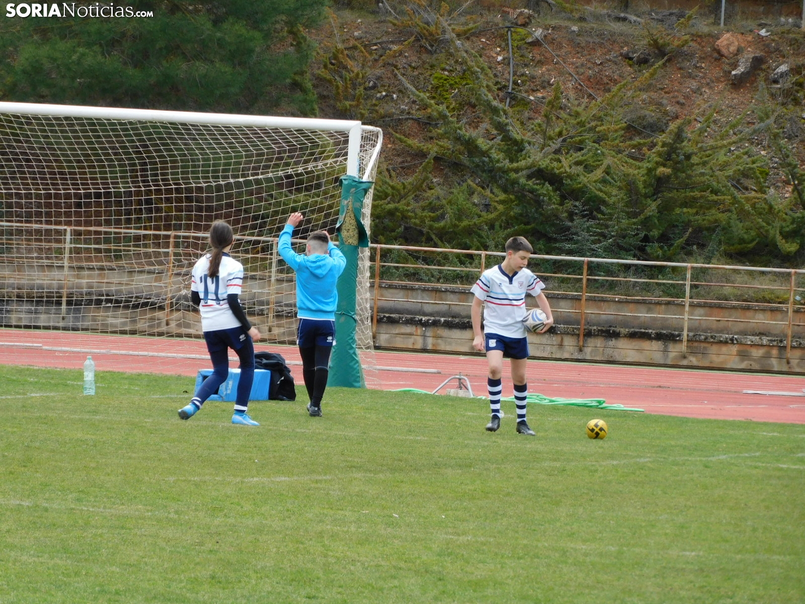 El rugby en Soria sigue en auge tras el éxito de la exposición del XXV aniversario del Ingenieros de Soria. Este sábado 15 de marzo, el estadio de Los Pajaritos se ha convertido en el escenario del Torneo Trebia de Escuelas de Rugby, donde cerca de 400 niños han disfrutado de una jornada llena de aprendizaje, compañerismo y valores. Equipos de Aragón, Castilla y León, Navarra y Madrid han participado en este divertido evento, en el que ha habido tiempo para el tercer tiempo con una deliciosa paella. Después de que todos los participantes cogieran fuerzas, la jornada ha terminado con un partido de touch rugby entre Ingenieros de Soria y Fénix Rugby, protagonizado por padres y madres de los pequeños jugadores.