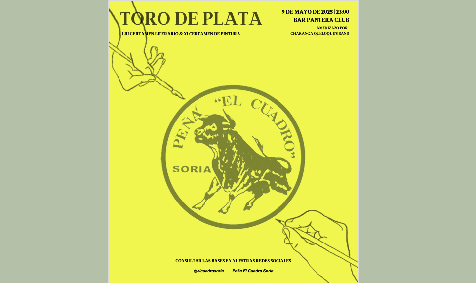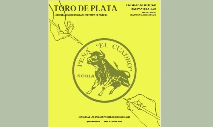 La asociación cultural Peña El Cuadro ha publicado las convocatorias de sus tradicionales certámenes 'Toro de Plata' para 2025, tanto en su modalidad literaria (53ª edición) como de pintura (11ª edición), ambos centrados en las Fiestas de San Juan de Soria.