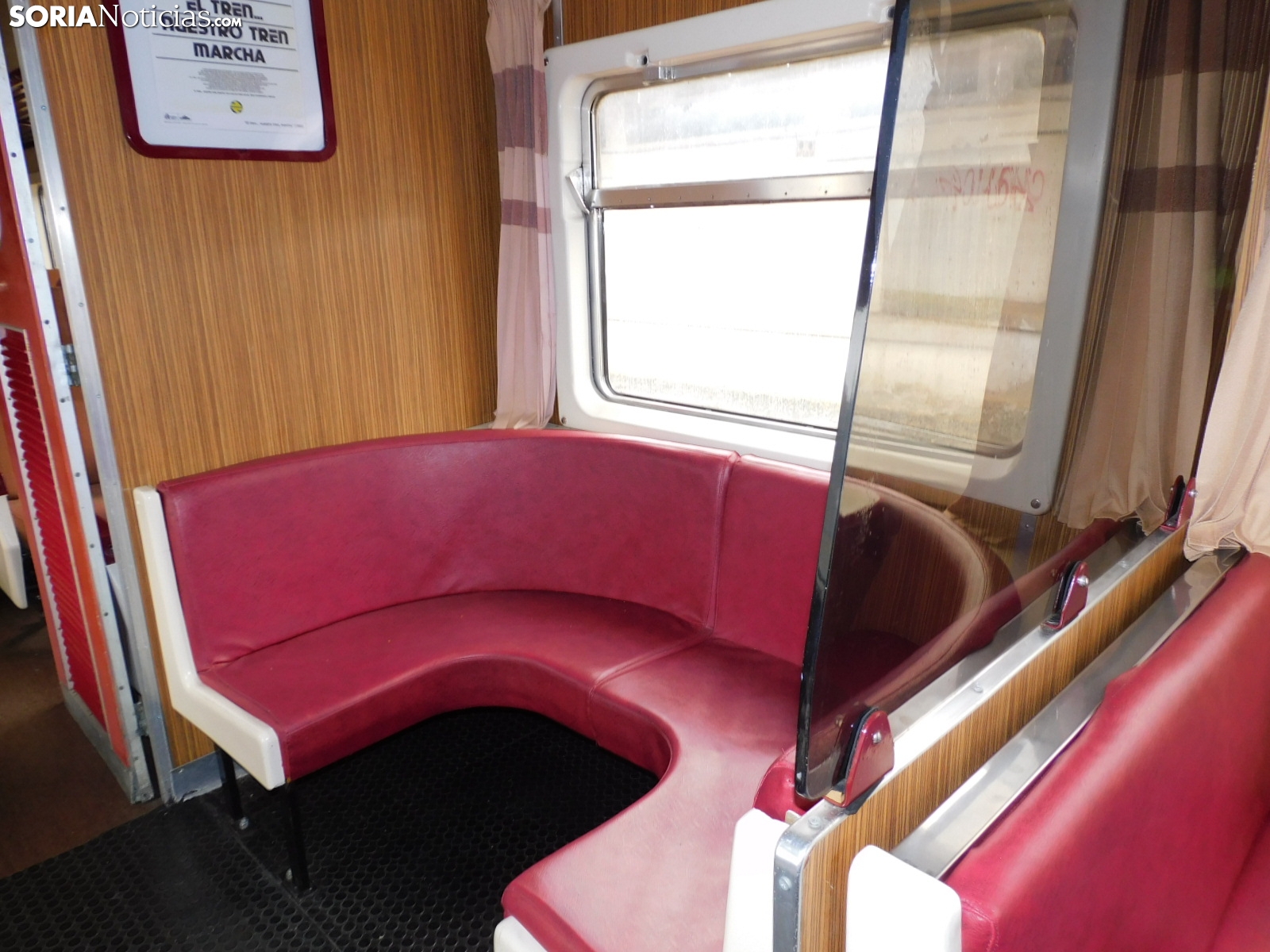 El Torrezno Exprés y el Tren Azul, procedentes de Zaragoza y Madrid, han llegado este mediodía a Soria con alrededor de 500 pasajeros. Estas locomotoras del siglo pasado han estado a lo largo de todo el día abiertas para que todos los curiosos pudieran conocerlas por dentro. Su interior es un auténtico museo que ha trasladado a todos los presentes a otra época. Cafetería, una exposición de correos o sus curiosos asientos y tapices han sido el principal foco de atención. Por su parte, los viajeros que han llegado en ellos han disfrutado de una visita a la ciudad y de su gastronomía. Precisamente, antes de llegar, los viajeros han degustado torreznos en el tren.