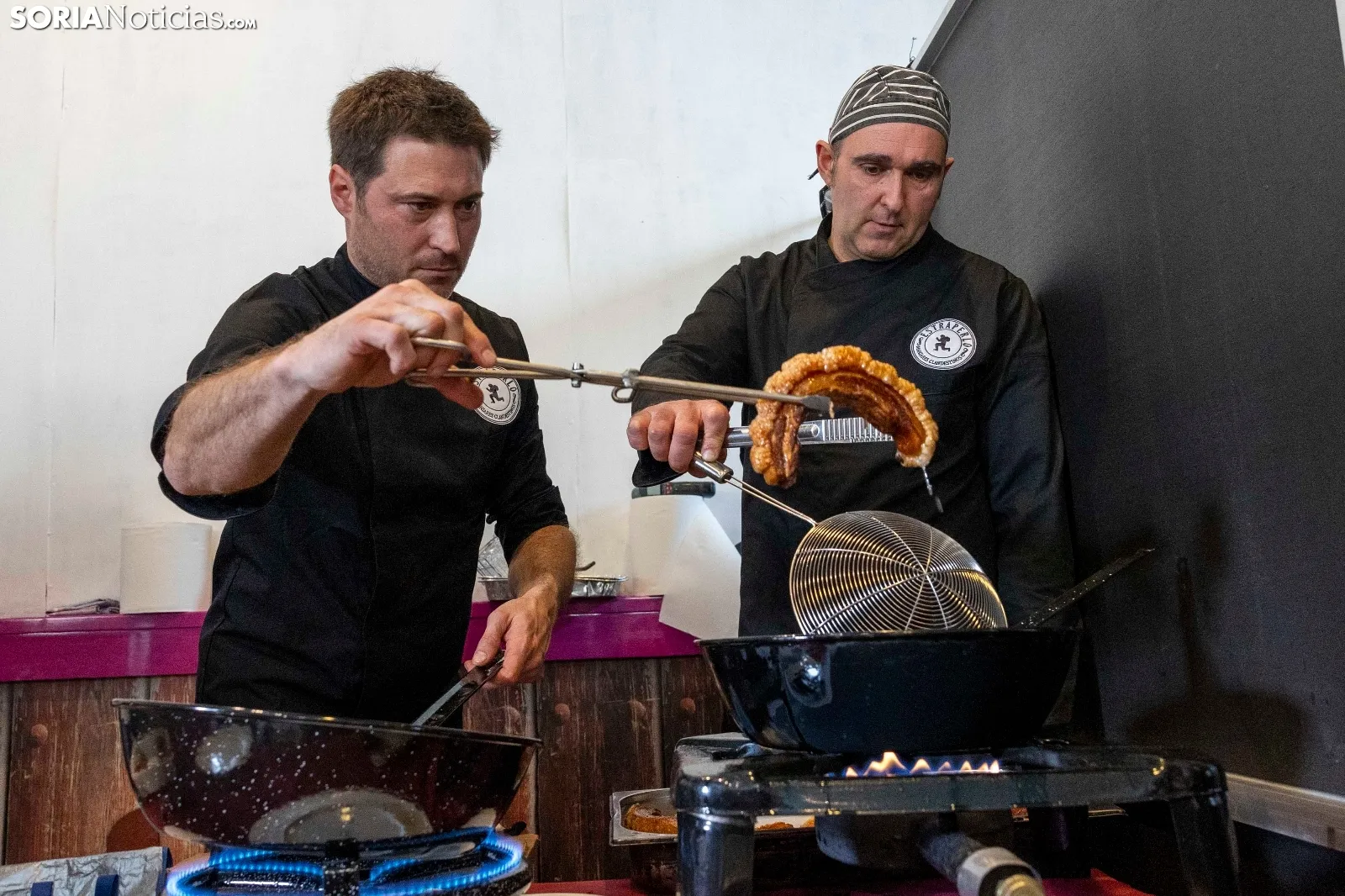 El hotel restaurante Virrey de El Burgo de Osma ha vuelto a acoger esta mañana la final del mejor torrezno del mundo. Centenares de personas se han desplazado hasta la localidad burgense para degustar las creaciones de los cocineros sorianos y nacionales. Al igual que ocurriera el año pasado, la distinción ha viajado hasta el Café Chicago de Zaragoza.