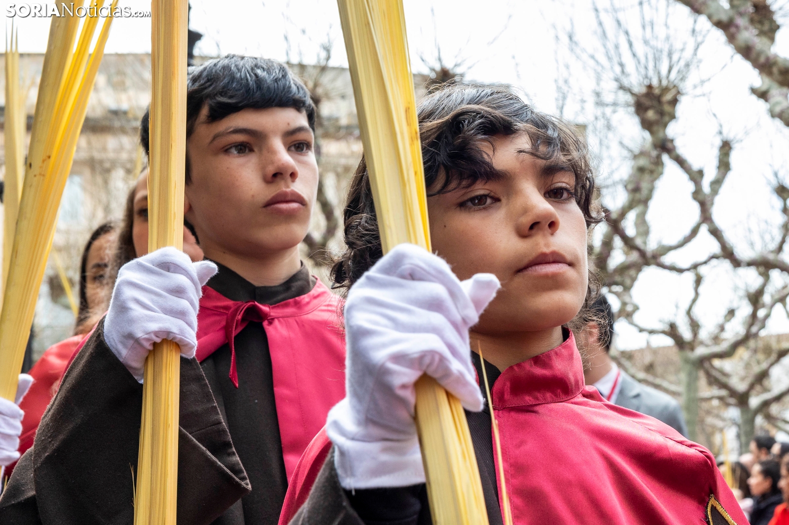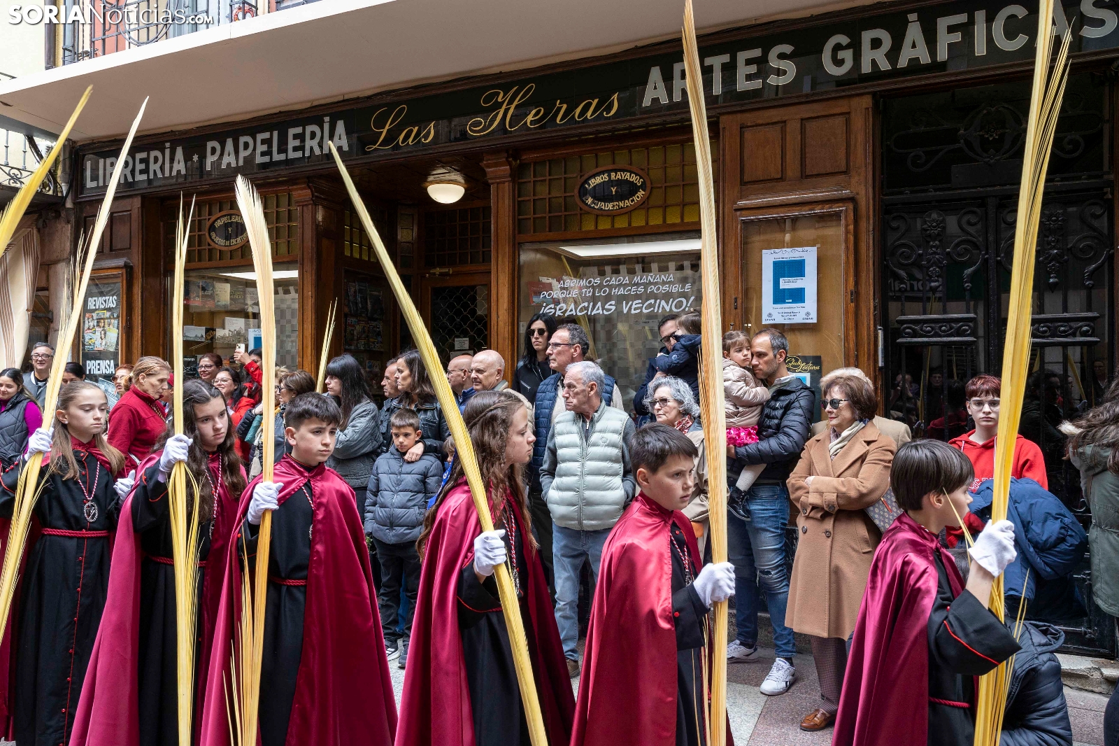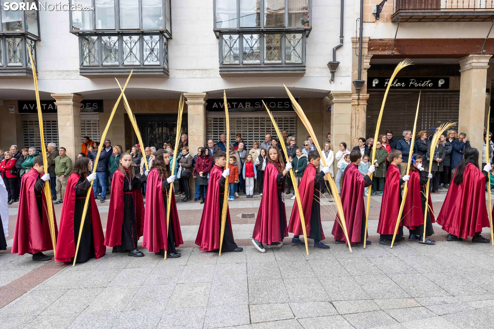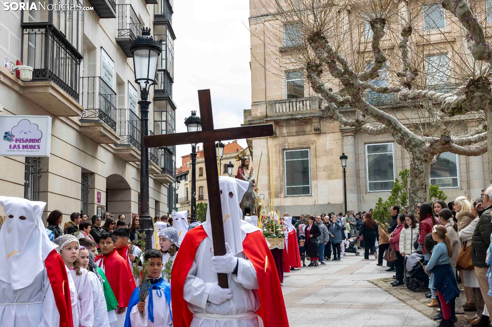 Tras mucho mirar al cielo, el tiempo finalmente ha permitido la celebración de la primera procesión de la Pasión de Cristo en la capital soriana, conocida popularmente como la Borriquilla. Esta procesión del Domingo de Ramos rememora la entrada triunfal de Jesús en Jerusalén y, en Soria, comenzó a celebrarse en 1960, destacando desde sus inicios la participación de los niños como protagonistas.