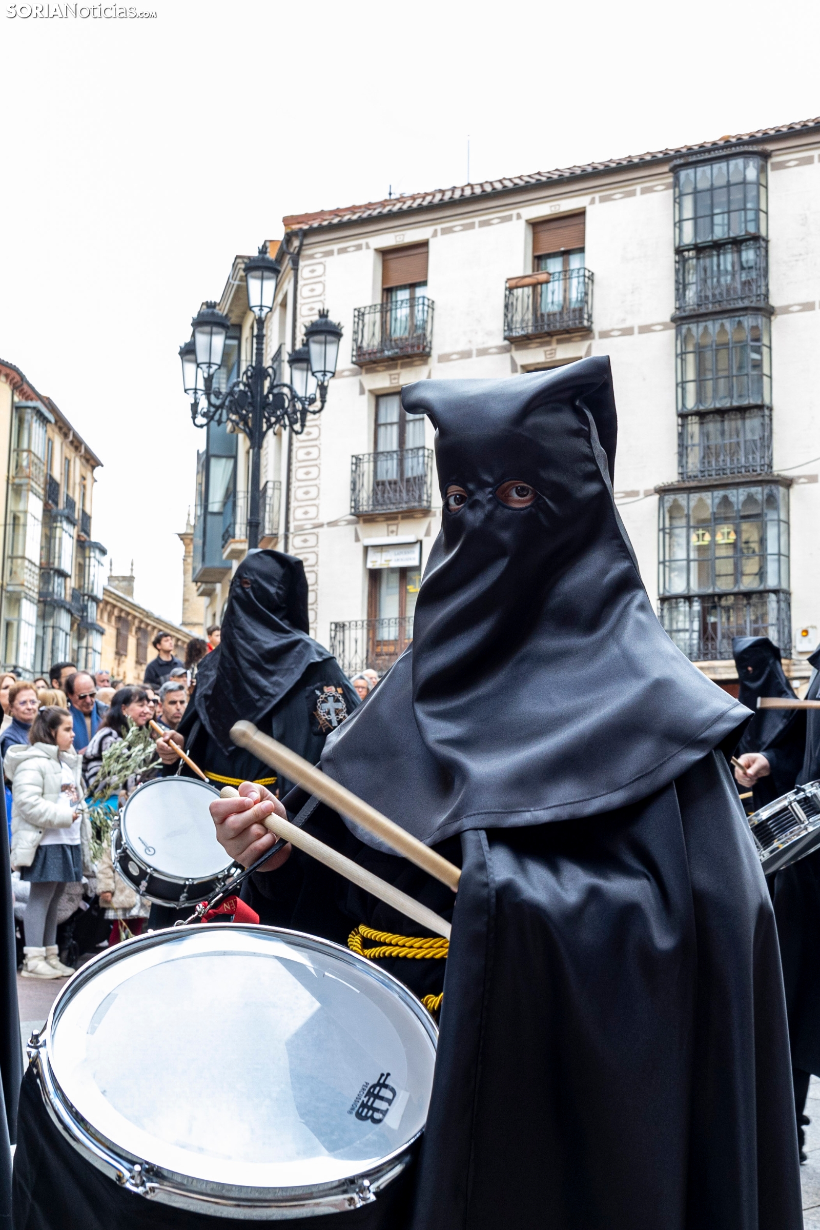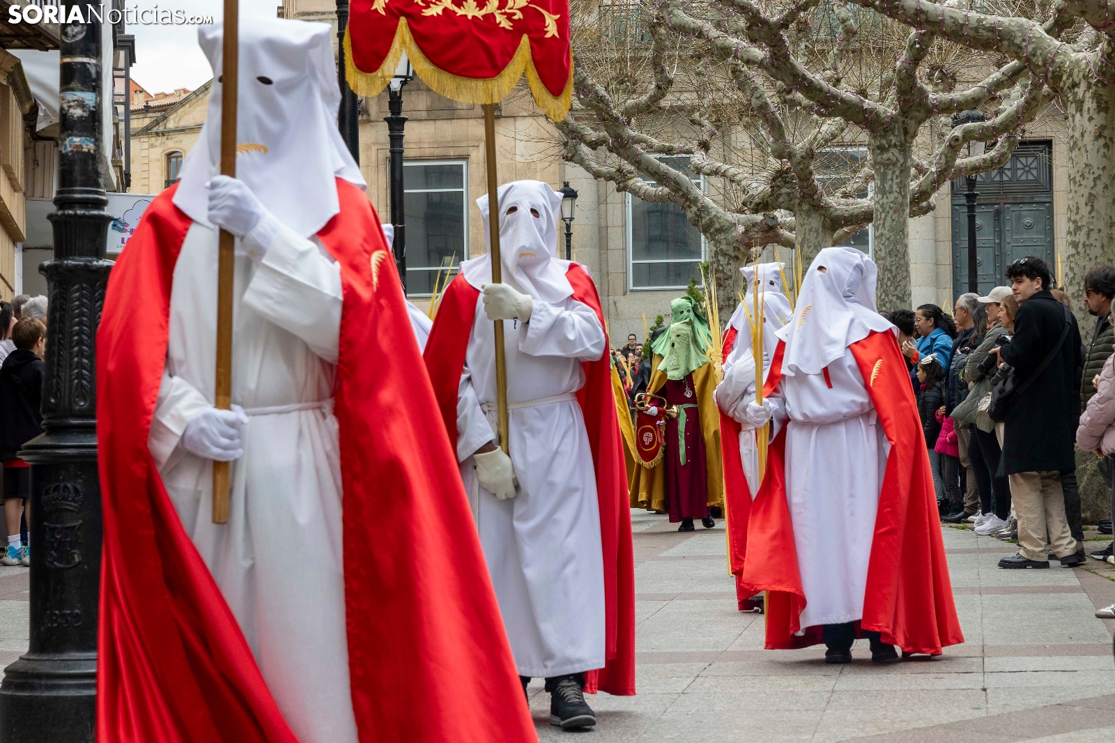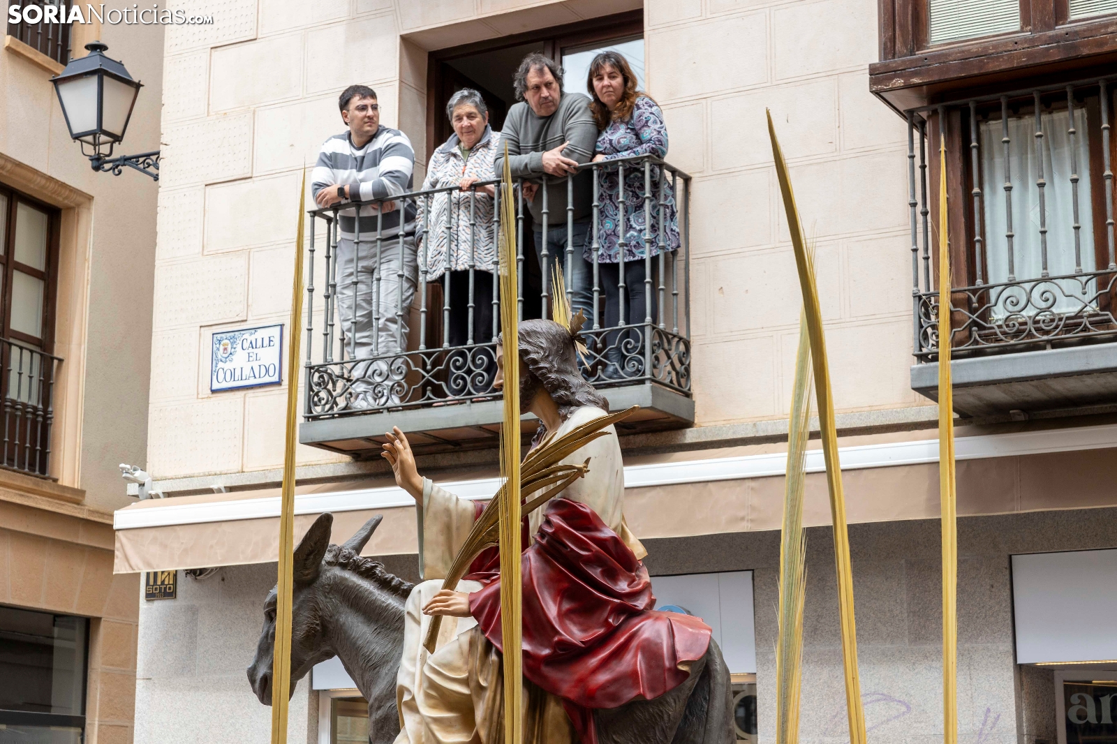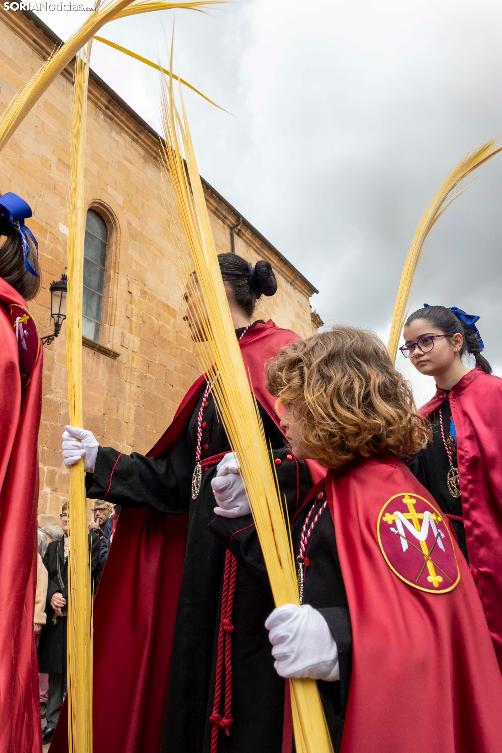 Tras mucho mirar al cielo, el tiempo finalmente ha permitido la celebración de la primera procesión de la Pasión de Cristo en la capital soriana, conocida popularmente como la Borriquilla. Esta procesión del Domingo de Ramos rememora la entrada triunfal de Jesús en Jerusalén y, en Soria, comenzó a celebrarse en 1960, destacando desde sus inicios la participación de los niños como protagonistas.