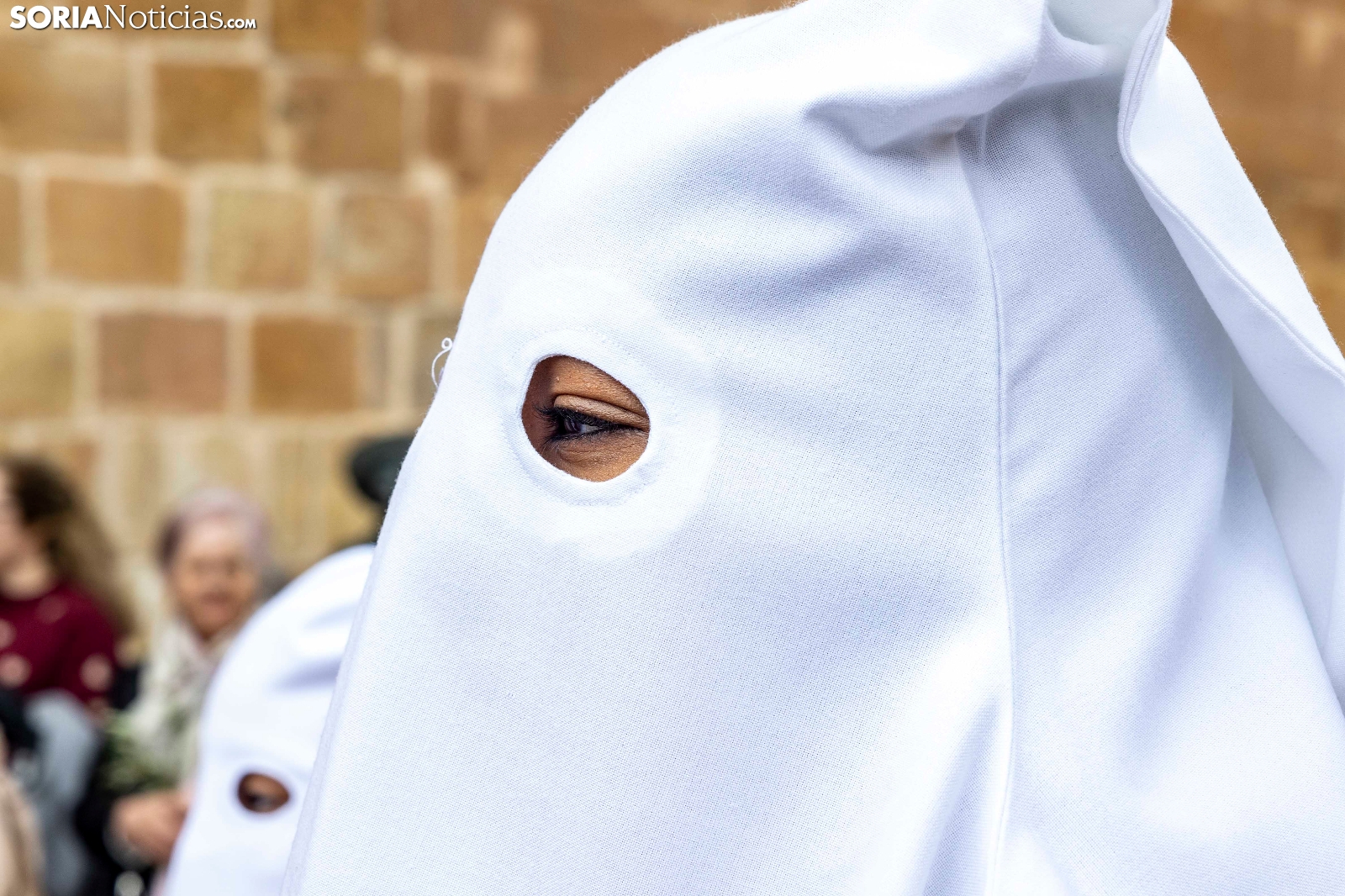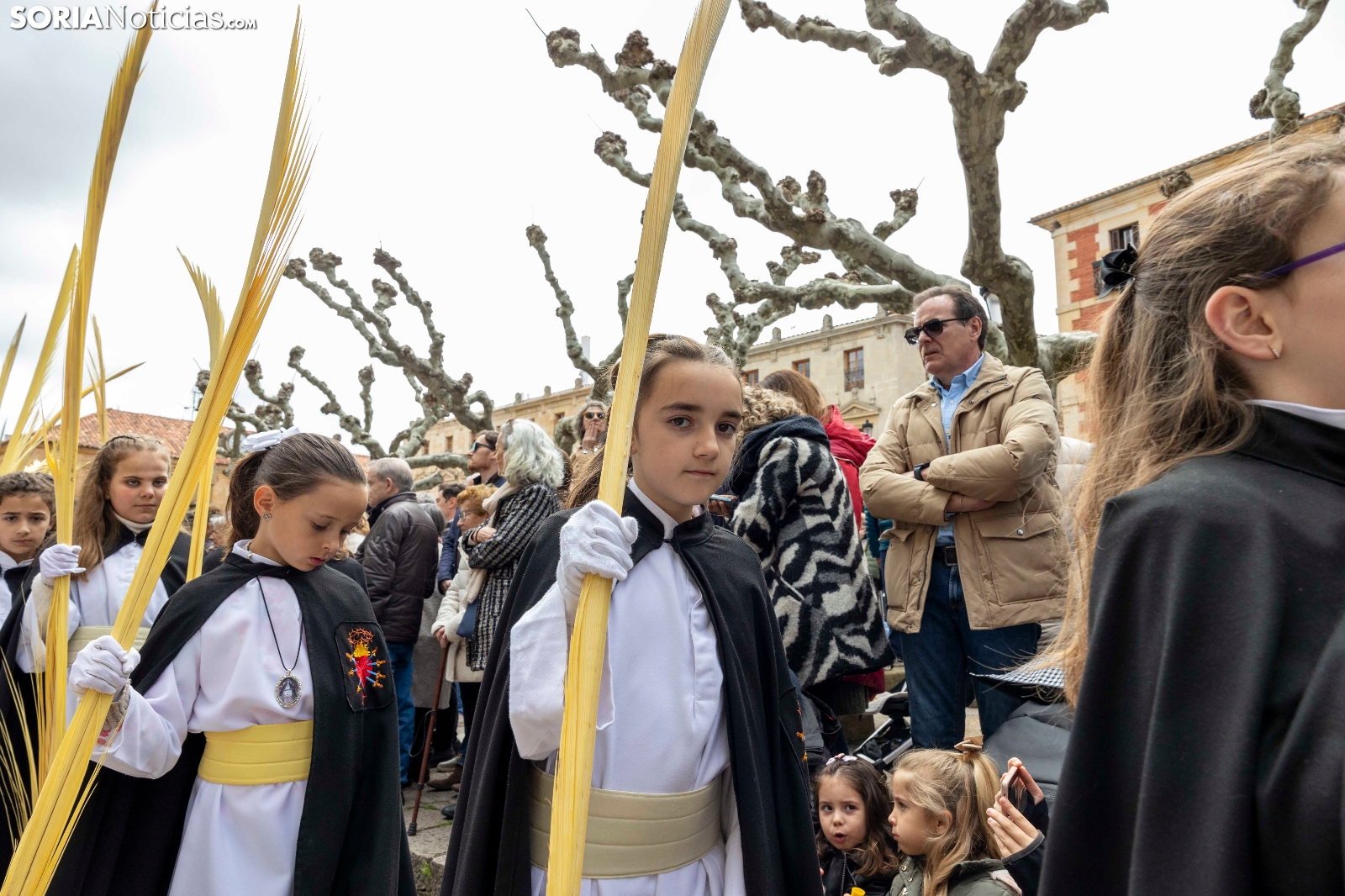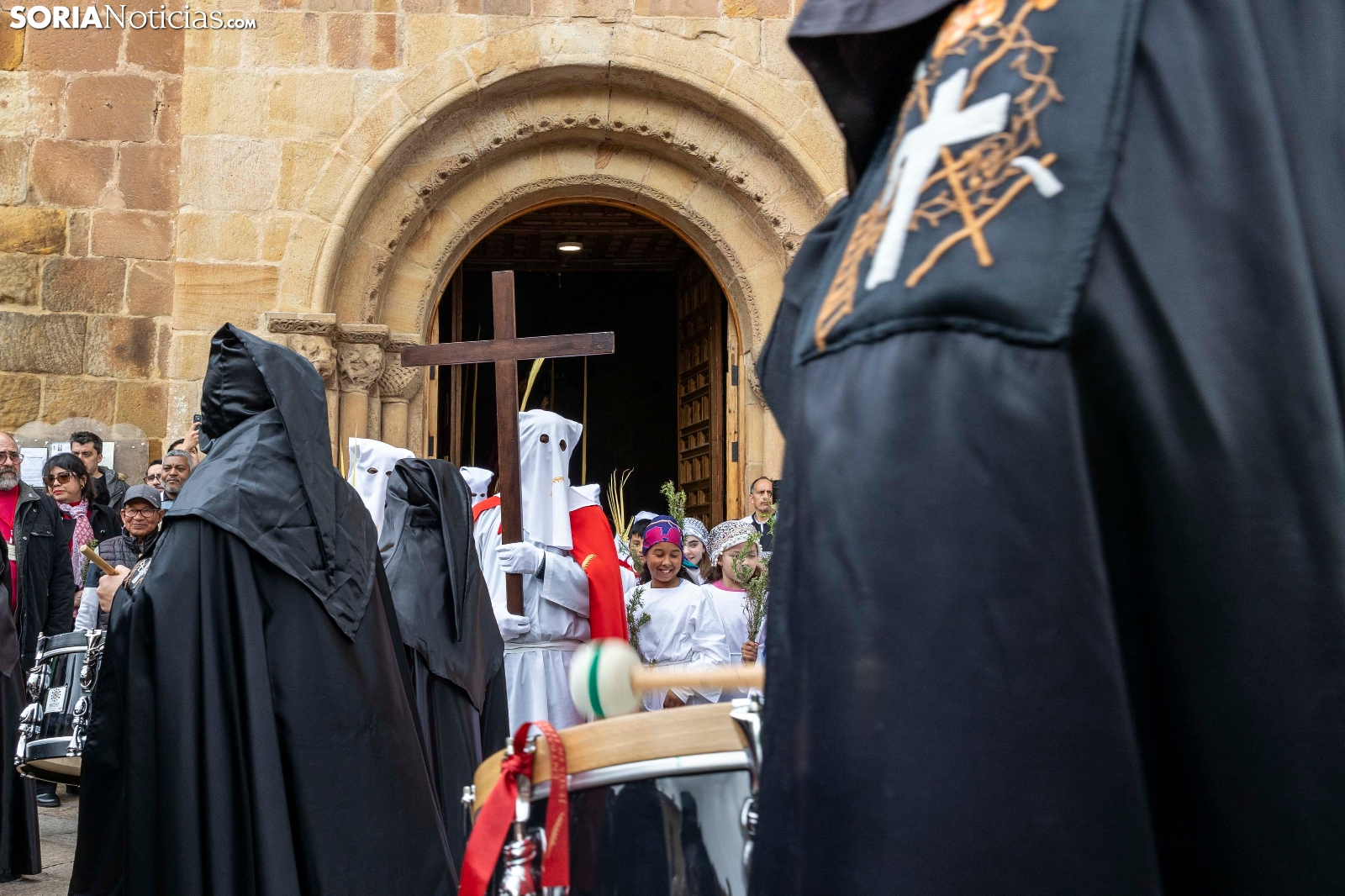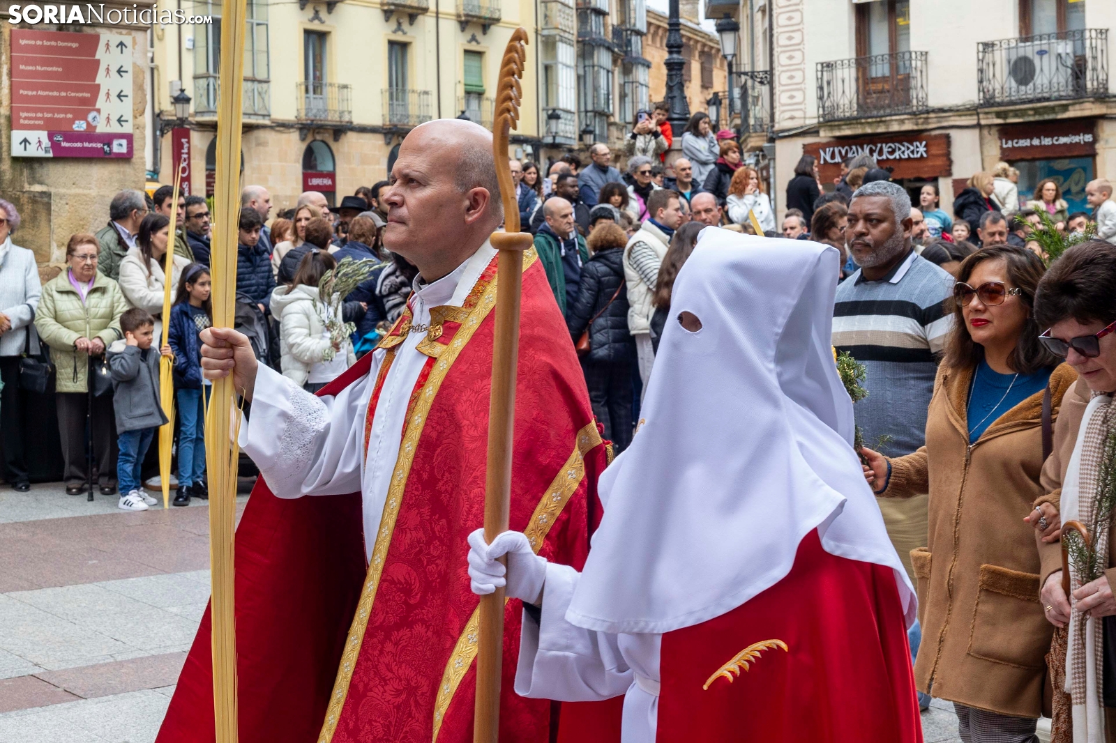 Tras mucho mirar al cielo, el tiempo finalmente ha permitido la celebración de la primera procesión de la Pasión de Cristo en la capital soriana, conocida popularmente como la Borriquilla. Esta procesión del Domingo de Ramos rememora la entrada triunfal de Jesús en Jerusalén y, en Soria, comenzó a celebrarse en 1960, destacando desde sus inicios la participación de los niños como protagonistas.