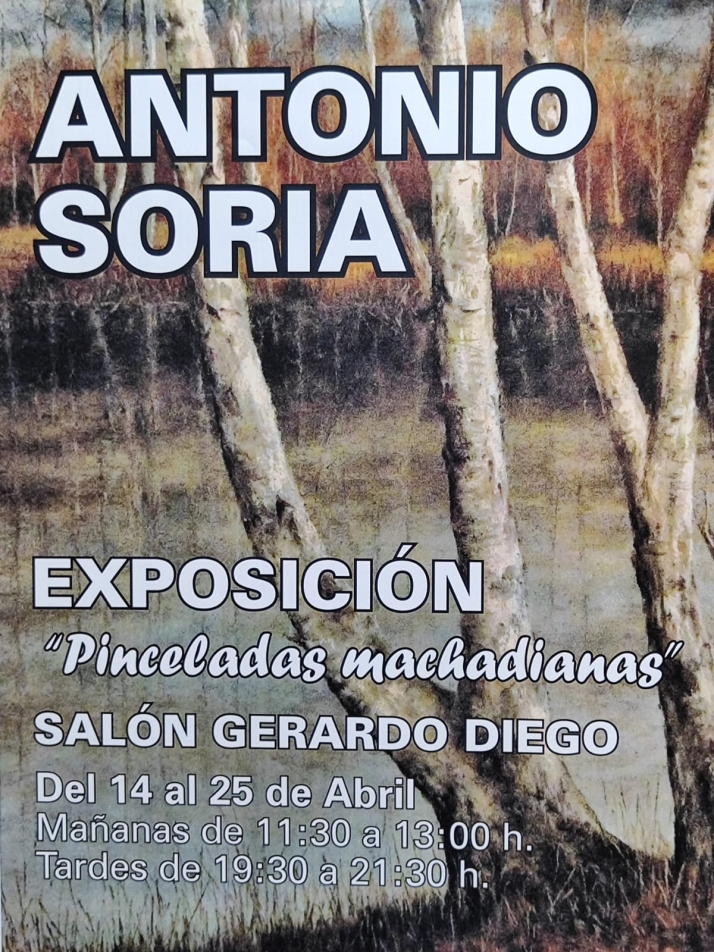 Entre hoy 14, y hasta el 25 de Abril el salón Gerardo Diego del Círculo Amistad Numancia acoge la exposición del pintor soriano Antonio Soria 'Pinceladas Machadianas'.