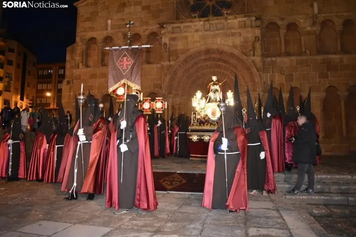 El Miércoles Santo ha amanecido brillante en Soria. Las nubes dejan espacio al astro rey, que aprovecha el momento para iluminar la capital. Eso sí, un fino manto de escarcha cubre coches y jardines, pues la noche ha sido fría, con temperaturas que han bajado de los cero grados.