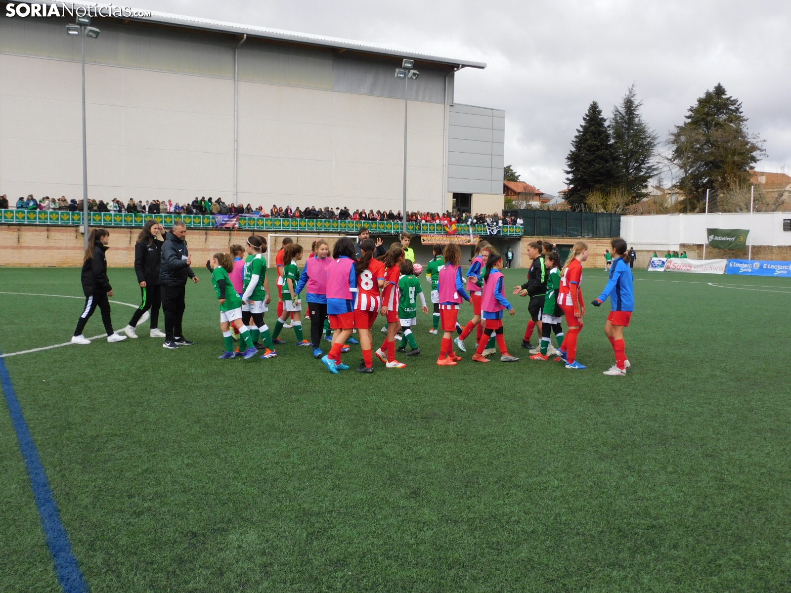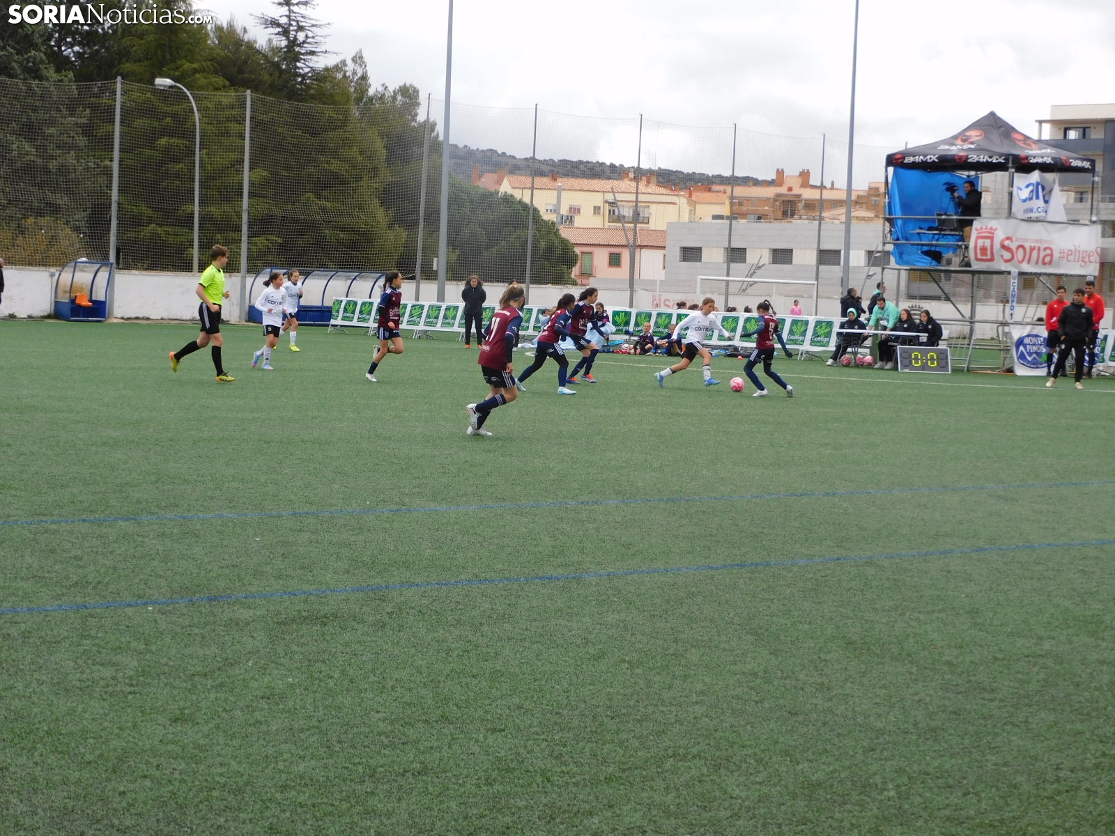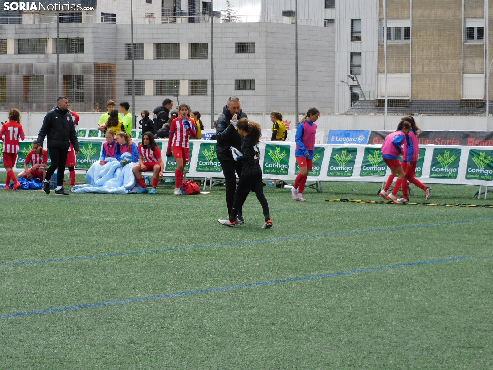 Desde esta mañana, los mejores equipos femeninos de España en categoría alevín participan en el III Torneo Nacional Ciudad de Soria, organizado por el C.D. San José. Canteras como la del Atlético de Madrid o la del Rayo Vallecano se han dado cita en una competición que no para de crecer con el paso de los años. Las gradas también disfrutan con esta jornada. Miles de personas no paran de animar en el campo del San Andrés.