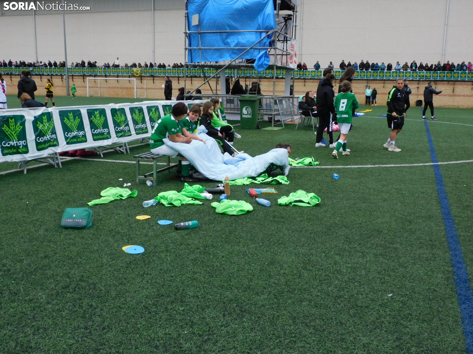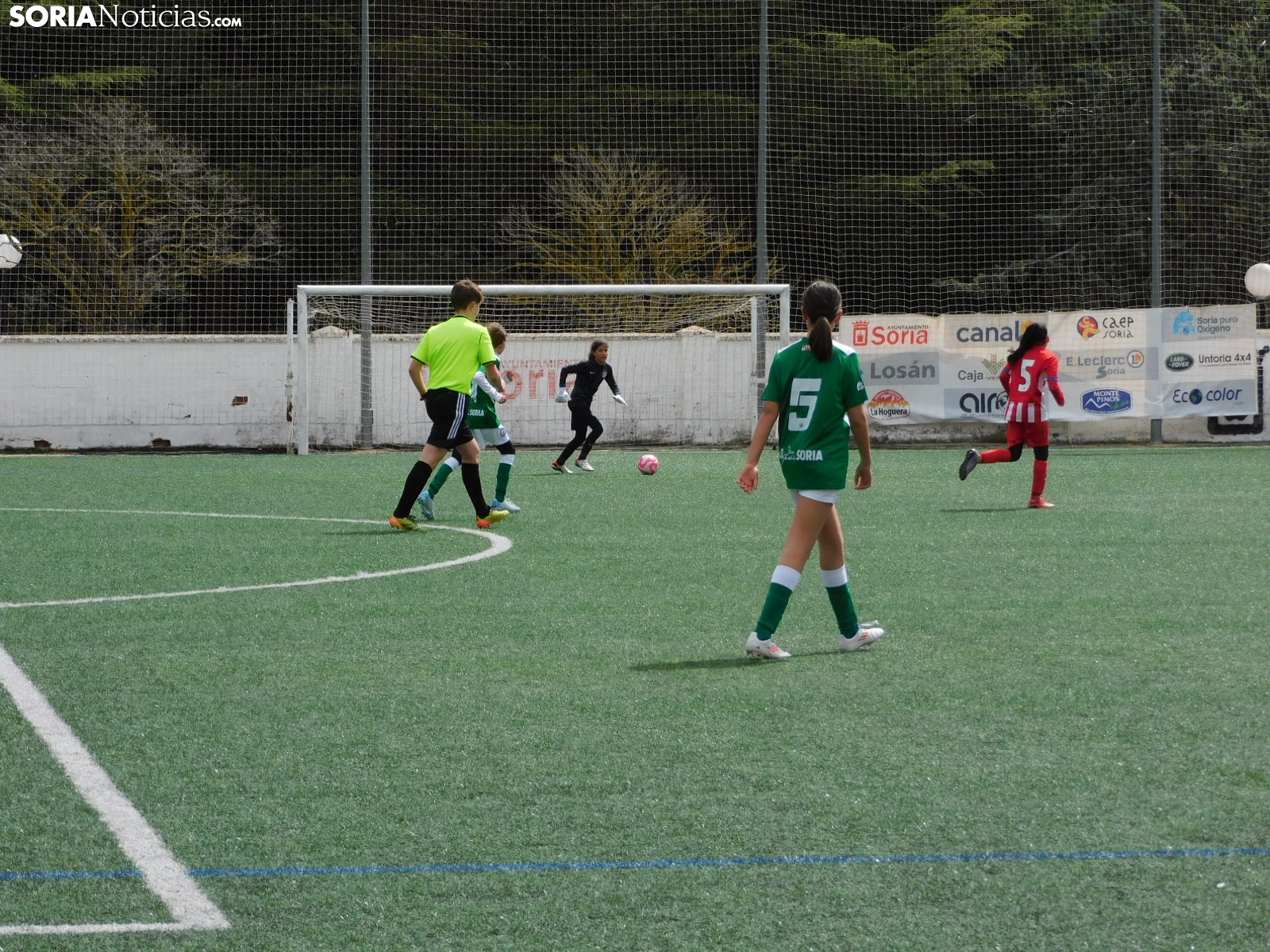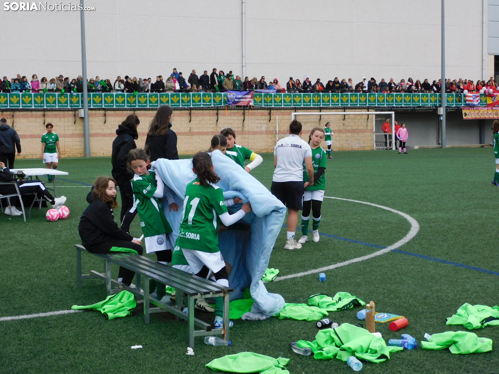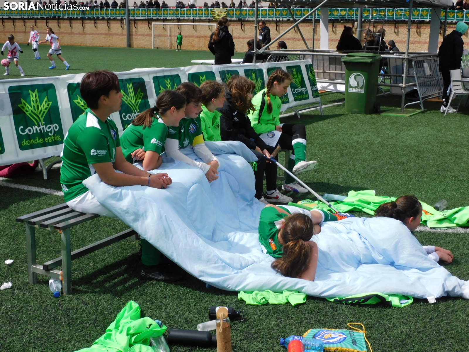 Desde esta mañana, los mejores equipos femeninos de España en categoría alevín participan en el III Torneo Nacional Ciudad de Soria, organizado por el C.D. San José. Canteras como la del Atlético de Madrid o la del Rayo Vallecano se han dado cita en una competición que no para de crecer con el paso de los años. Las gradas también disfrutan con esta jornada. Miles de personas no paran de animar en el campo del San Andrés.