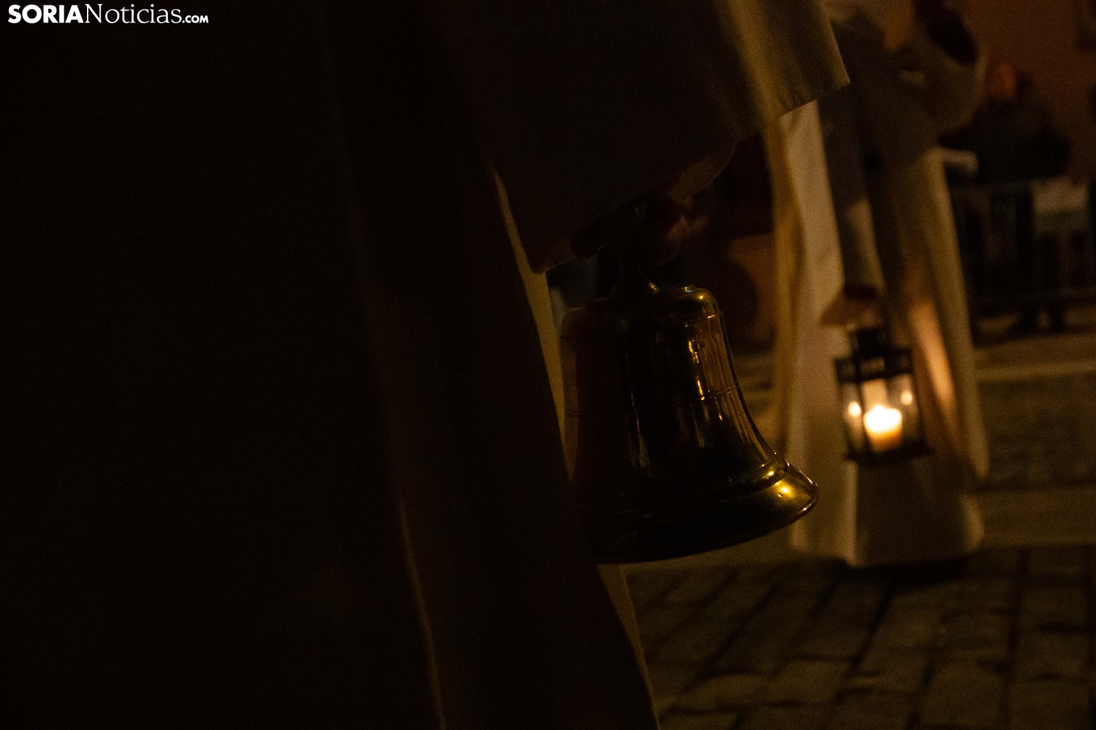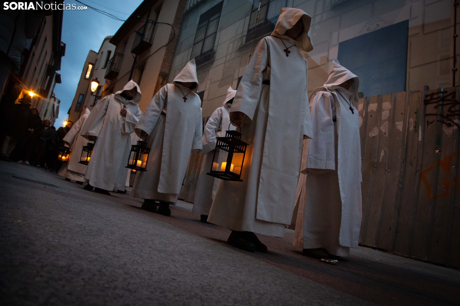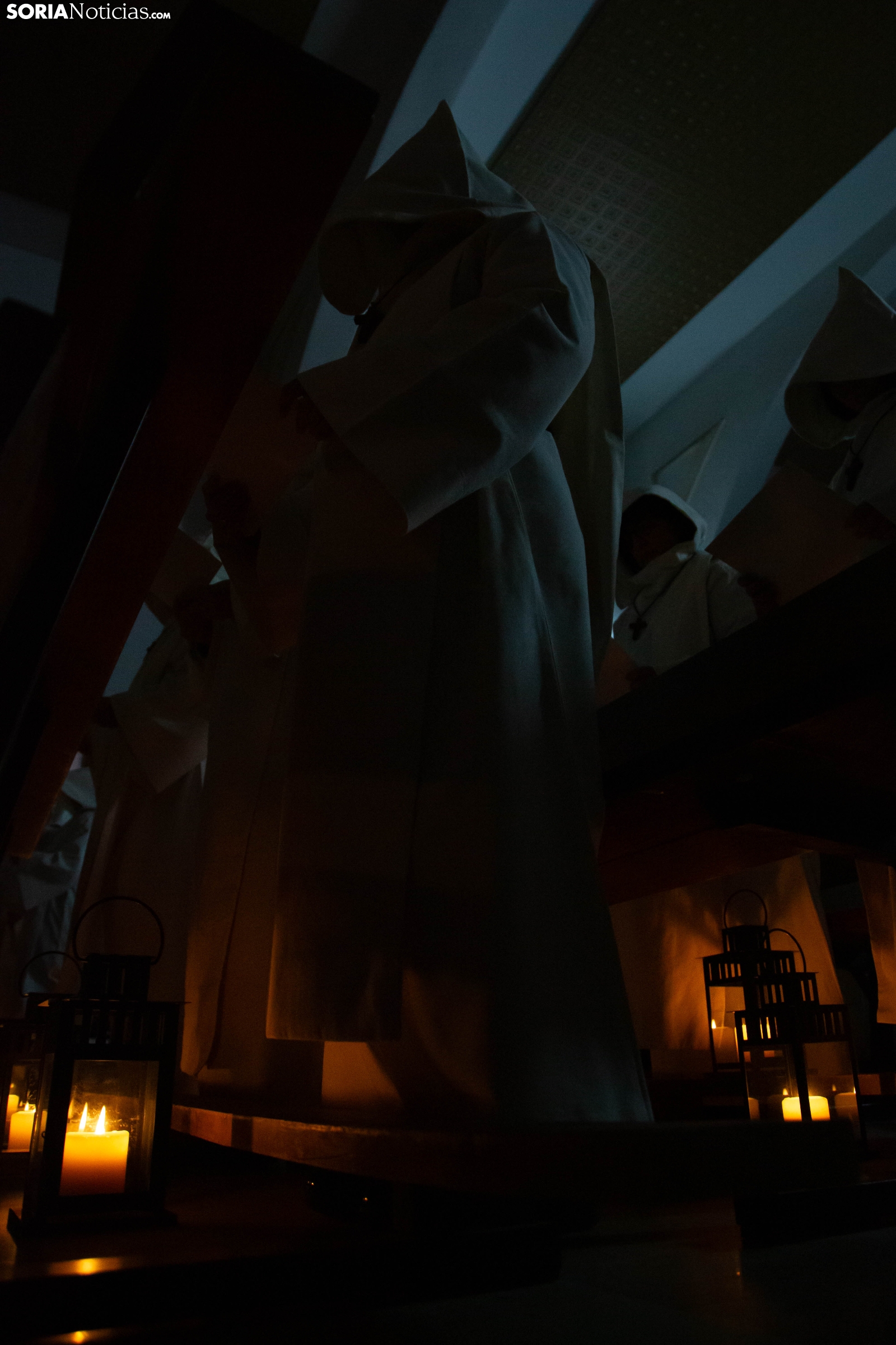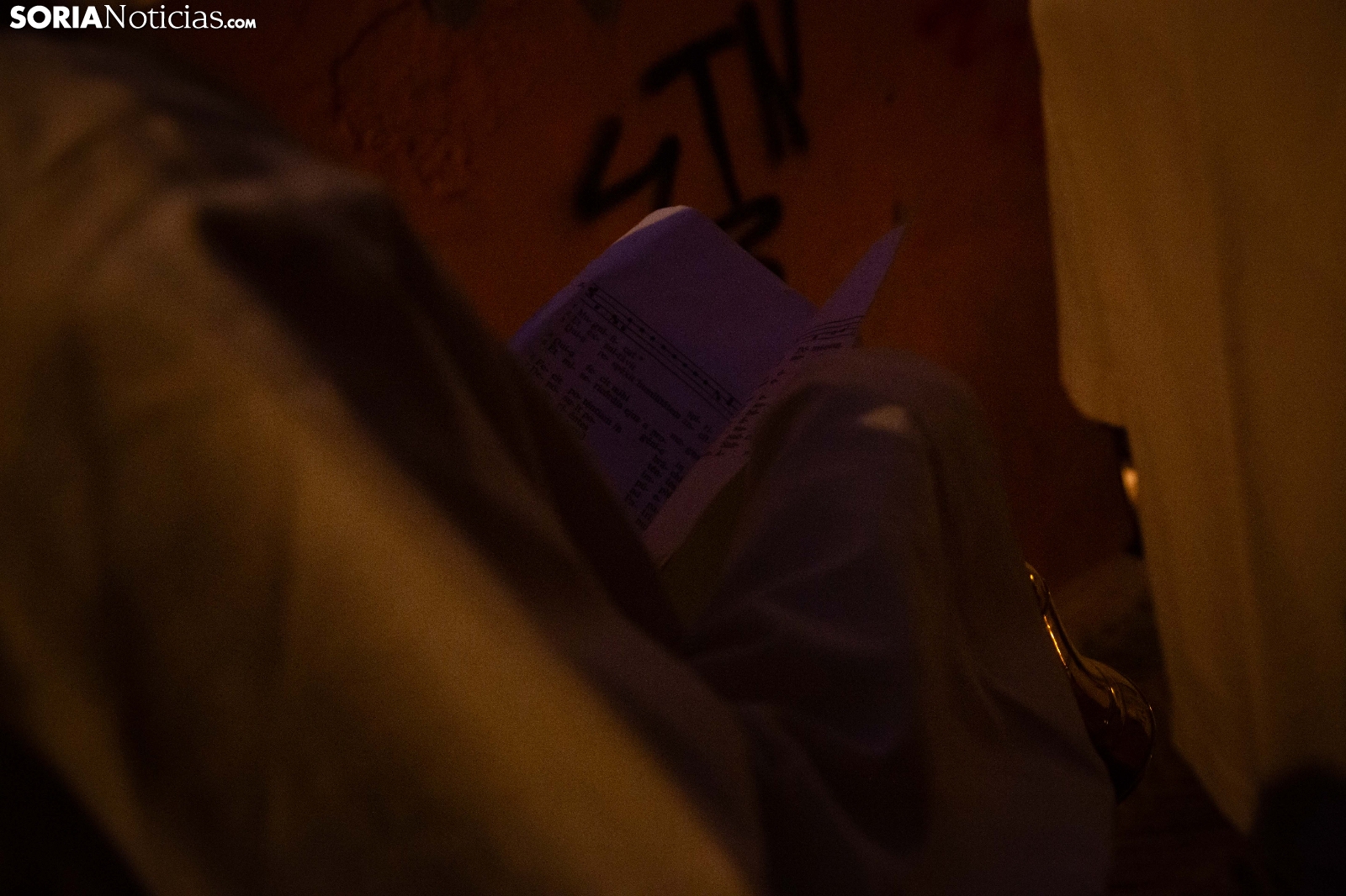 Soria ha podido disfrutar de las Vísperas de Luz desde las 20:30h. Aunque la lluvia ha hecho presencia en la capital soriana a primera hora de la tarde, el tiempo ha respetado este acto que ha salido de la antigua iglesia de los Padres Franciscanos. Desde allí, han recorrido las calles del casco viejo de la ciudad, entonando el canto del Magnificat en las ruinas románicas de la iglesia de San Nicolás. Finalmente, han terminado en la Concatedral de San Pedro.