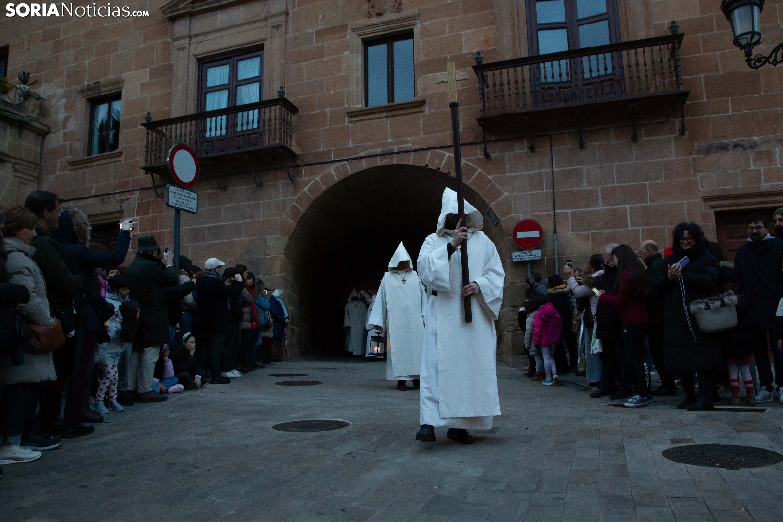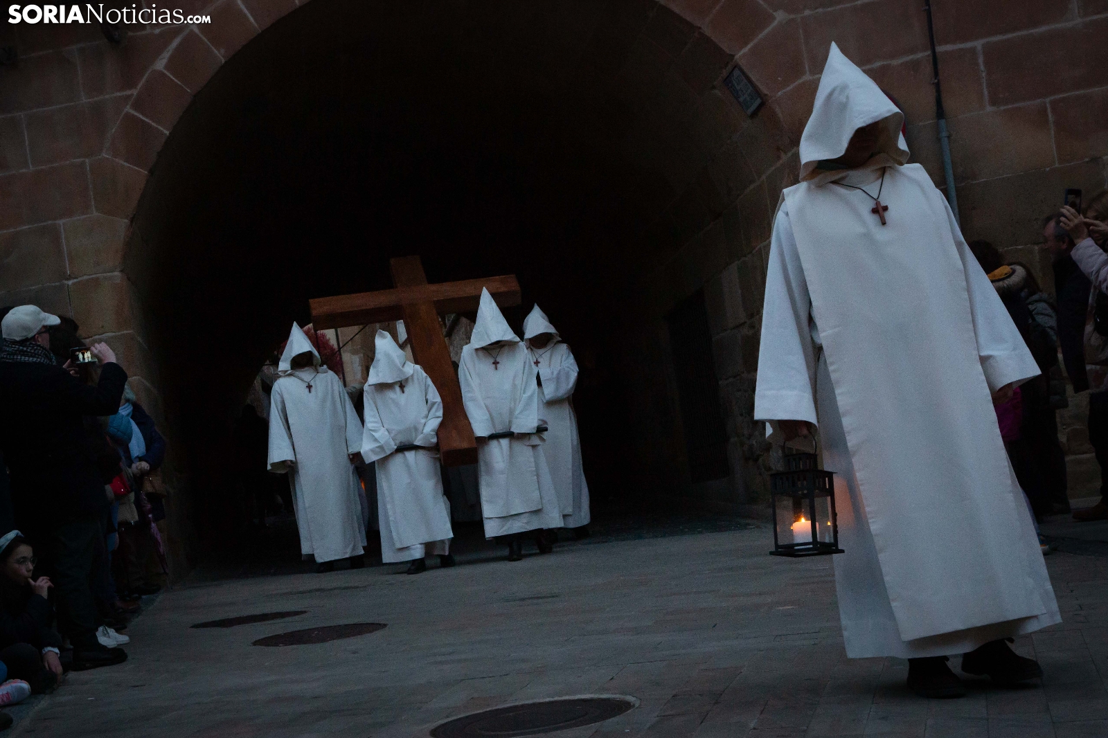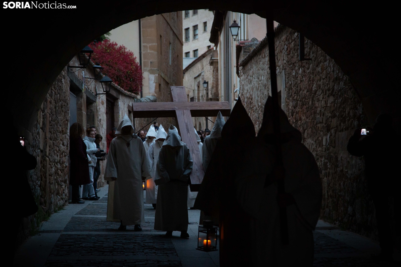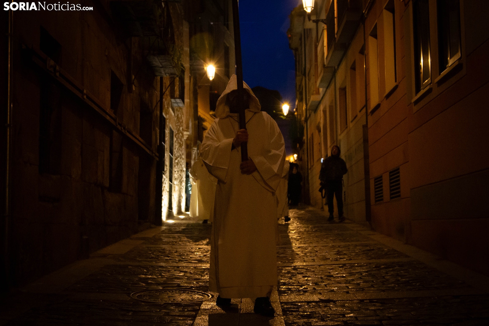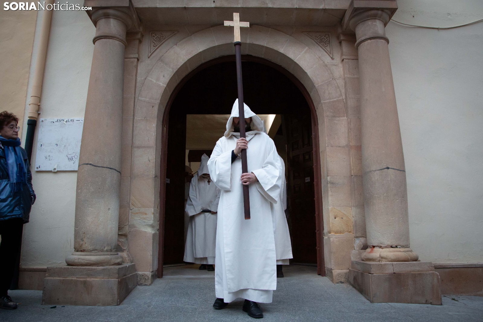 Soria ha podido disfrutar de las Vísperas de Luz desde las 20:30h. Aunque la lluvia ha hecho presencia en la capital soriana a primera hora de la tarde, el tiempo ha respetado este acto que ha salido de la antigua iglesia de los Padres Franciscanos. Desde allí, han recorrido las calles del casco viejo de la ciudad, entonando el canto del Magnificat en las ruinas románicas de la iglesia de San Nicolás. Finalmente, han terminado en la Concatedral de San Pedro.