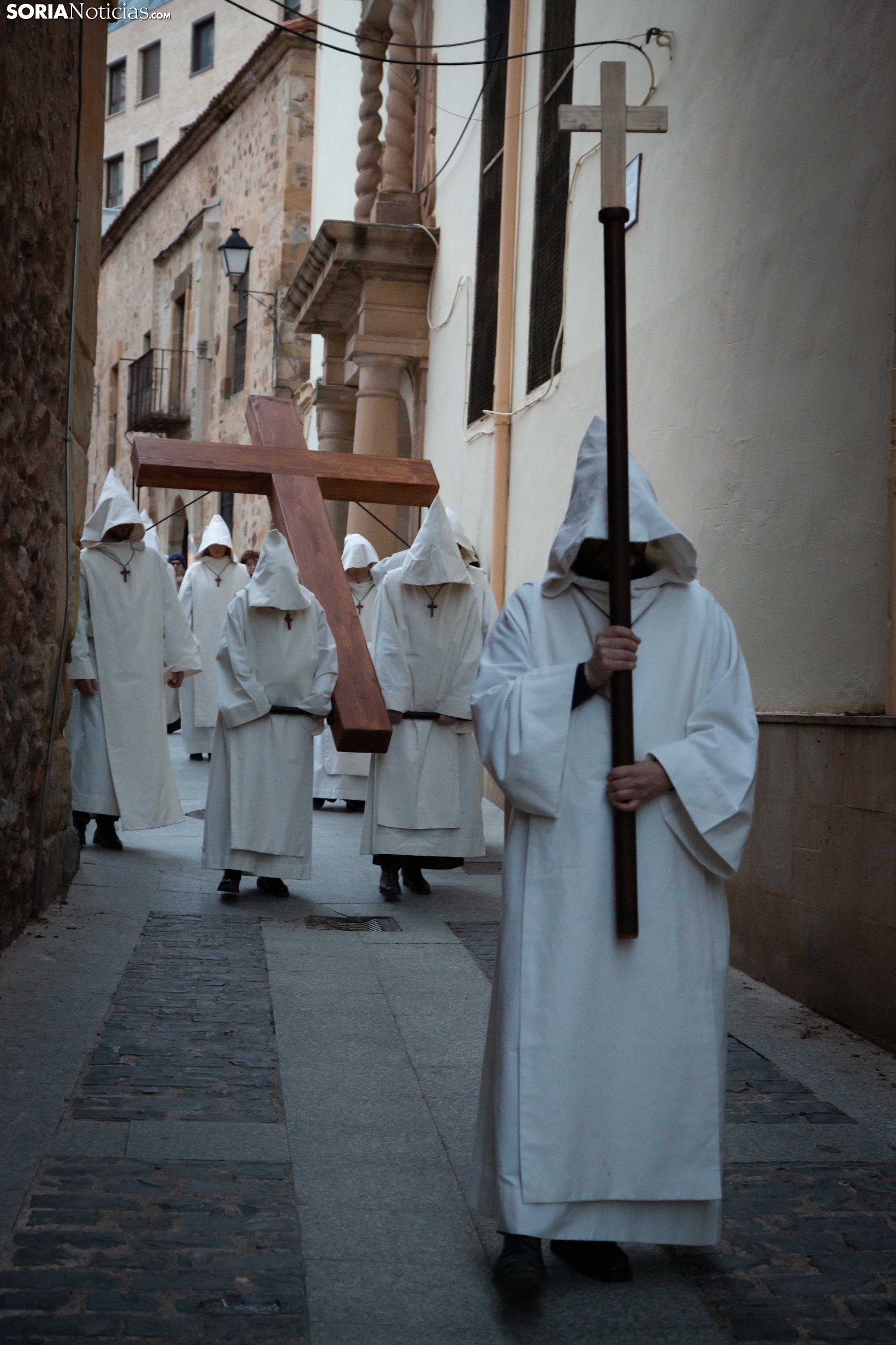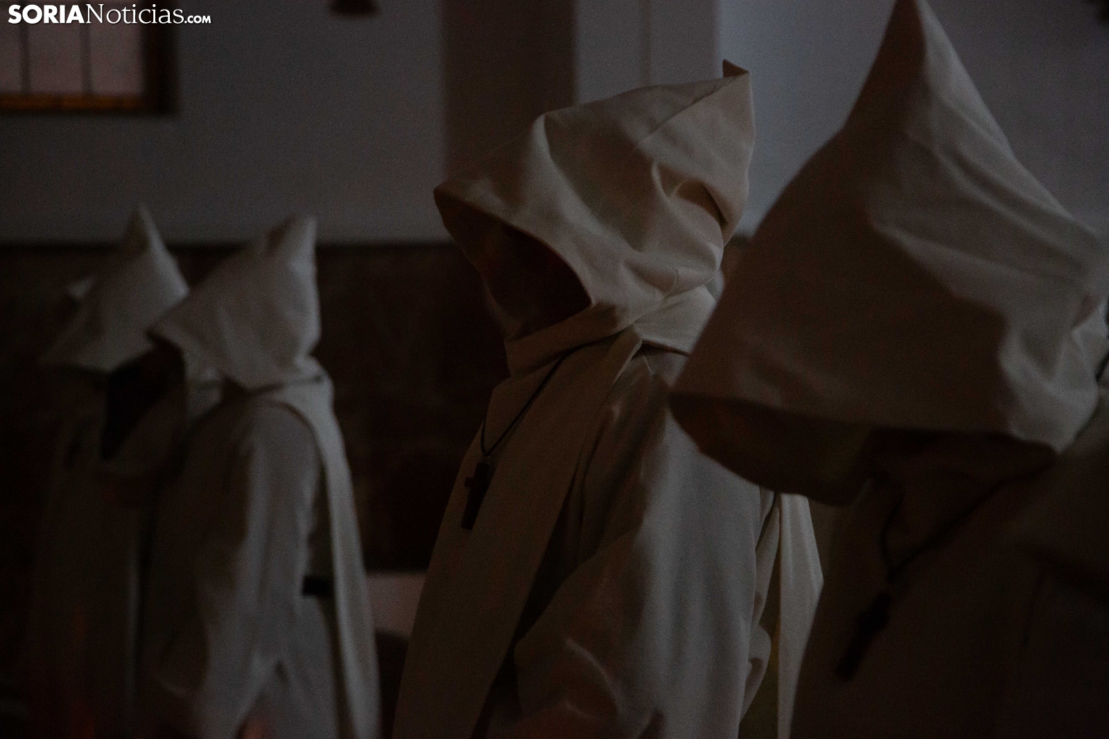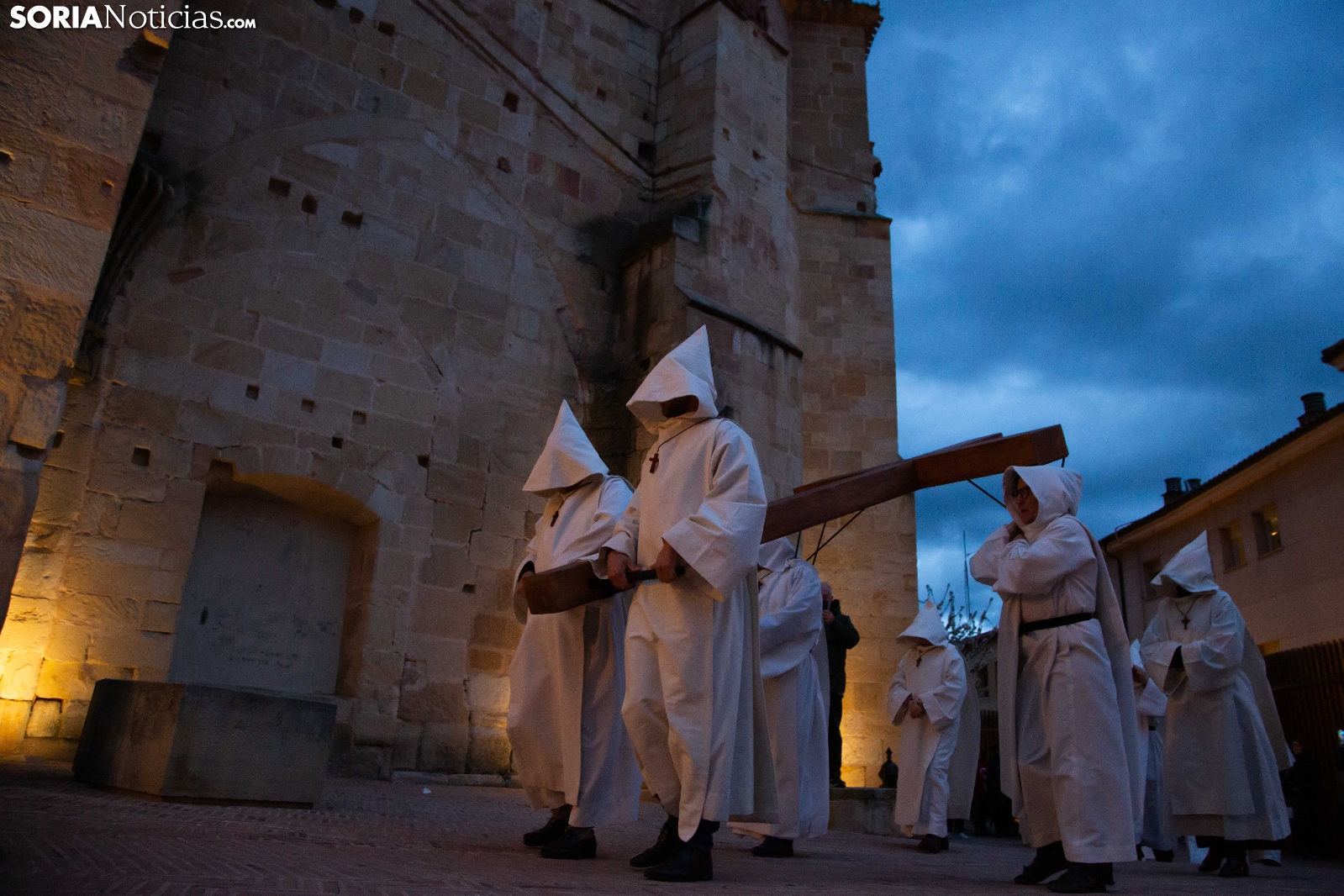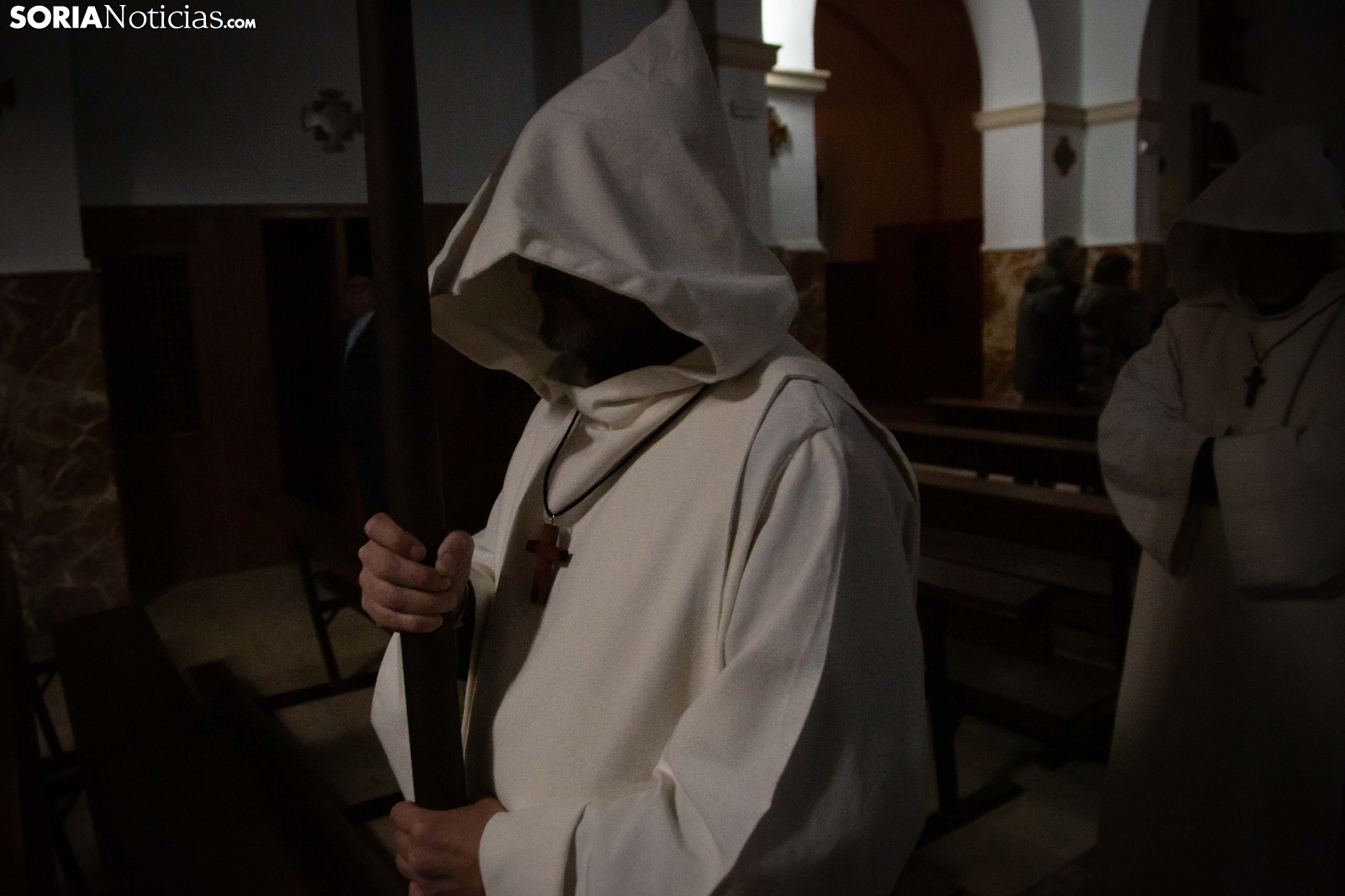 Soria ha podido disfrutar de las Vísperas de Luz desde las 20:30h. Aunque la lluvia ha hecho presencia en la capital soriana a primera hora de la tarde, el tiempo ha respetado este acto que ha salido de la antigua iglesia de los Padres Franciscanos. Desde allí, han recorrido las calles del casco viejo de la ciudad, entonando el canto del Magnificat en las ruinas románicas de la iglesia de San Nicolás. Finalmente, han terminado en la Concatedral de San Pedro.