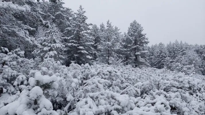 El estado de esa zona no ha variado en las últimas horas. La nieve ha seguido siendo la protagonista, dejando completamente blancos los pinos de Duruelo de la Sierra a una altura de 1650 metros. Agustín Sandoval ha inmortalizado estos momentos con unas imágenes en los que se puede apreciar los árboles blancos. Una postal típica de las Navidades que este año los sorianos pueden disfrutarla en Semana Santa.