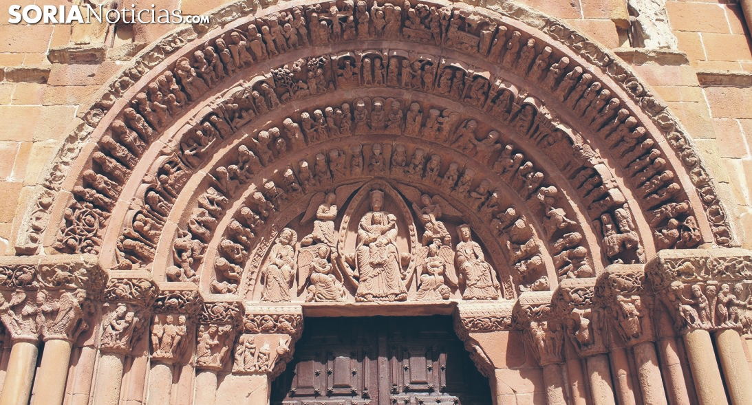 La fachada se compone de cuatro arquivoltas que descansan sobre cinco columnas a cada lado, creando un conjunto de gran armonía y belleza. Además, entre sus peculiaridades destaca la influencia del románico francés en su pórtico, lo que añade un valor adicional a esta joya arquitectónica que representa una de las obras más importantes del románico soriano.
