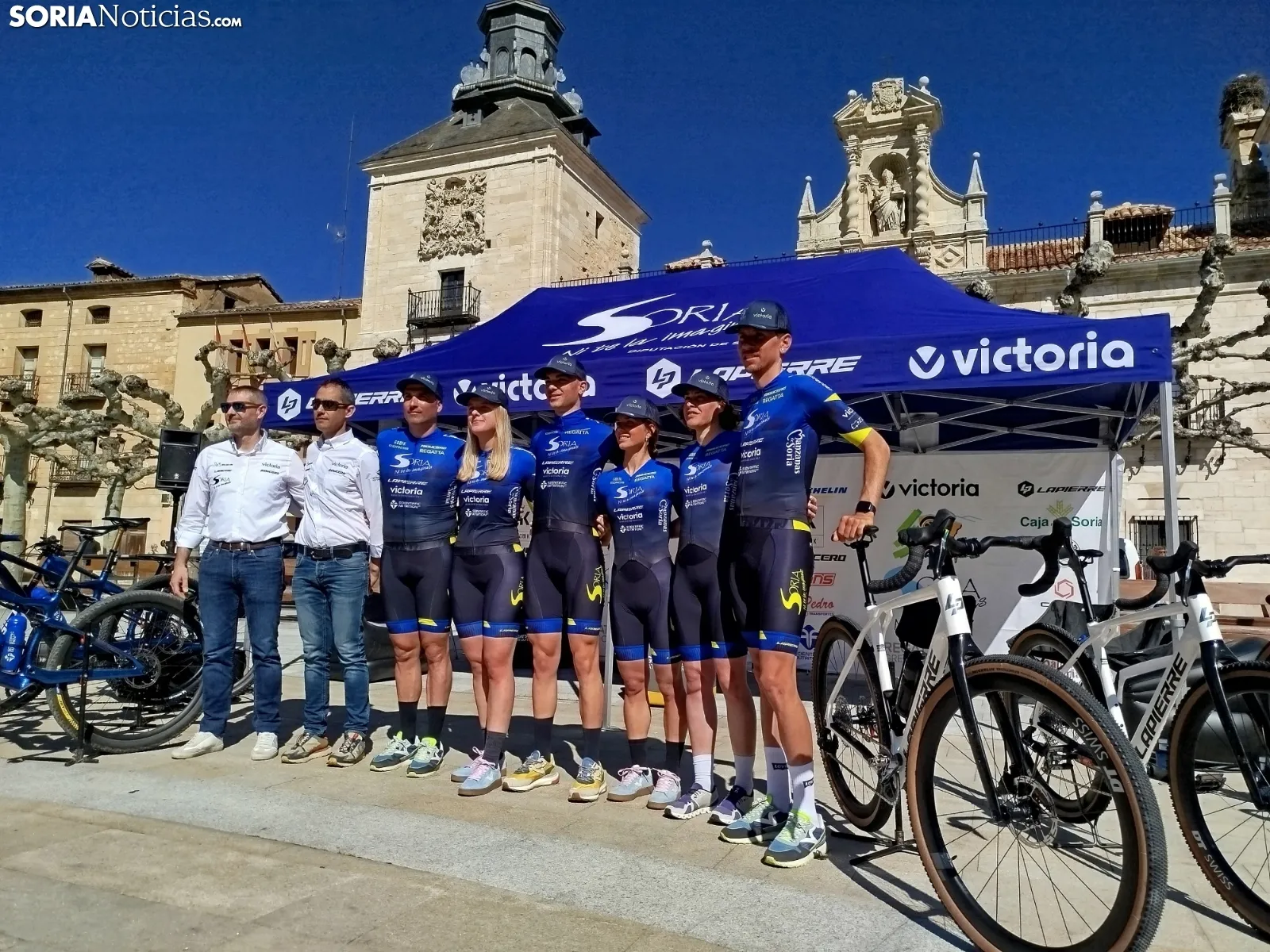 El equipo ciclista 'Soria ni te la imaginas' ha presentado su sexta temporada en El Burgo de Osma, consolidándose como un proyecto deportivo que trasciende las fronteras provinciales y que este año refuerza su apuesta por el ciclismo femenino. Con la plaza Mayor burgense como escenario, el acto ha reunido a patrocinadores, corredores y medios de comunicación para dar a conocer las novedades de una escuadra que ya compite a nivel internacional.