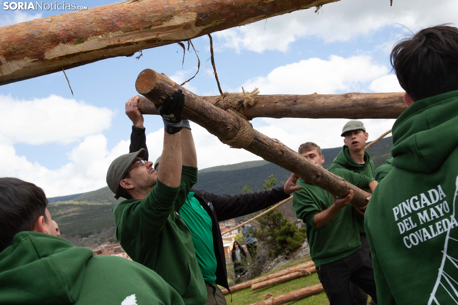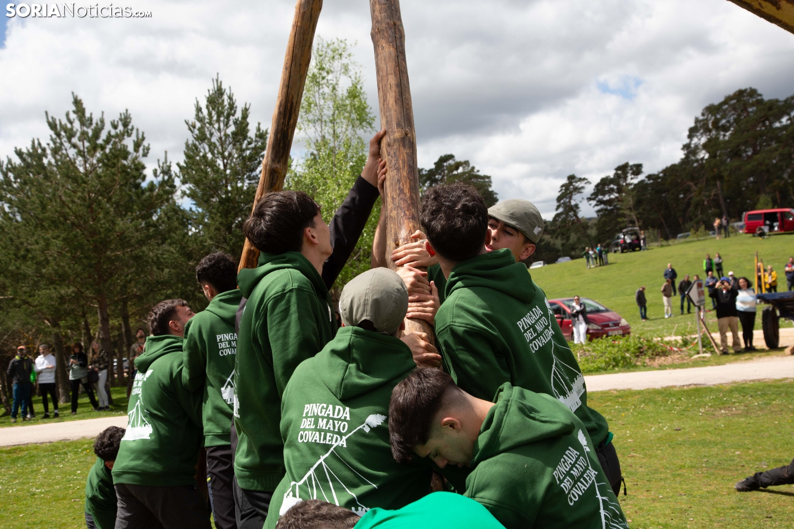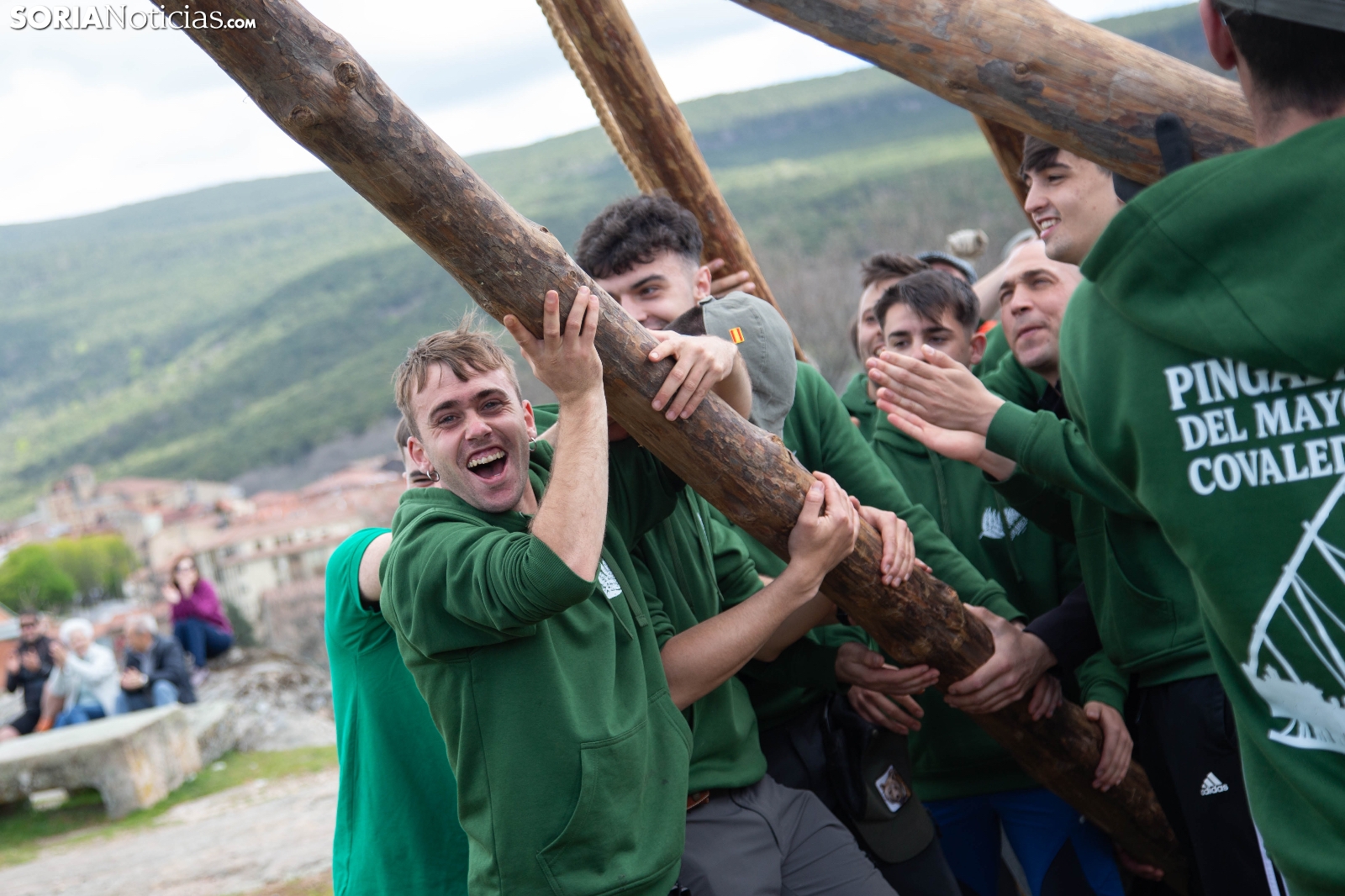 La tradición de la Pingada del Mayo ha vuelto a reunir a los vecinos de Covaleda en una jornada festiva llena de entusiasmo popular. El paraje 'El Cubo' ha sido escenario del momento más esperado cuando, al mediodía, decenas de mozos del pueblo han unido fuerzas para levantar el imponente pino que presidirá el municipio durante todo el mes de mayo. Entre gritos de ánimo y bajo la atenta mirada de los vecinos, los jóvenes han conseguido con éxito la verticalidad del árbol. Como es habitual en esta localidad pinariega, donde los bosques constituyen su esencia, el ejemplar elegido destaca por su gran porte, requiriendo un esfuerzo sincronizado y preciso de todos los participantes. Tras varios minutos de tensión y trabajo coordinado, el mayo ha quedado finalmente erguido, provocando el aplauso unánime de todos los presentes. La jornada, muy festiva como siempre el primer sábado de mayo, cuenta con programa amplio de actividades de diversión con música de charanga, tardeo en El Lomo y comida popular a base de migas pastoriles. Por la tarde, recorrido de charanga por los bares hasta entrada la noche. Tradición que une naturaleza y los antiguos ritos de fertilidad, viva gracias al entusiasmo de los jóvenes y la implicación de toda la comunidad covaledense. Una vez finalizado el mes, el mayo será vendido como leña, completando así un ciclo que año tras año renueva el compromiso del pueblo con sus raíces y tradiciones.