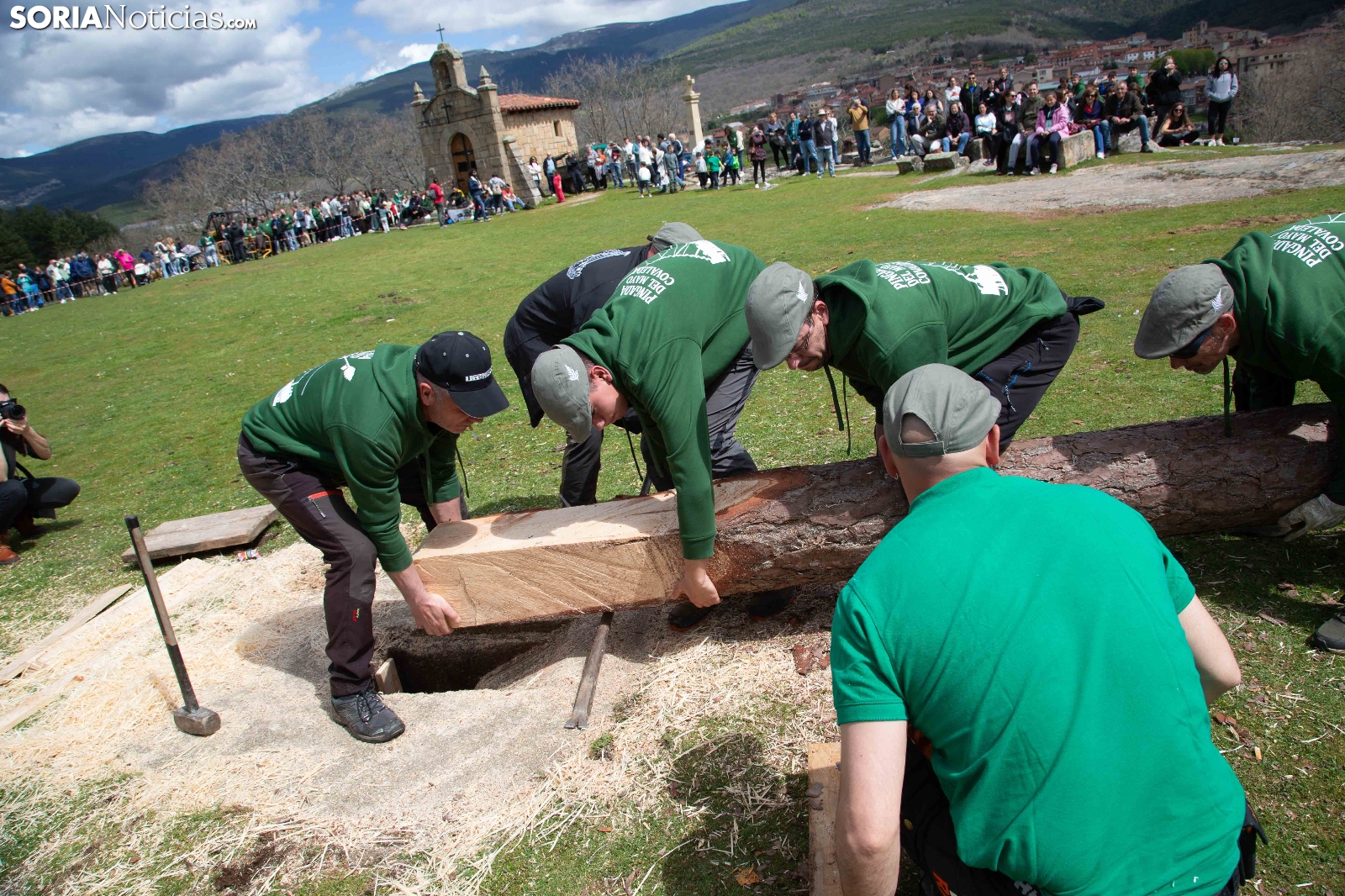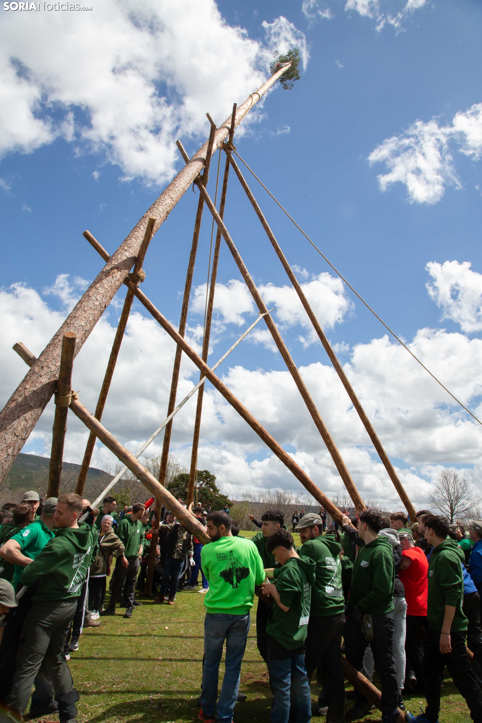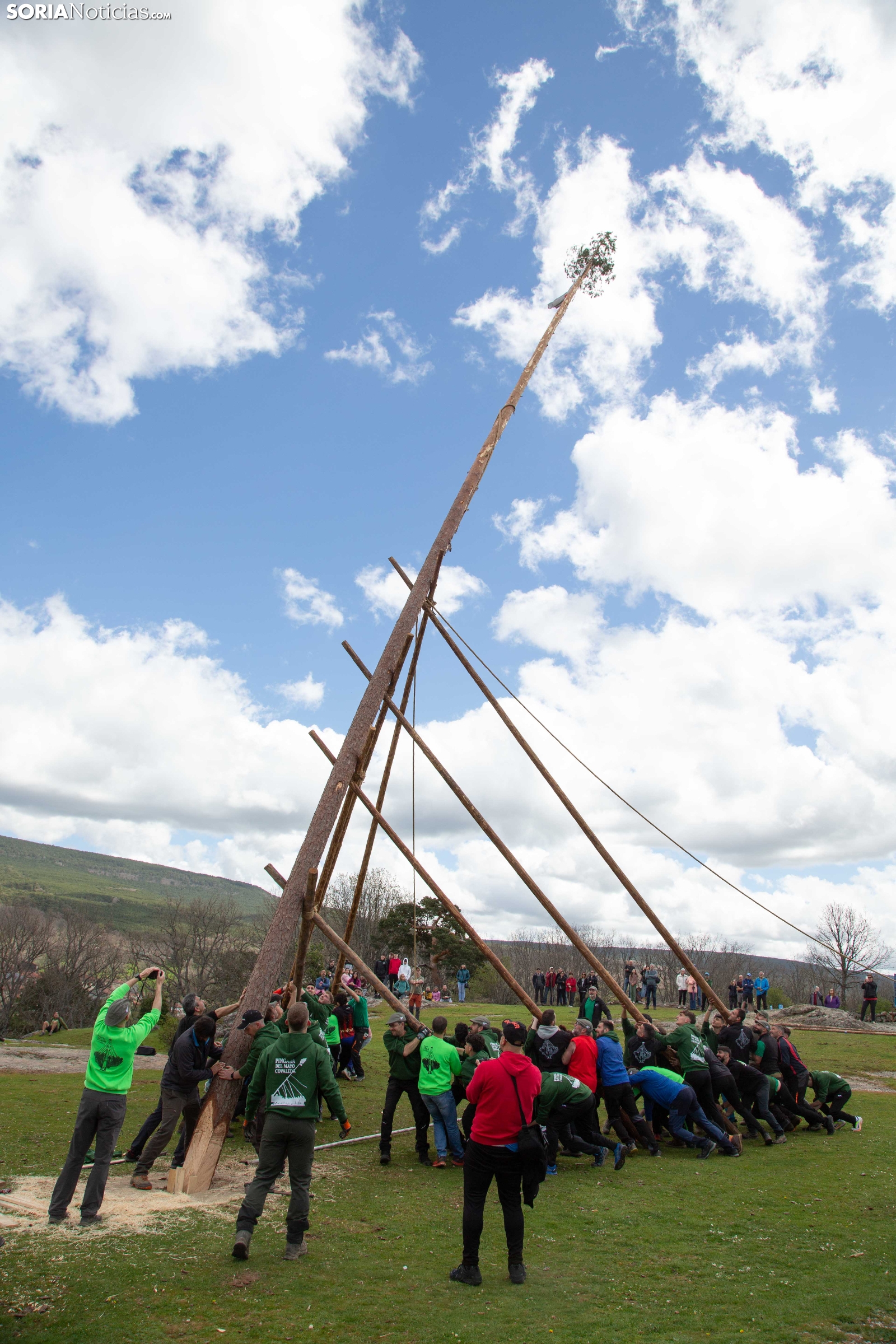 La tradición de la Pingada del Mayo ha vuelto a reunir a los vecinos de Covaleda en una jornada festiva llena de entusiasmo popular. El paraje 'El Cubo' ha sido escenario del momento más esperado cuando, al mediodía, decenas de mozos del pueblo han unido fuerzas para levantar el imponente pino que presidirá el municipio durante todo el mes de mayo. Entre gritos de ánimo y bajo la atenta mirada de los vecinos, los jóvenes han conseguido con éxito la verticalidad del árbol. Como es habitual en esta localidad pinariega, donde los bosques constituyen su esencia, el ejemplar elegido destaca por su gran porte, requiriendo un esfuerzo sincronizado y preciso de todos los participantes. Tras varios minutos de tensión y trabajo coordinado, el mayo ha quedado finalmente erguido, provocando el aplauso unánime de todos los presentes. La jornada, muy festiva como siempre el primer sábado de mayo, cuenta con programa amplio de actividades de diversión con música de charanga, tardeo en El Lomo y comida popular a base de migas pastoriles. Por la tarde, recorrido de charanga por los bares hasta entrada la noche. Tradición que une naturaleza y los antiguos ritos de fertilidad, viva gracias al entusiasmo de los jóvenes y la implicación de toda la comunidad covaledense. Una vez finalizado el mes, el mayo será vendido como leña, completando así un ciclo que año tras año renueva el compromiso del pueblo con sus raíces y tradiciones.