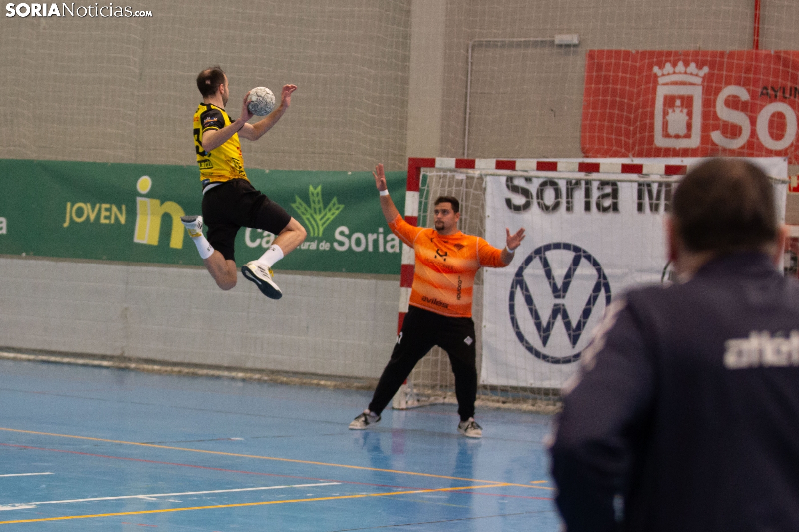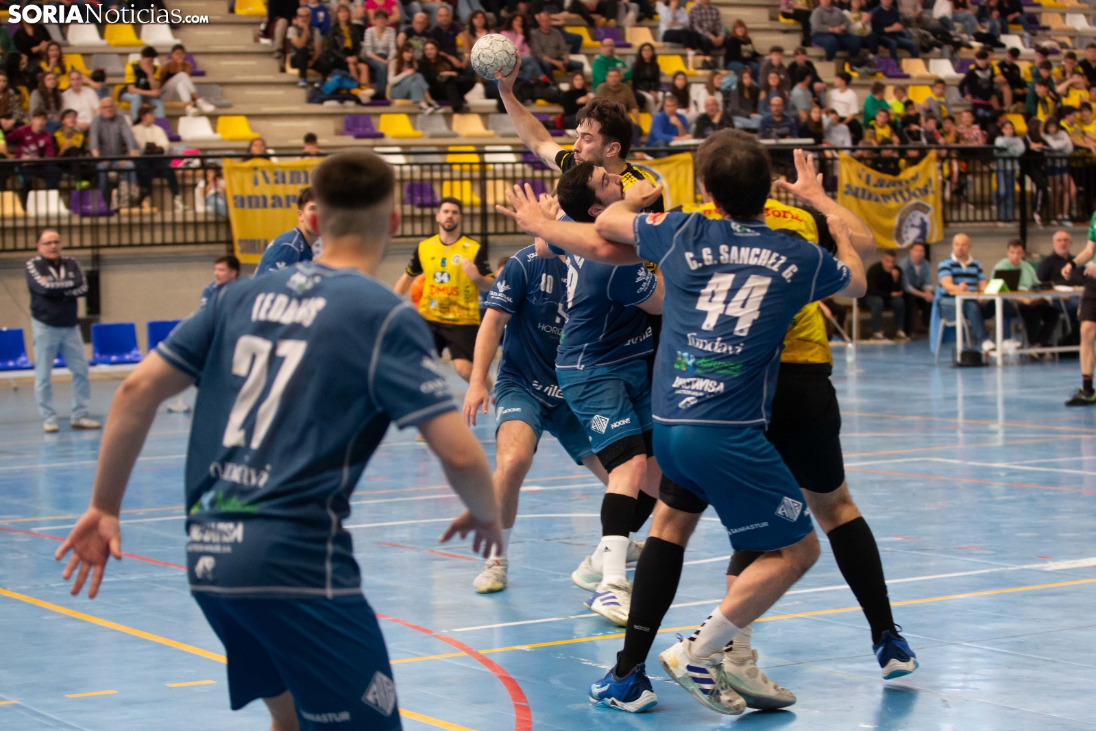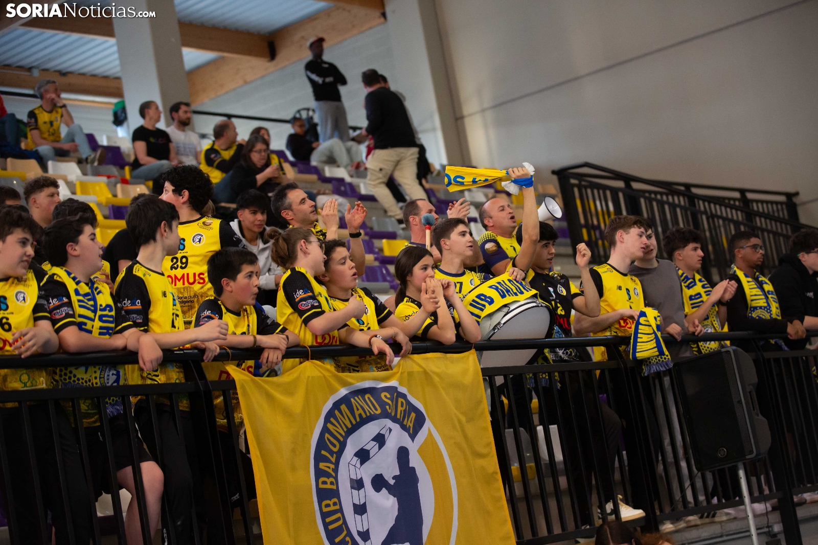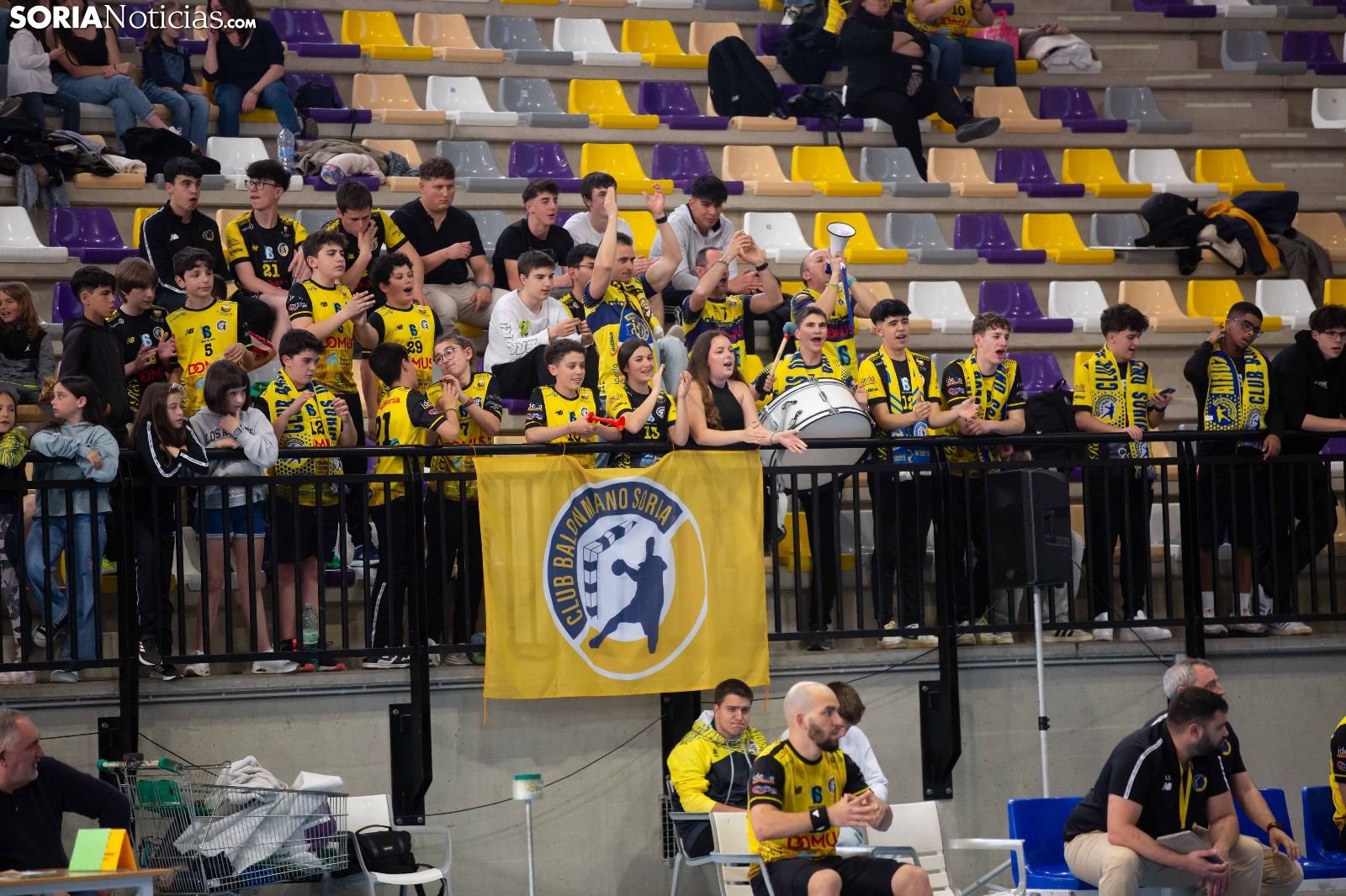 El polideportivo de San Andrés estallaba con la victoria hoy ante Horizonte Atlética Avilesina (37-28), del Balonmano Soria. Un triunfo que eleva a los de Oriol Castellarnau al liderazgo del Grupo B en Primera Nacional y que afianza una temporada de éxito y que lleva a aspirar al ascenso. Los amarillos y su afición, de enhorabuena, merecida, a la espera de los clasificatorios posteriores que mantendrán la atención del deporte soriano en esta disciplina, tras una temporada que ha marcado la diferencia. Dentro de dos semanas, afrontarán los play off de ascenso a División de Honor Plata.