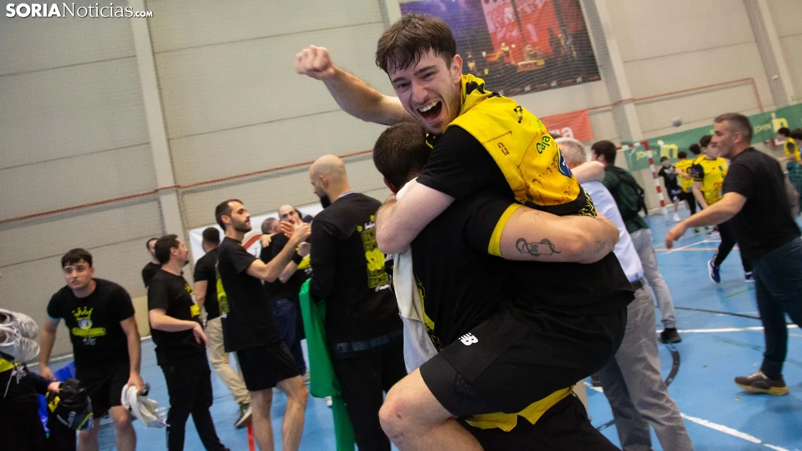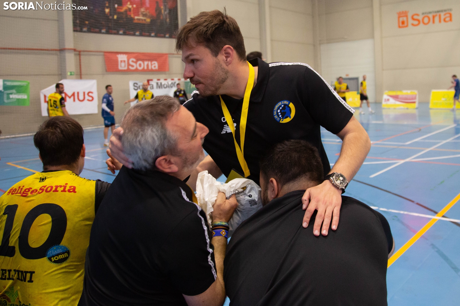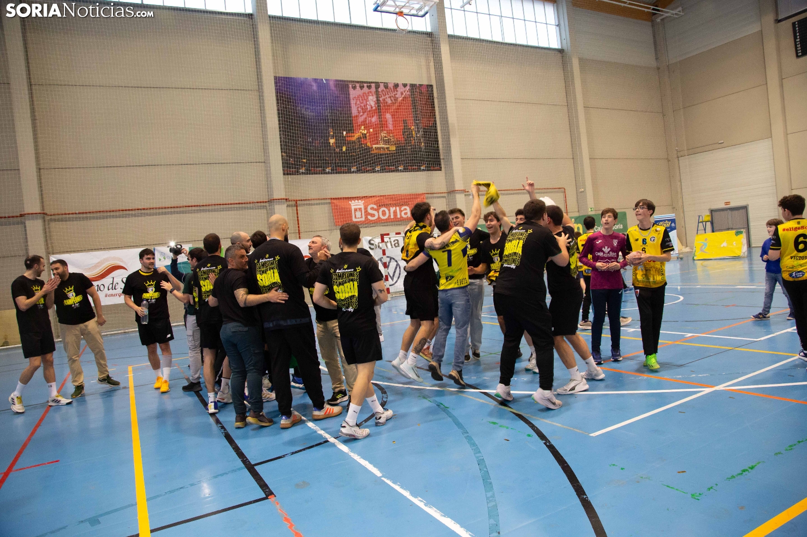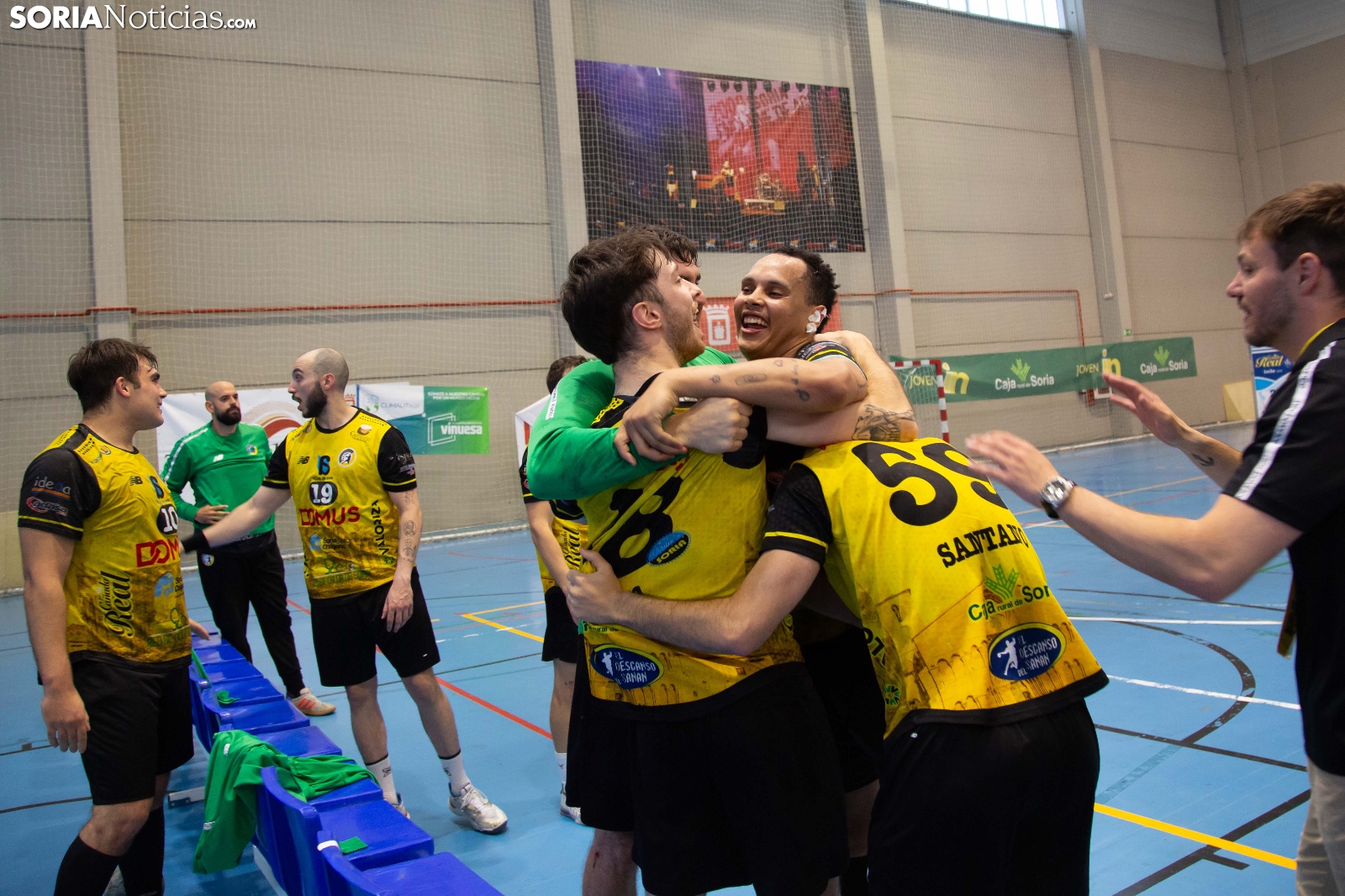 El polideportivo de San Andrés estallaba con la victoria hoy ante Horizonte Atlética Avilesina (37-28), del Balonmano Soria. Un triunfo que eleva a los de Oriol Castellarnau al liderazgo del Grupo B en Primera Nacional y que afianza una temporada de éxito y que lleva a aspirar al ascenso. Los amarillos y su afición, de enhorabuena, merecida, a la espera de los clasificatorios posteriores que mantendrán la atención del deporte soriano en esta disciplina, tras una temporada que ha marcado la diferencia. Dentro de dos semanas, afrontarán los play off de ascenso a División de Honor Plata.