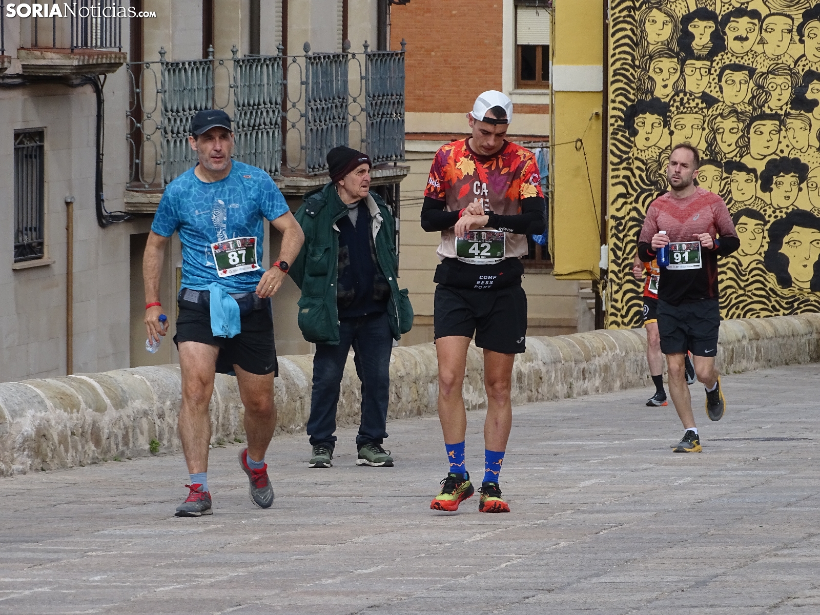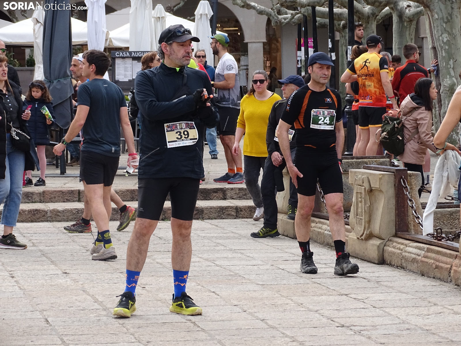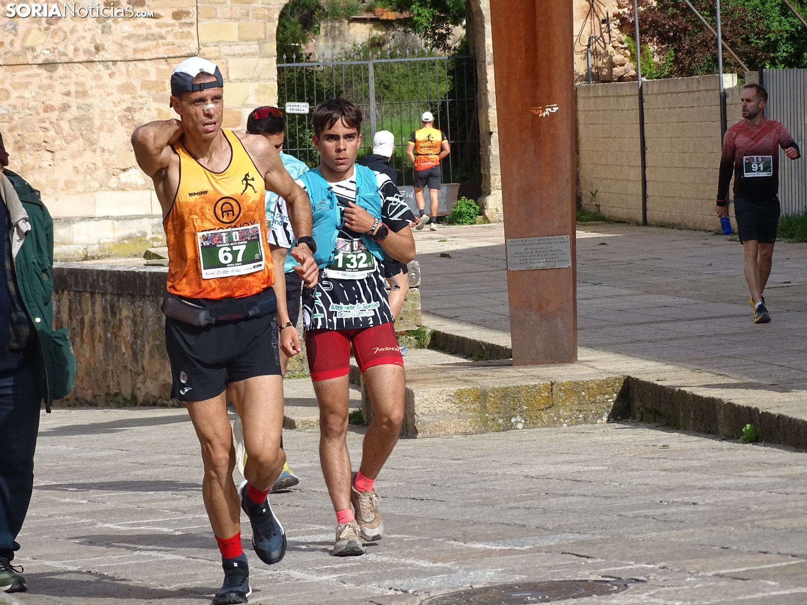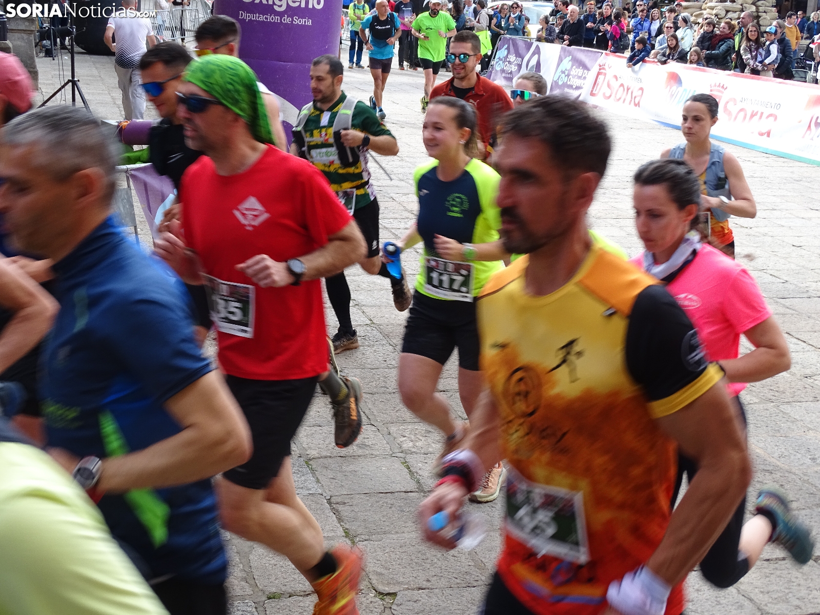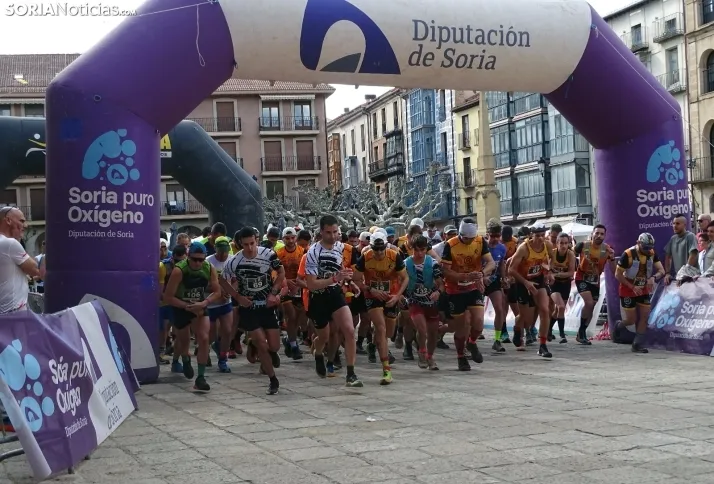 La capital soriana acogía este sábado una edición más, la número 11 de la Travesía Alto Duero, dentro del circuito de carreras de montaña Soria Puro Oxígeno que ampara la Diputación. Organizada cada año por Banzaii Antártica Agrupación Soriana de Montaña, esta ocasión congregaba a dos centenares de participantes, en su mayoría corredores, ya que también estaba contemplada una ruta andando, con trayectos de 12 y de siete kilómetros respectivamente. El recorrido partía de la plaza Mayor para encarar el parque del Castillo, seguir hasta el paraje de San Cristóbal y continuar por el Cerro de los Moros. Gran aceptación para esta cita deportiva que, ya consolidada, ha transcurrido hoy con temperatura agradable y buen ambiente, como puede apreciarse en estas imágenes del comienzo de la prueba en la que vencían Begoña Peña y Jordán Lázaro.