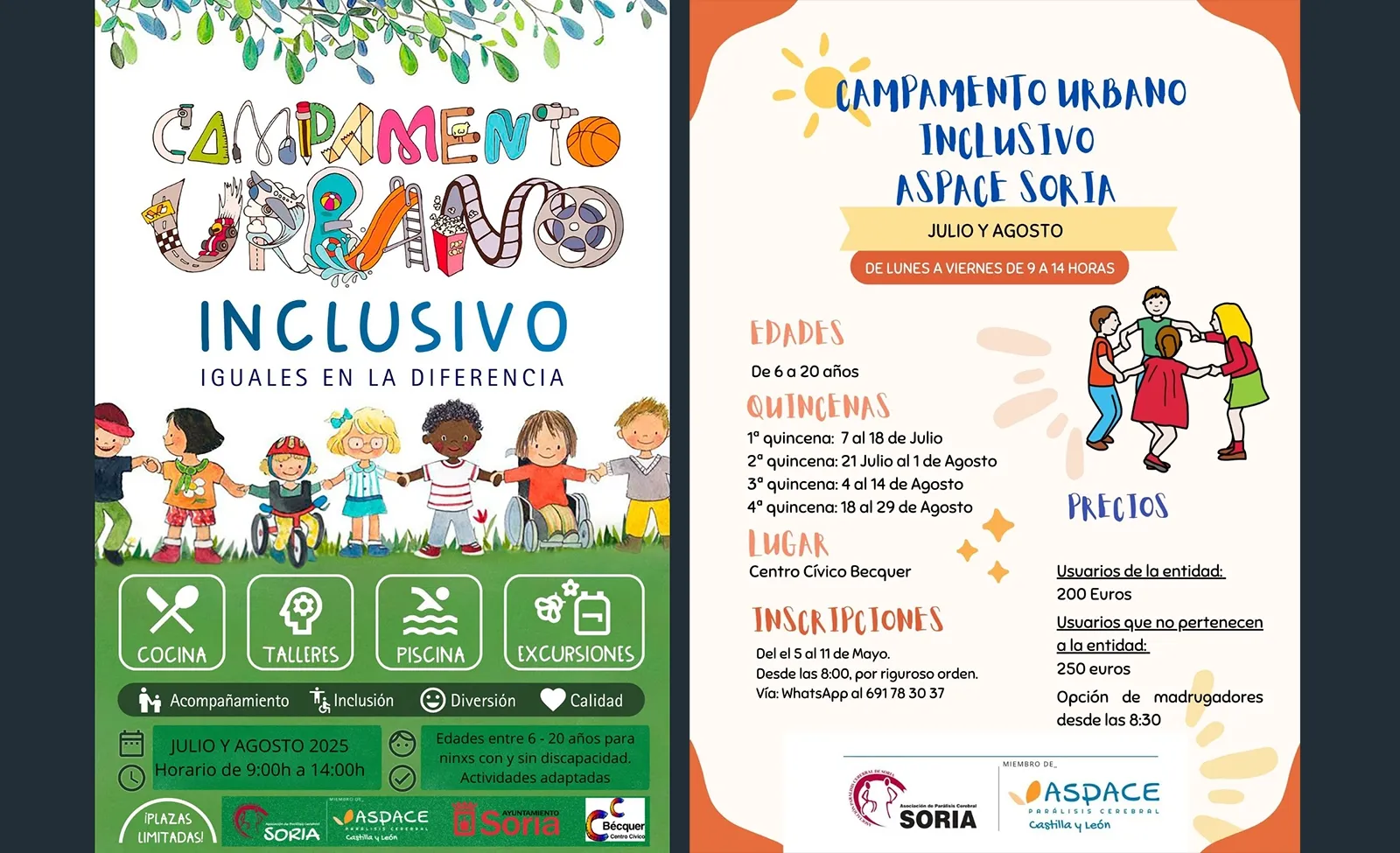 La Asociación de Parálisis Cerebral y patologías afines de Soria capital y provincia, ASPACE prepara una nueva edición de su Campamento Urbano Inclusivo, una iniciativa que alcanza su quinto aniversario y que se consolida como referente en la oferta de ocio estival para menores con diversidad funcional. El programa, diseñado para edades entre 6 y 20 años, tiene como principal objetivo crear un espacio donde niños y jóvenes con diferentes capacidades puedan compartir experiencias y actividades adaptadas.