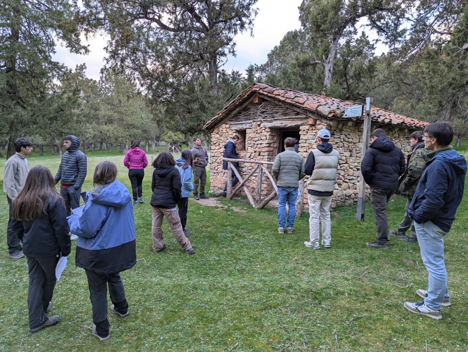 La jornada de campo abarcó todos los aspectos de funcionamiento de un sabinar en diferentes espacios de la provincia de Soria, desde la repoblación hasta la visita al bosque maduro de sabina albar (Juniperus spp.). La actividad comenzó en la pedanía de Alcozar (Langa de Duero), donde la asociación forestal ha promovido una repoblación. En este espacio se mostró a los alumnos de la UPV las tareas realizadas en cuanto a plantación en terrenos muy degradados y susceptibles de sufrir erosión. El grupo se trasladó posteriormente hasta el sabinar ubicado en el paraje Campoespacio de Abejar para profundizar en los tratamientos selvícolas de acondicionamiento de la masa forestal y su preparación para un uso más ganadero. Finalmente, se visitó el Sabinar de Calatañazor. Esta reserva natural acoge algunos de los ejemplares más longevos y elevados de esta especie de la península ibérica. La jornada de campo estuvo guiada por técnicos de ASFOSO y en ella también participó el catedrático de la UPV y miembro investigador de SocialForest Antonio del Campo.