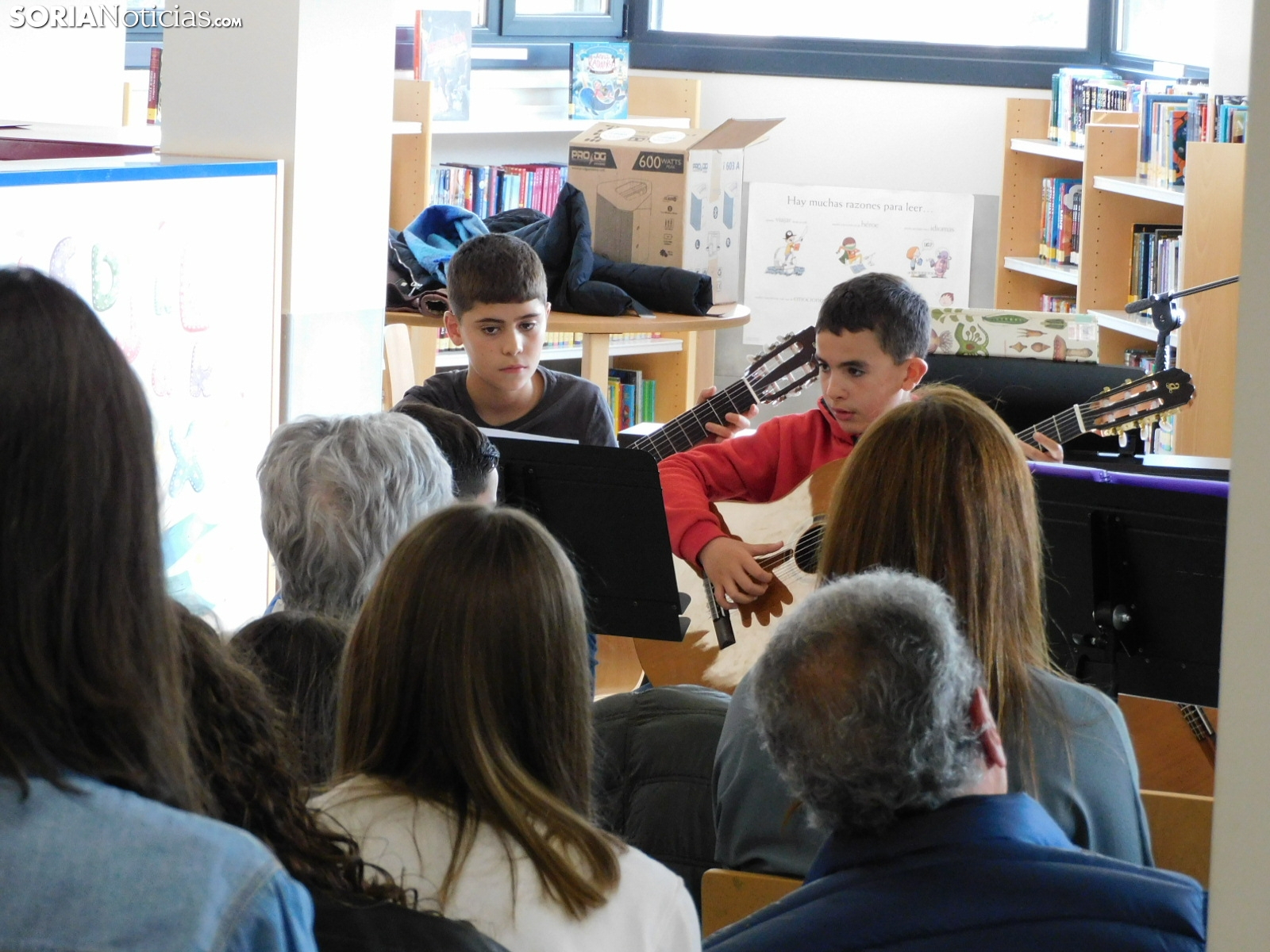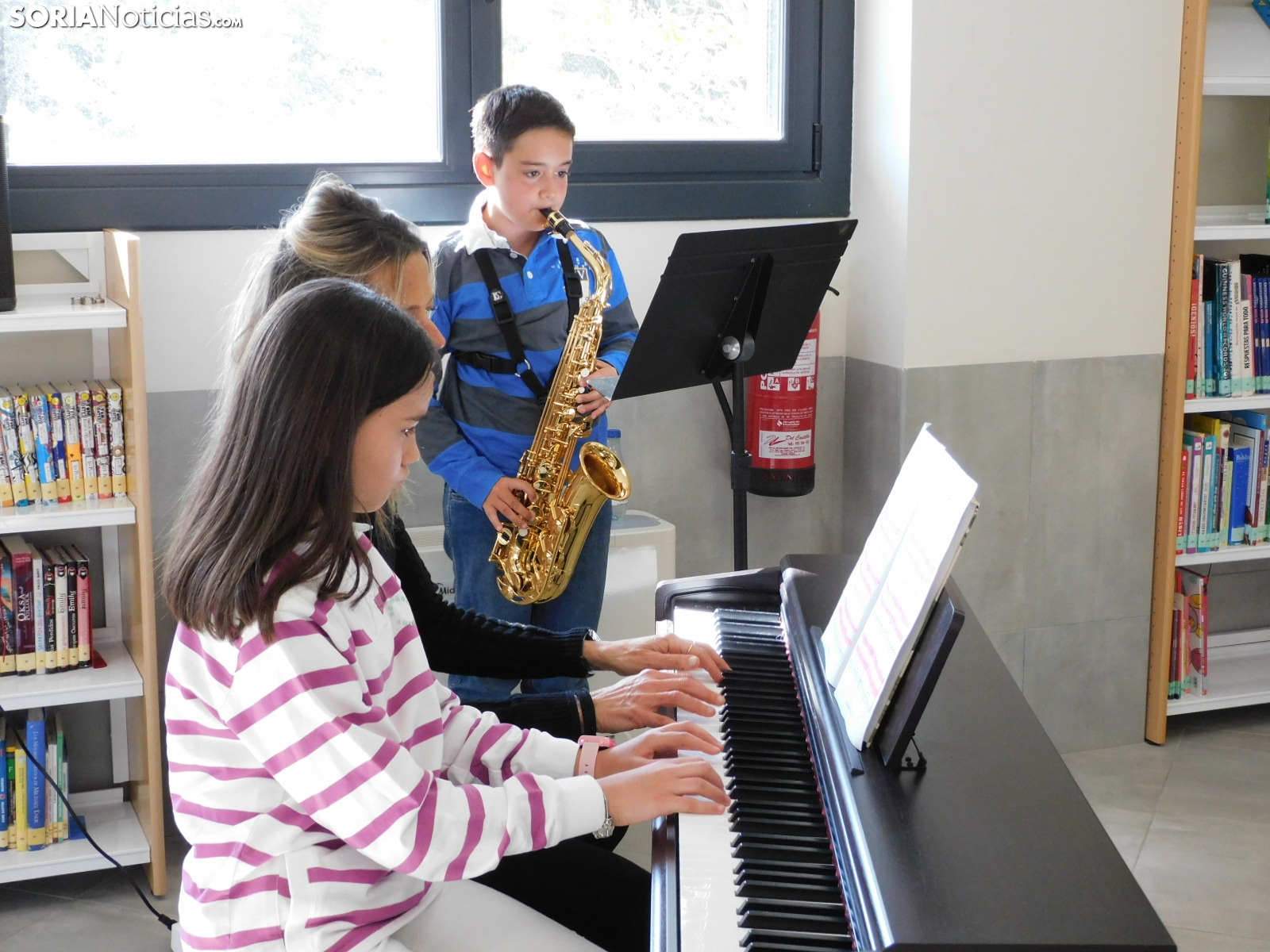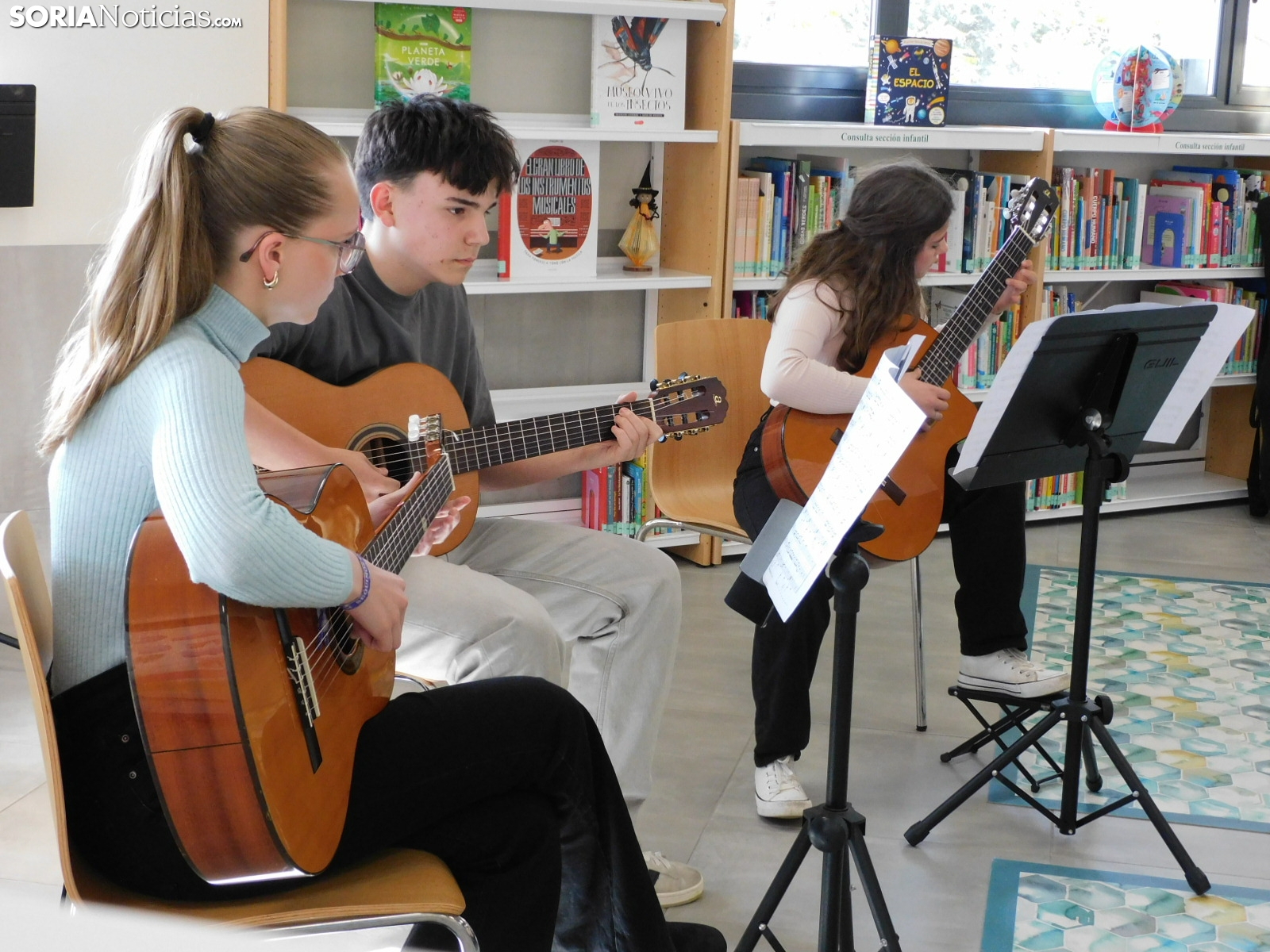 Una canción típica de Cataluña, Irlanda o Italia. El II Maratón Musical de Golmayo ha comenzado con tres fantásticas interpretaciones de guitarra en la Biblioteca Municipal. A continuación, un dúo formado por dos primos ha ofrecido una versión al estilo Disney de La Bella y la Bestia, interpretada con saxofón y piano. También ha habido un momento para un tango a tres guitarras.