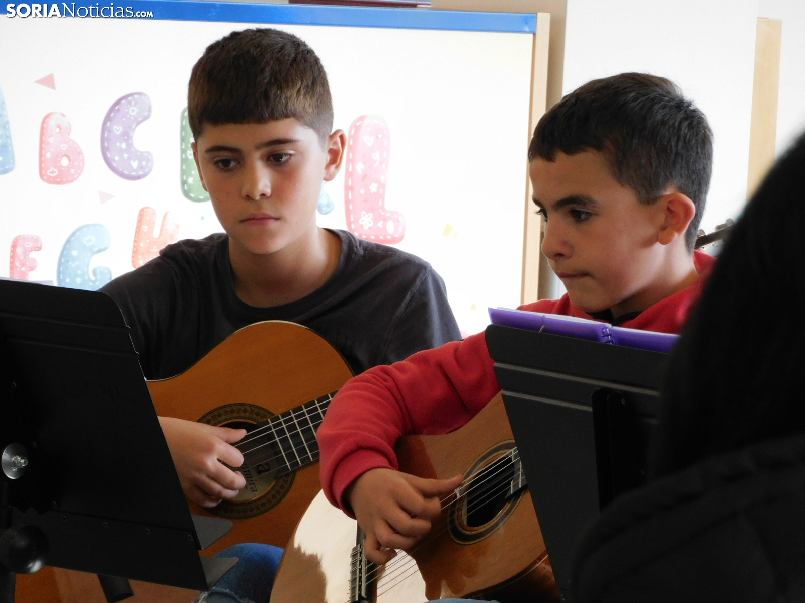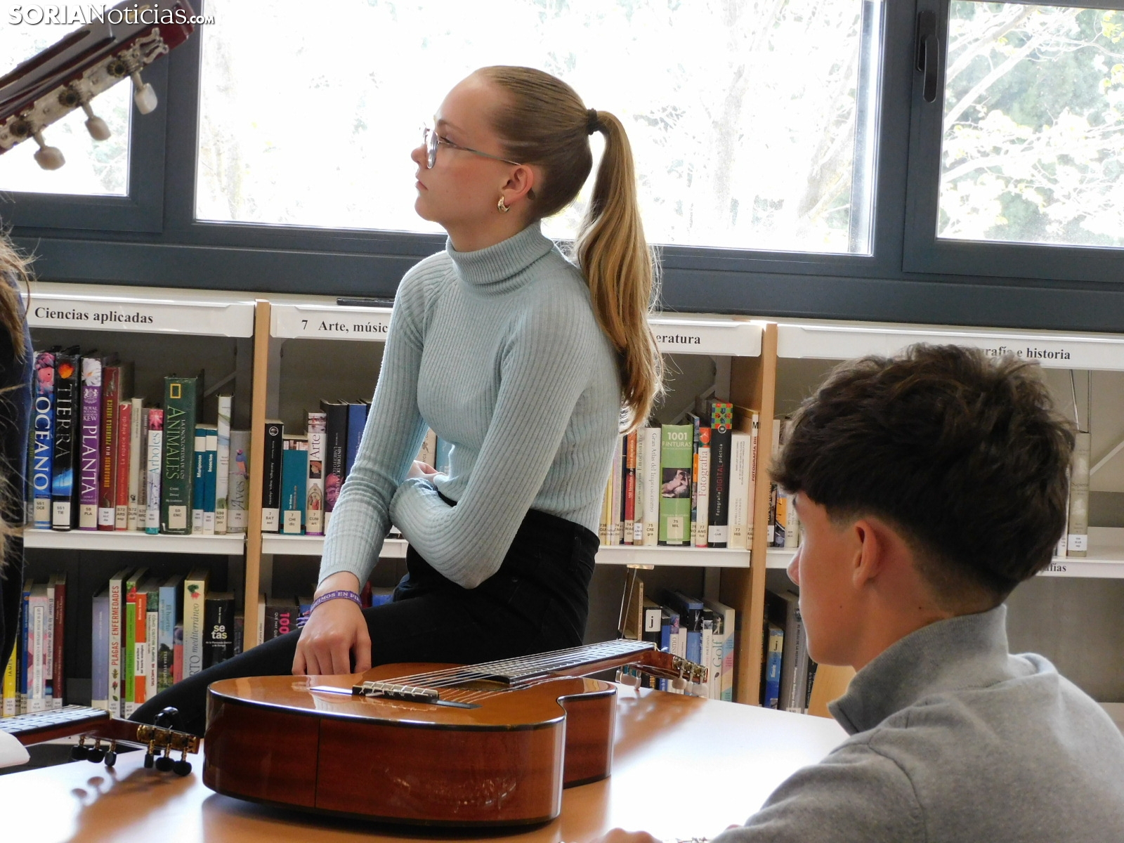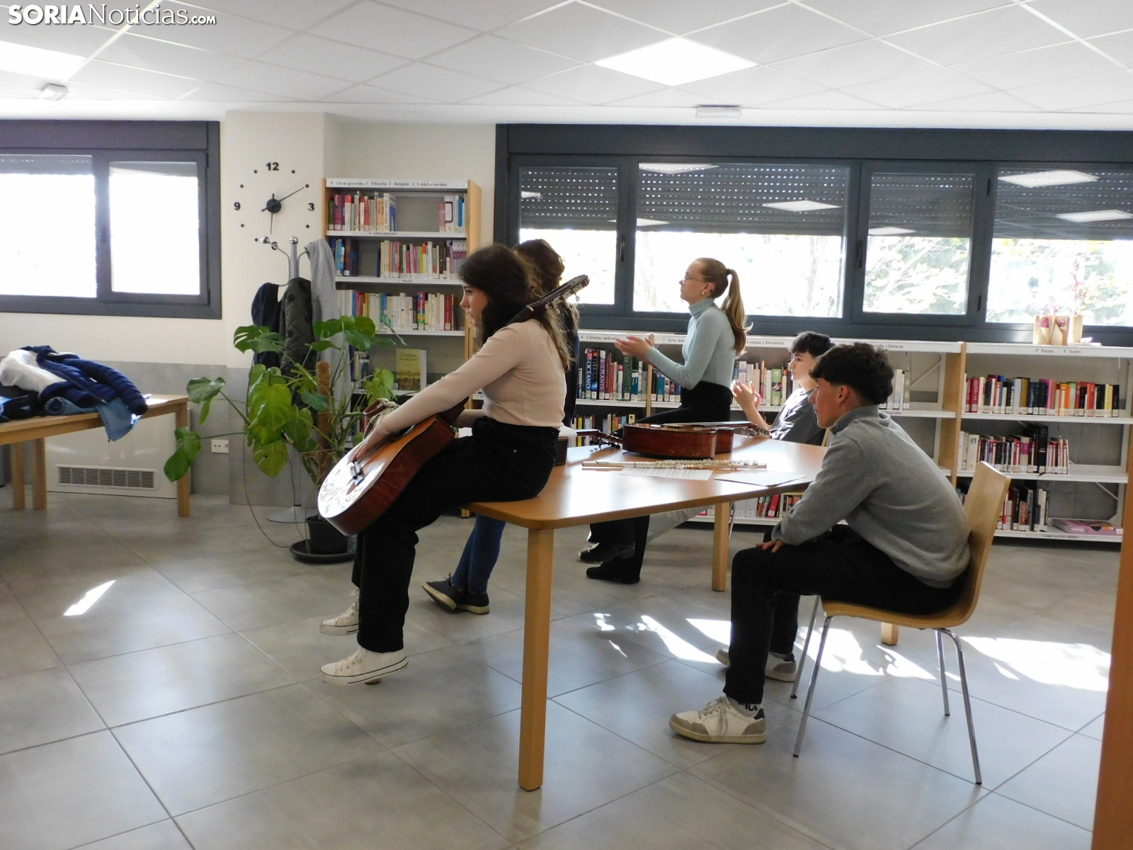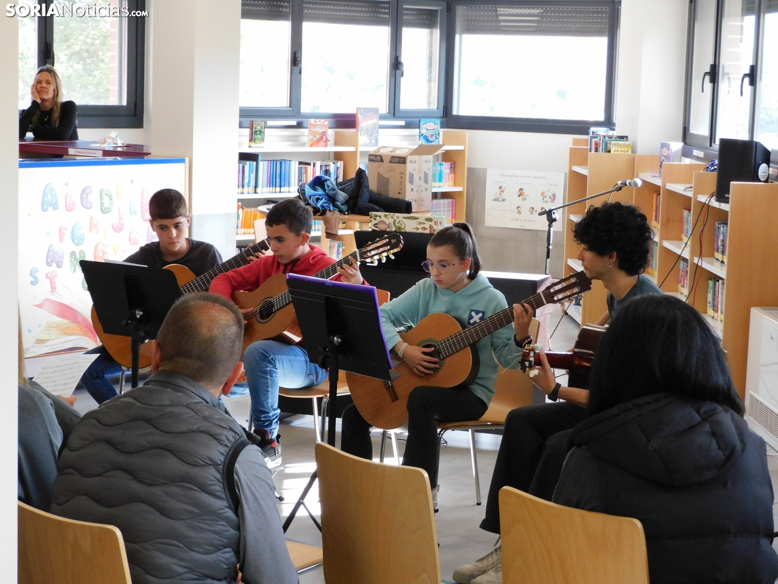 Una canción típica de Cataluña, Irlanda o Italia. El II Maratón Musical de Golmayo ha comenzado con tres fantásticas interpretaciones de guitarra en la Biblioteca Municipal. A continuación, un dúo formado por dos primos ha ofrecido una versión al estilo Disney de La Bella y la Bestia, interpretada con saxofón y piano. También ha habido un momento para un tango a tres guitarras.