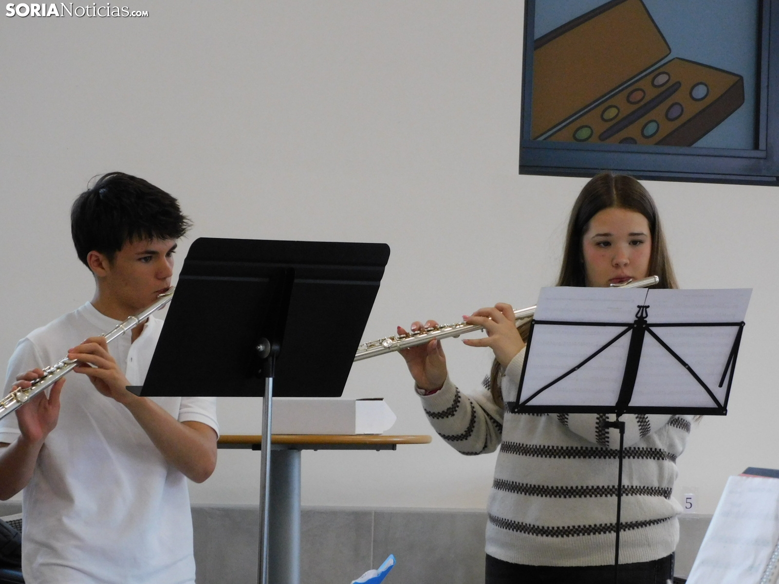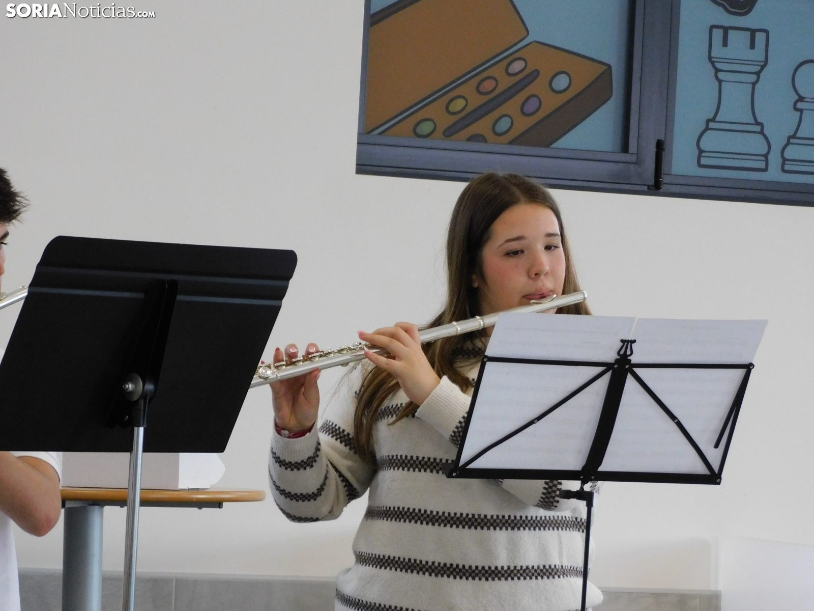 Posteriormente, se ha dado paso a una actuación de canto y piano con la canción «Alcoholic Friend». Uno de los temas más conocidos ha sido «Hijo de la luna», interpretado con flauta travesera y piano, que ha sacado una sonrisa a los allí presentes. Así, hasta completar un total de 30 jóvenes de la Escuela de Música de Golmayo.