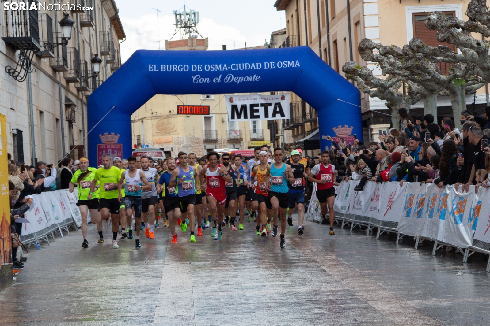 Aunque amenazados por la lluvia, el Medio Maratón de El Burgo de Osma se ha podido celebrar finalmente este sábado 10 de mayo. Su 24.ª edición ha rozado los 600 atletas que han estado dispuestos a quemar zapatilla. Con los dorsales del 8k Manzana de Soria agotados desde hace dos meses y la prueba reina a punto de colgar el cartel de completo, la cita se ha consolidado como un referente en el calendario nacional. La carrera ha recorrido los rincones más emblemáticos de la villa burgense, desde la Catedral hasta el Castillo de Osma, en una jornada donde deporte y patrimonio han estado unidos. Atletas como Estela Navascués, Yassine Elaaoud o Cristina Giurcanu han puesto el broche competitivo a un evento inigualable.