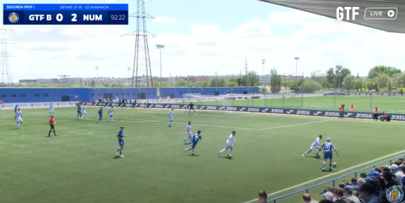 ¡ERROR DEFENSIVO DEL GETAFE B QUE DEJA SOLO A ALAIN RIBEIRO! El balón se le ha ido al mediapunta cuando estaba solo ante la portería.