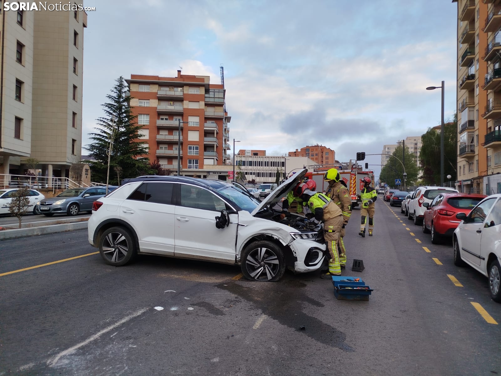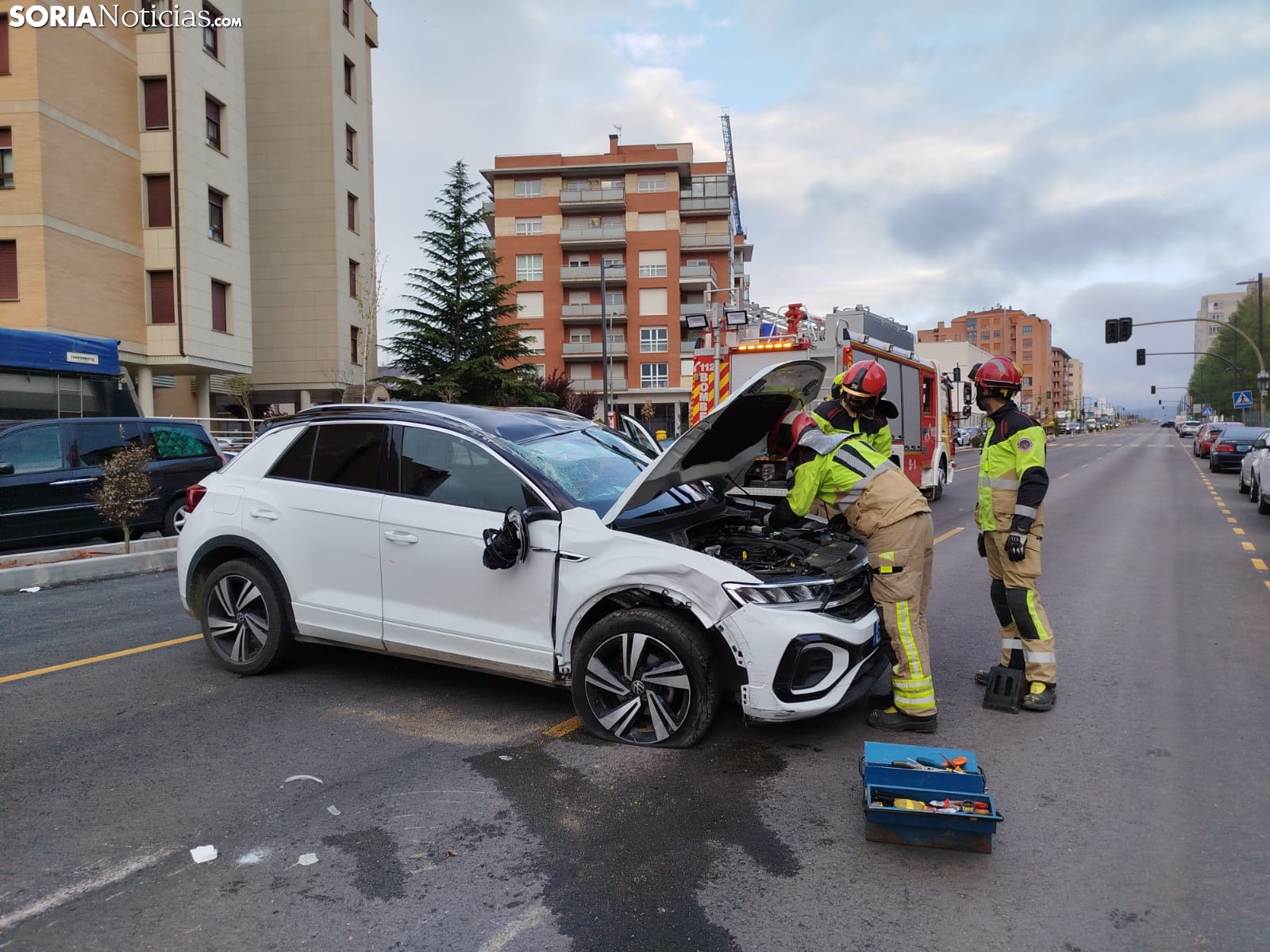 Sobre las 07:10 horas de este lunes, 12 de mayo, se ha producido un aparatoso accidente en la avenida de Valladolid, en Soria. Un vehículo ha volcado en el carril con sentido salida, afectando a otros dos coches que se encontraban estacionados en las inmediaciones de la Estación de Autobuses.