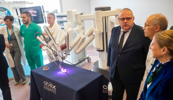 Esta mañana se ha presentado en el hospital Santa Bárbara de Soria el robot Da Vinci, la última tecnología en cuanto a cirugía mínimamente invasiva. El sistema de cirugía robótica asistida, junto con su instalación, puesta en funcionamiento y la formación del personal ha supuesto la inversión de más de 1,5 millones de euros y, tal y como ha confirmado el consejero de Sanidad, el objetivo es comenzar a usarlo en intervenciones reales "durante la cuarta semana de junio".