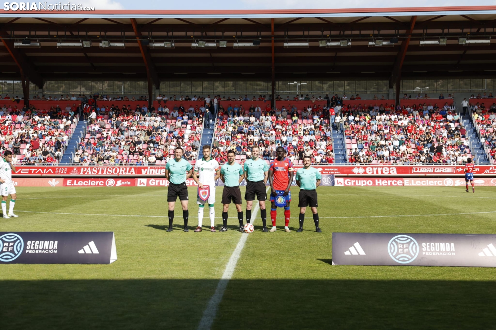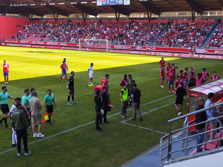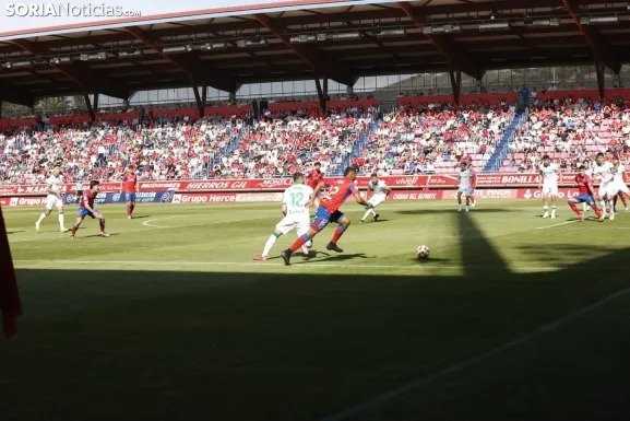 Falta a favor del Numancia en el centro del campo. La grada anima a los suyos en estos minutos.