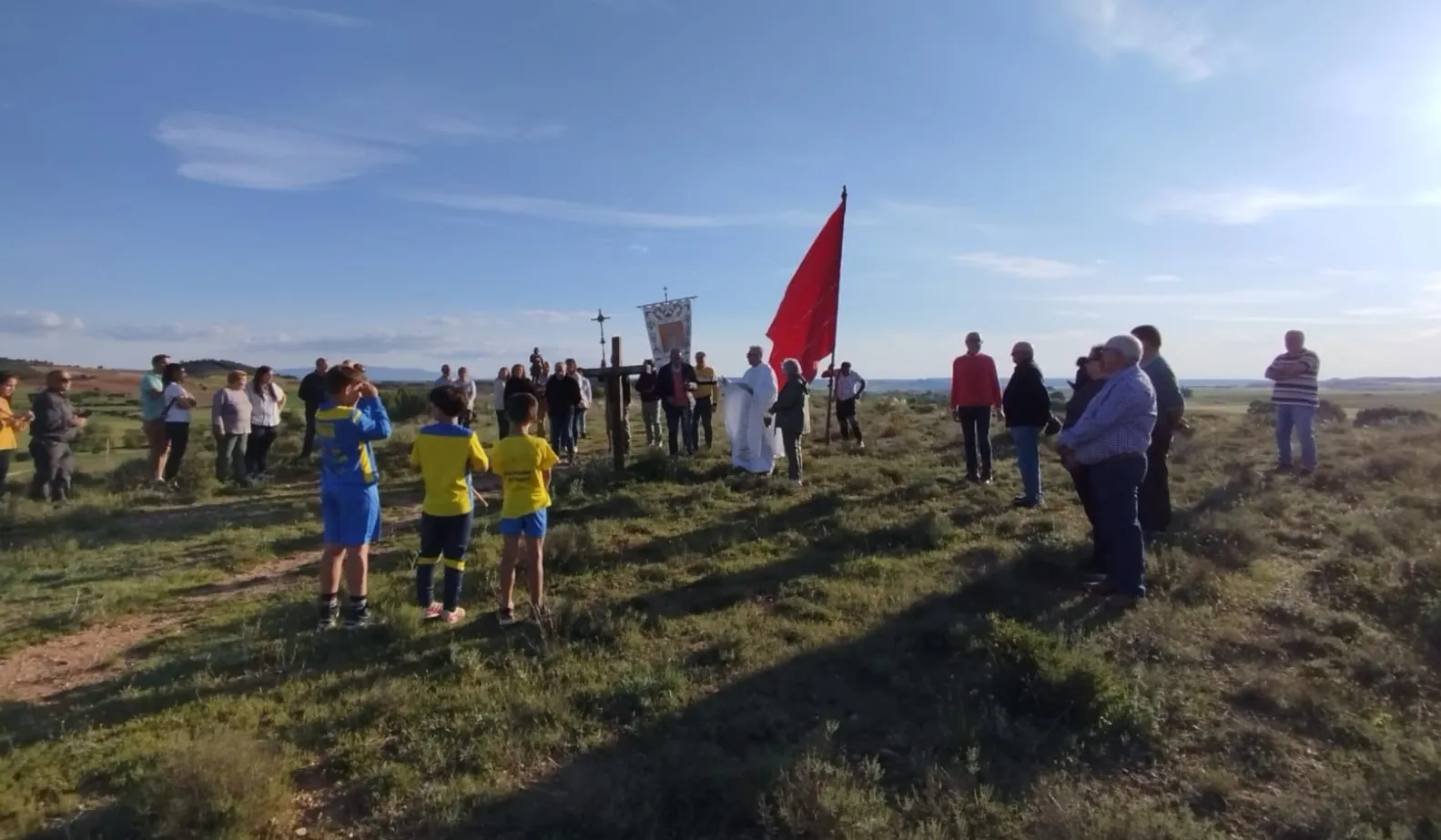 La jornada en este rincón de Soria combina la efeméride del santo con la bendición de los campos, un rito que antaño se celebraba el tres de mayo. Tras una ceremonia religiosa, una solemne procesión se dirige al paraje de La Cruz de la Veleta, donde el párroco bendice los cuatro puntos cardinales. Leopoldo Torre rescata la costumbre de colocar "cruces de cera de cuarterón" en una cruz de madera, que "al estar bendecidas se les consideraba como un amuleto de protección". El lugareño Vidal Hernández recordaba cómo "los pastores acudían prestos a recoger las cruces de cera que luego mostraban y guardaban como trofeos o reliquia", un detalle etnográfico que subraya la profunda fe popular.
