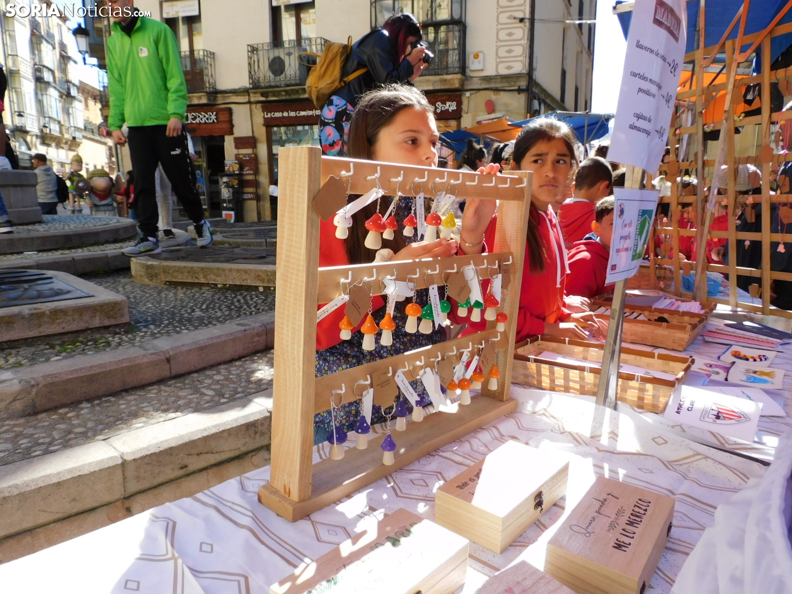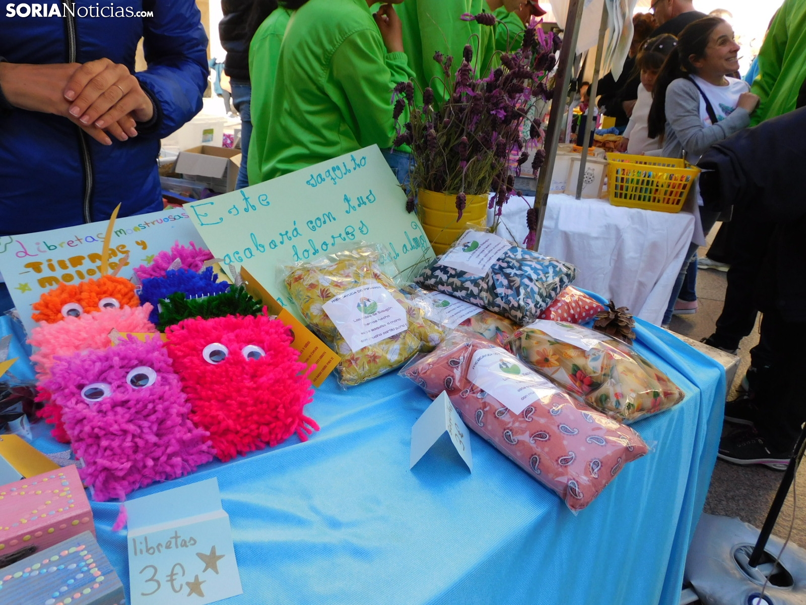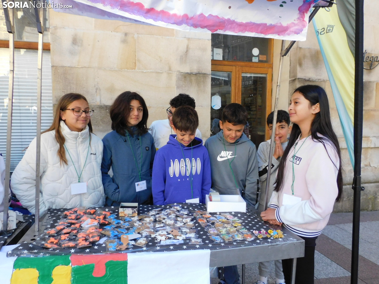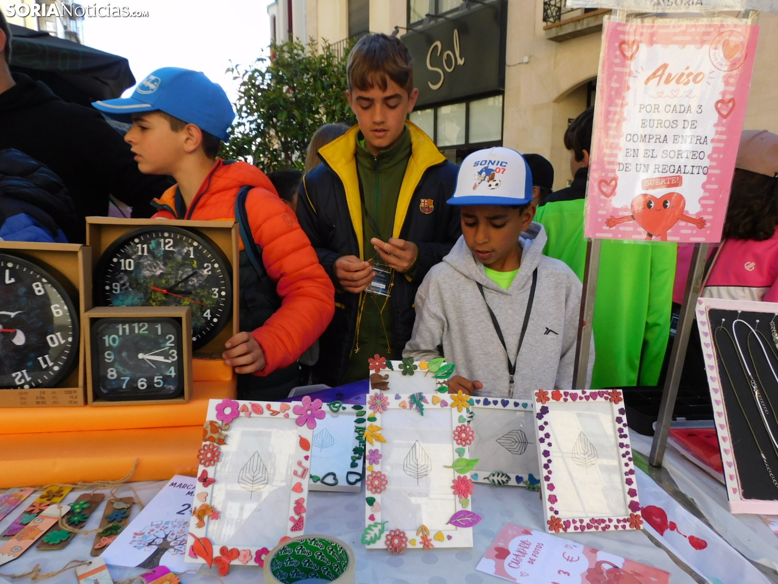 Llaveros, plantas, neceseres, camisetas… Una amplia variedad de productos elaborados a mano se han puesto a la venta esta mañana en la plaza del Rosel y San Blas. Se trata del mercadillo anual que organizan ocho centros educativos de Soria capital y provincia, con la participación de 250 alumnos de quinto y sexto de Primaria.